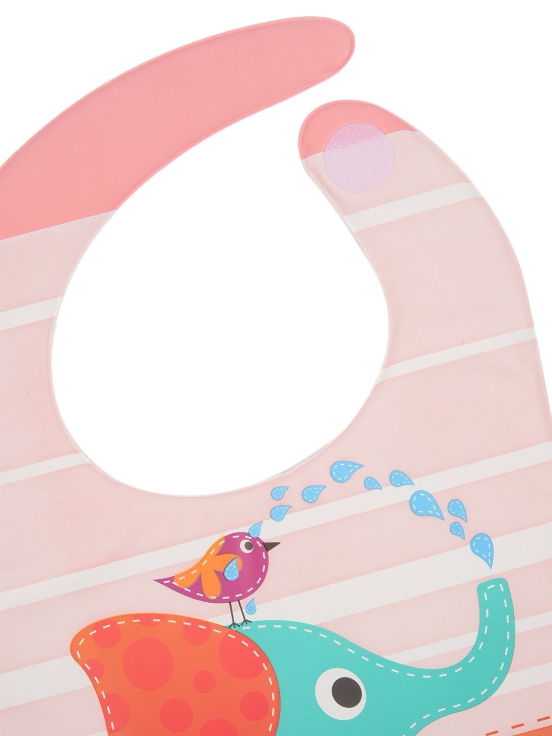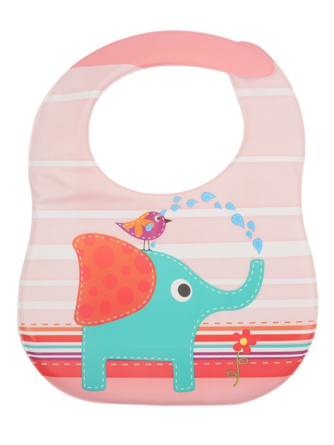 Colorful Elephant Pink Striped Waterproof Bib with Crumb Catcher For Girls