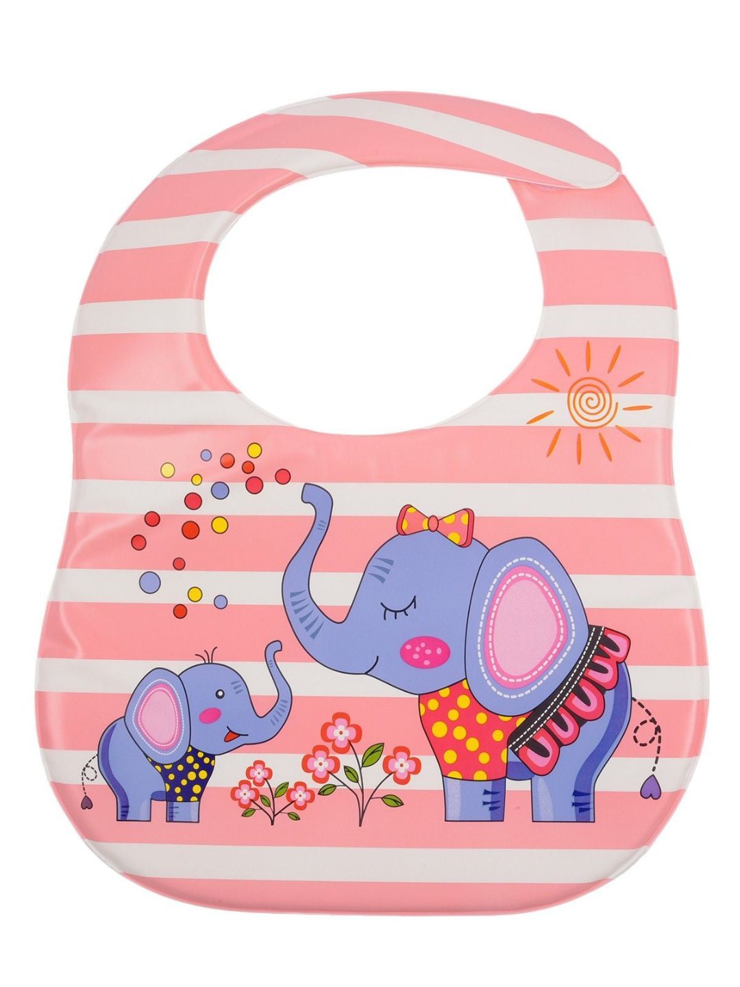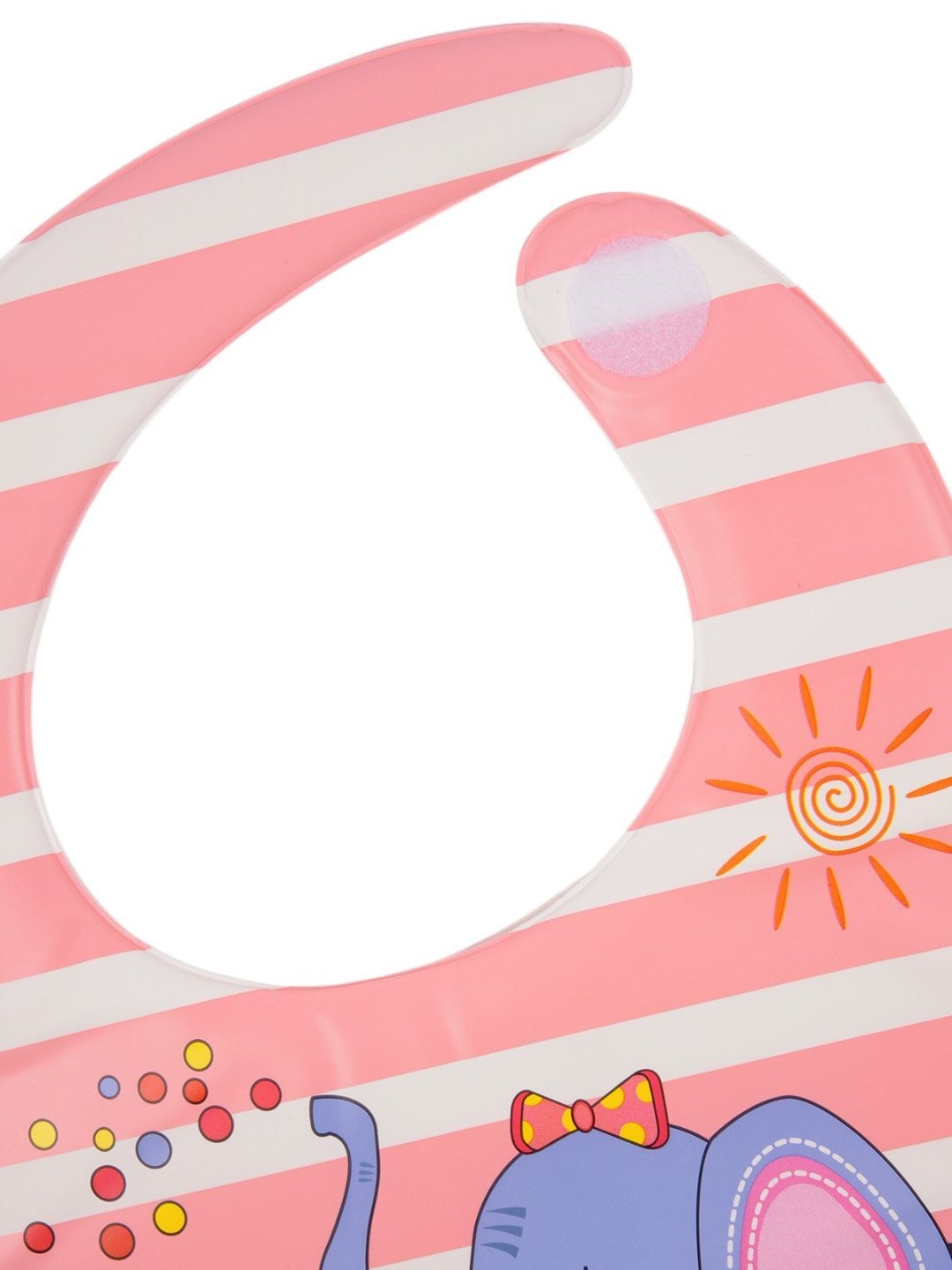 Elephant Family Pink Striped Waterproof Bib with Crumb Catcher For Girls
