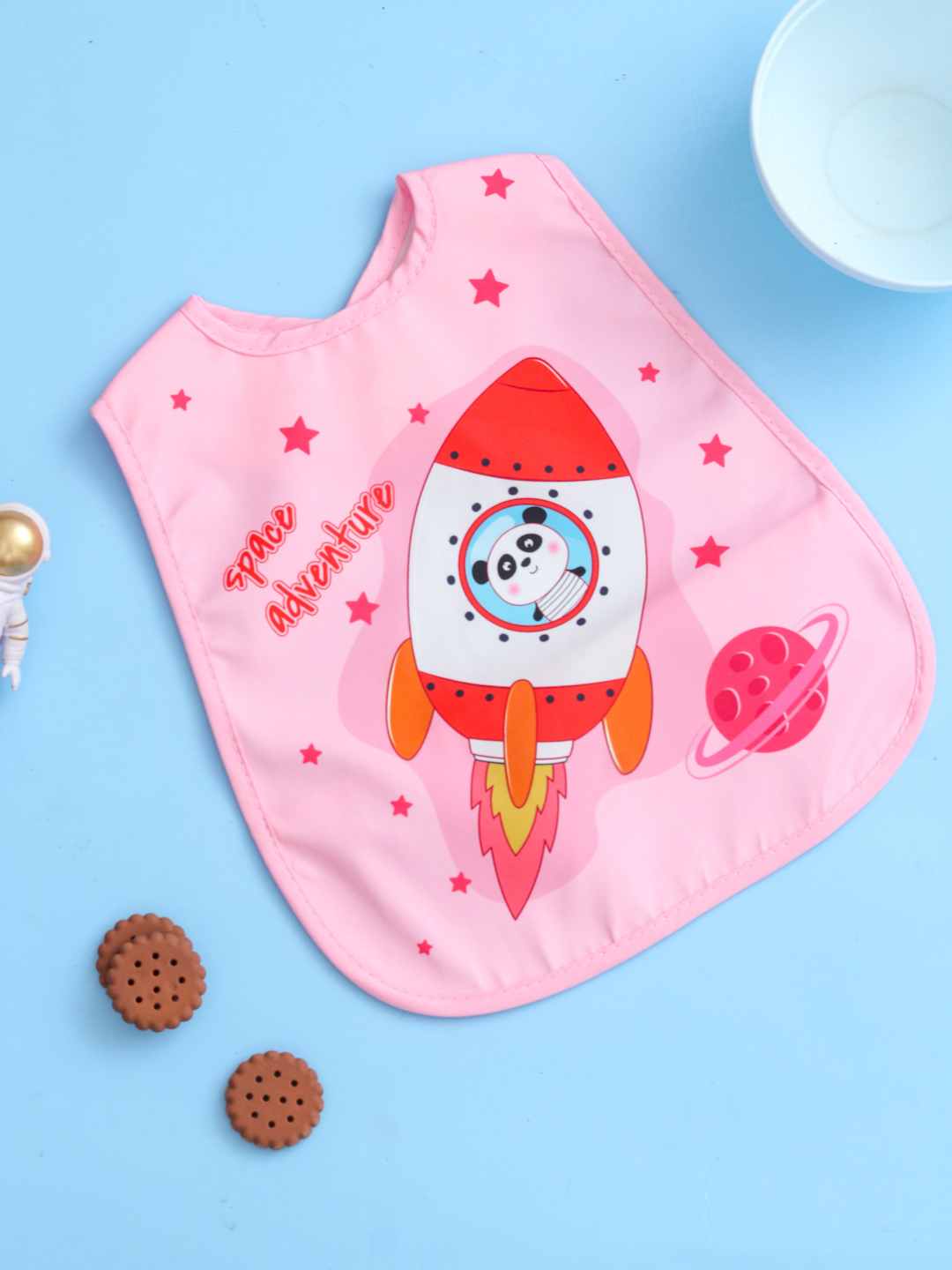 Baby Feeding Bib – Pink Space Panda in Rocket Print
