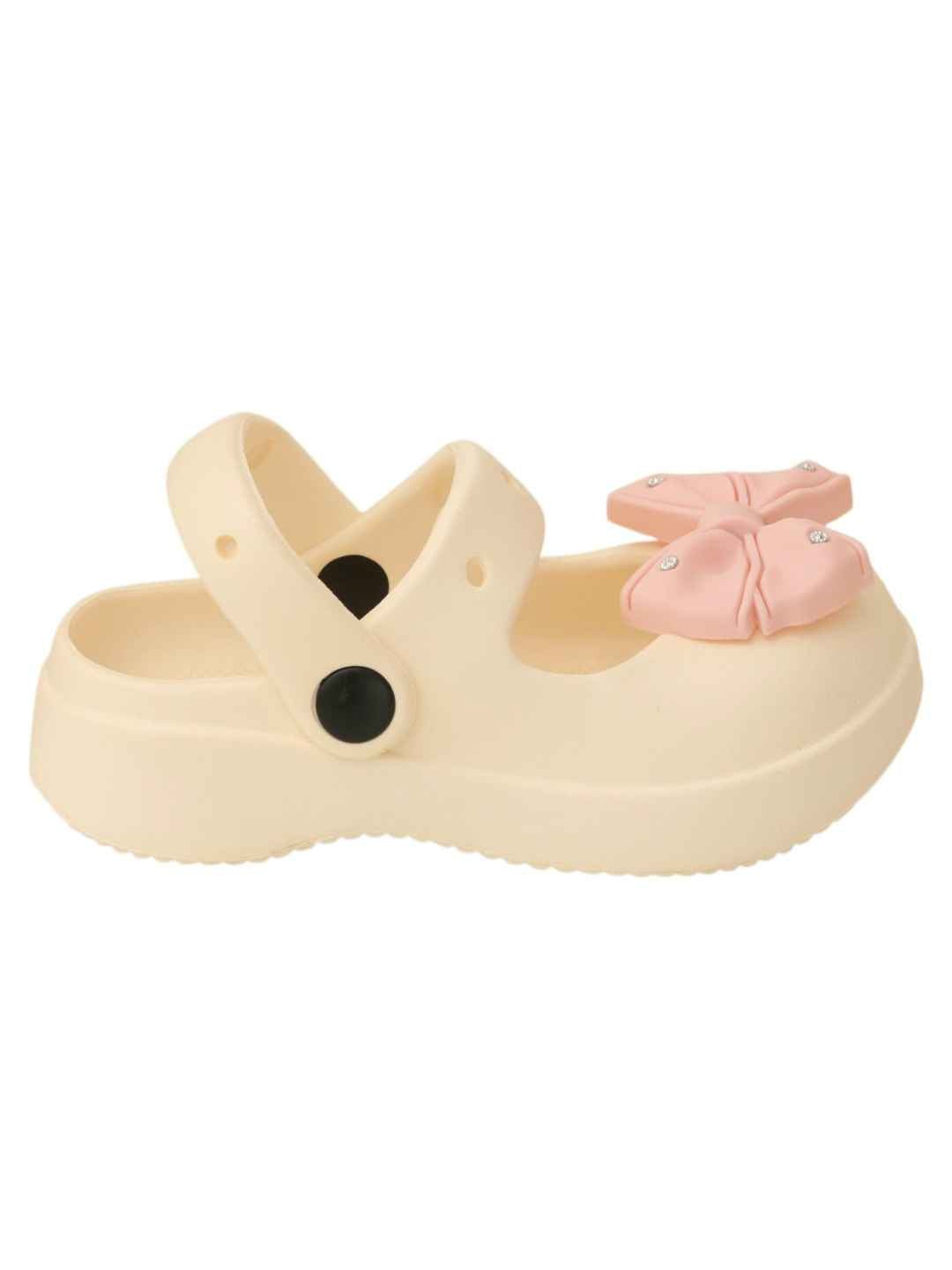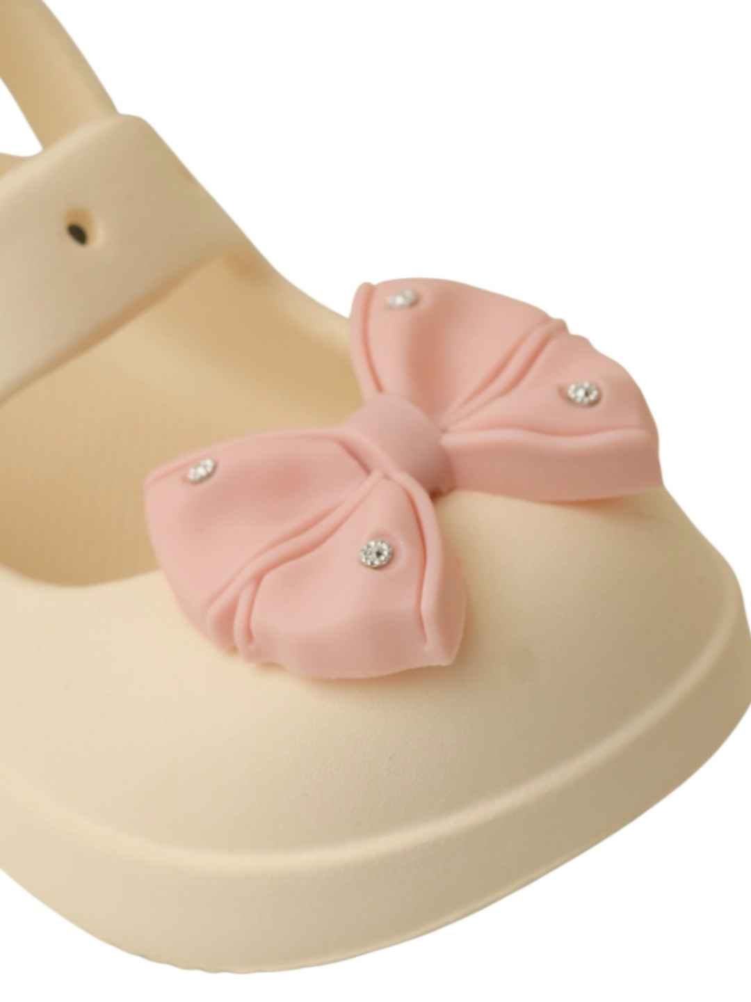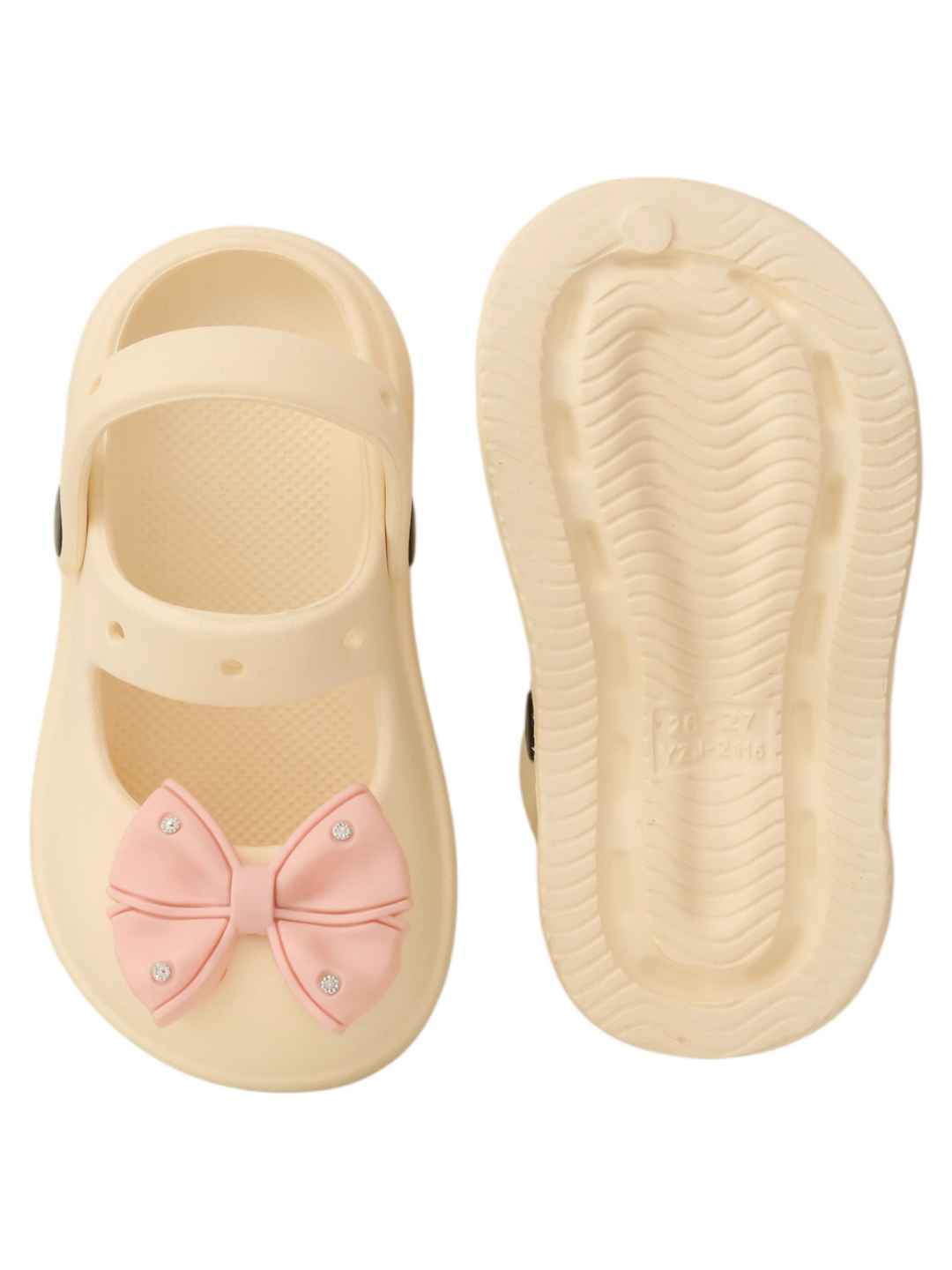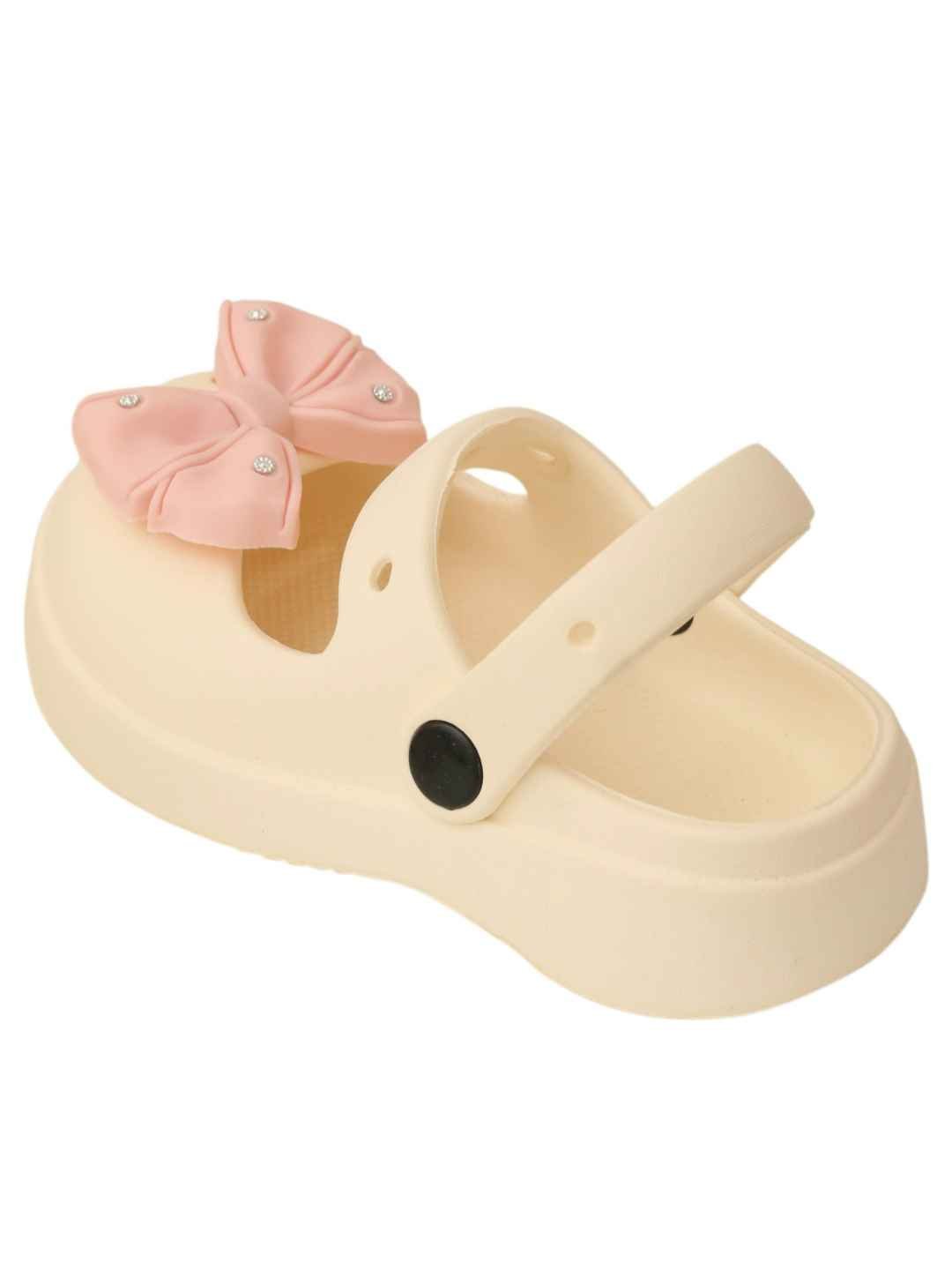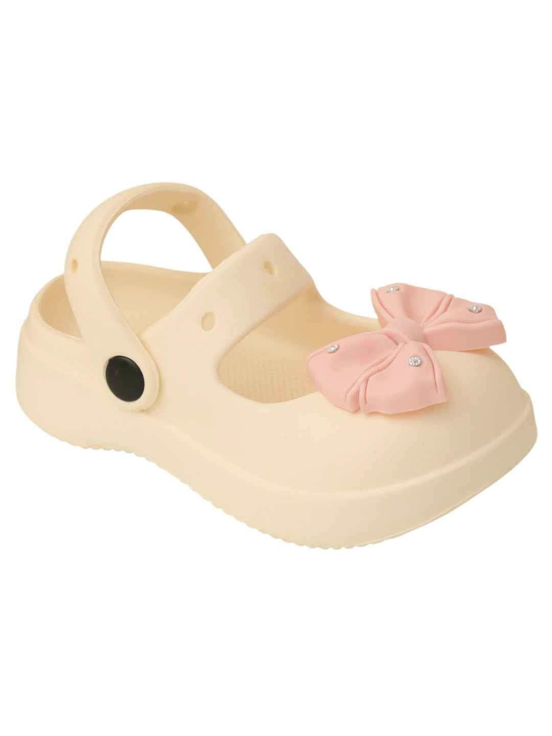Delighted Pink Bow Charm Clogs For Girls - Beige