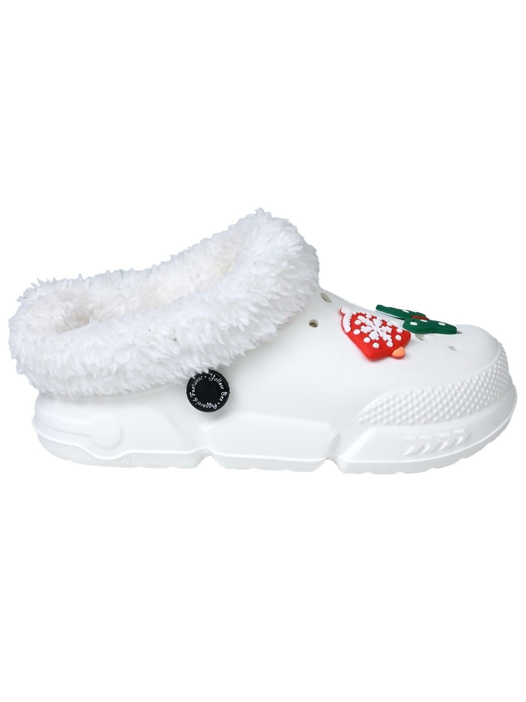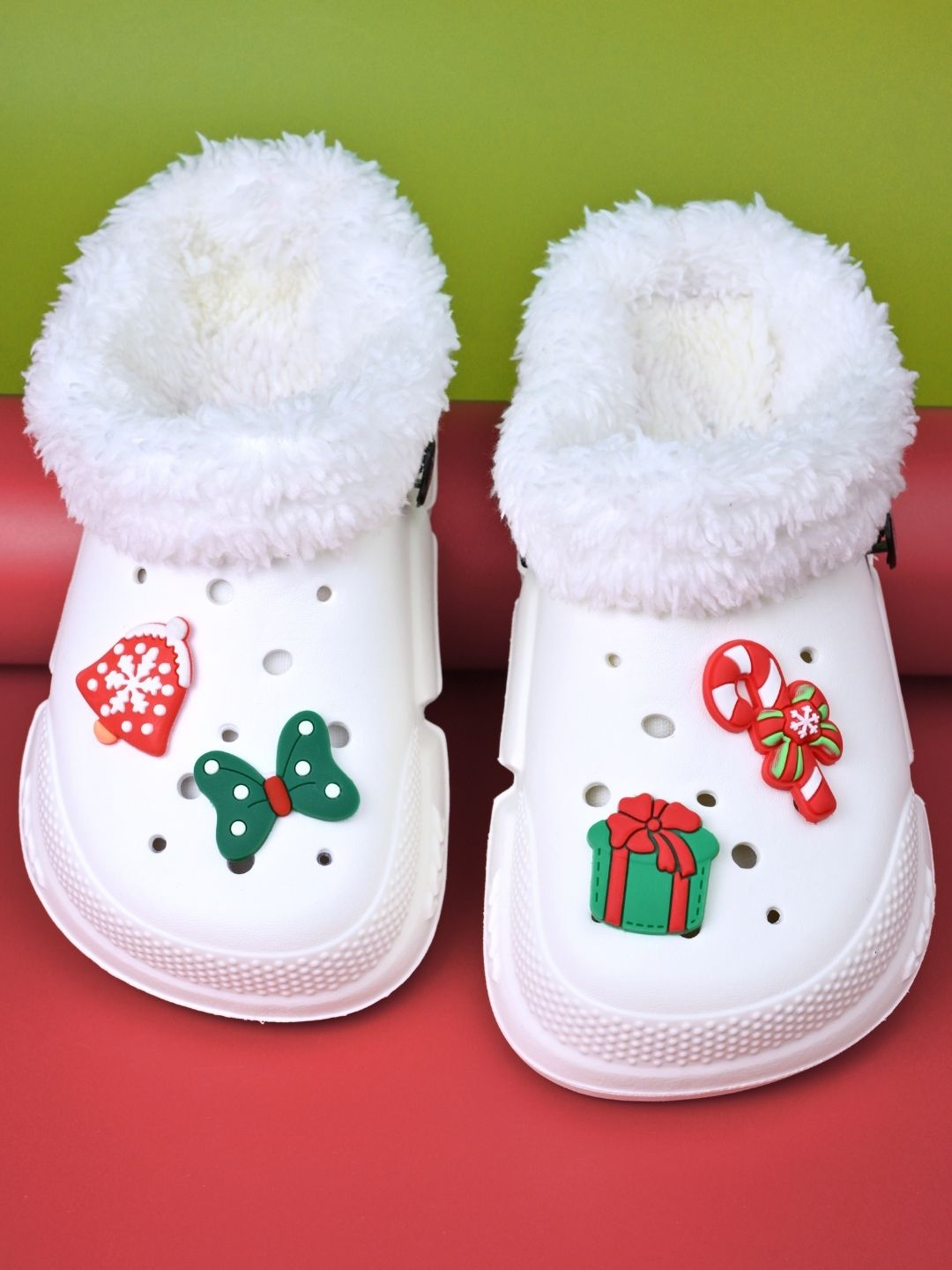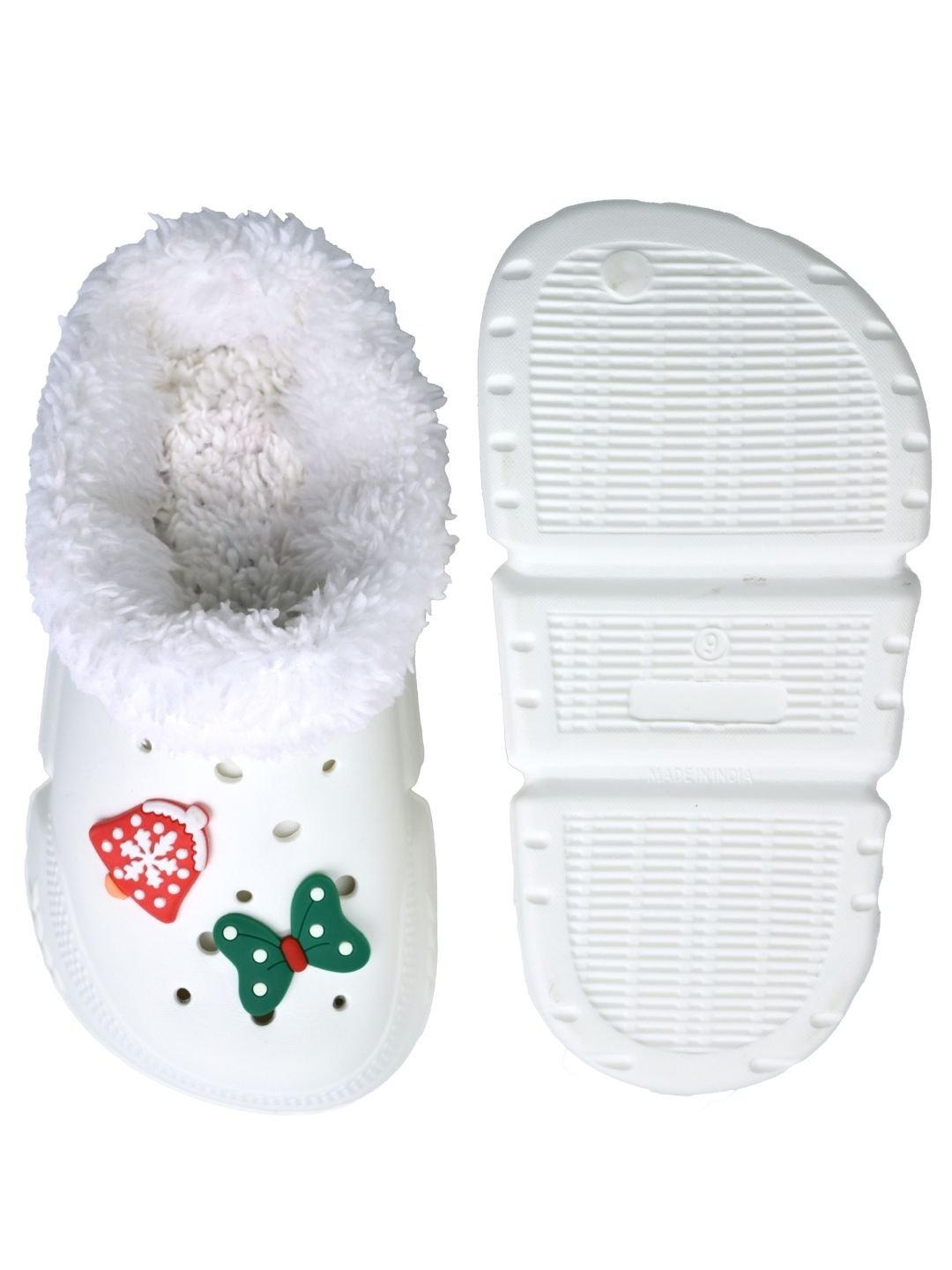 Cozy Winter Fur Lined Clogs with Christmas Charms for Boys & Girls - White