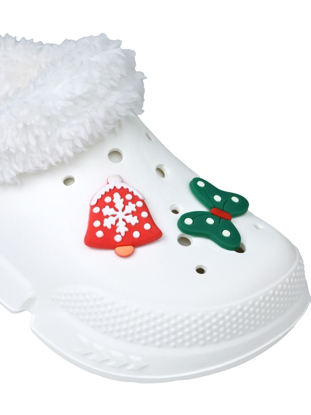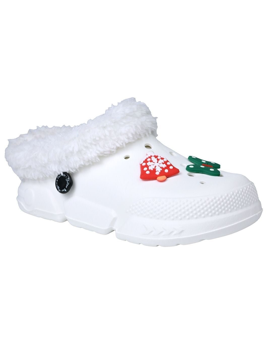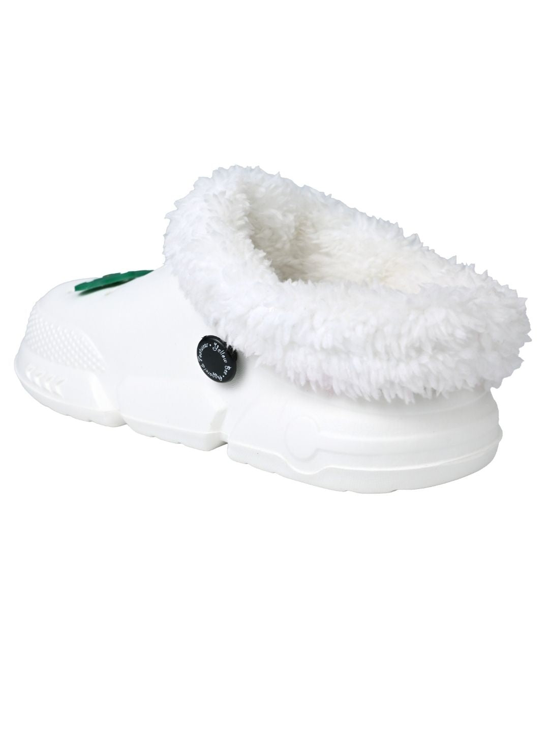 Cozy Winter Fur Lined Clogs with Christmas Charms for Boys & Girls - White