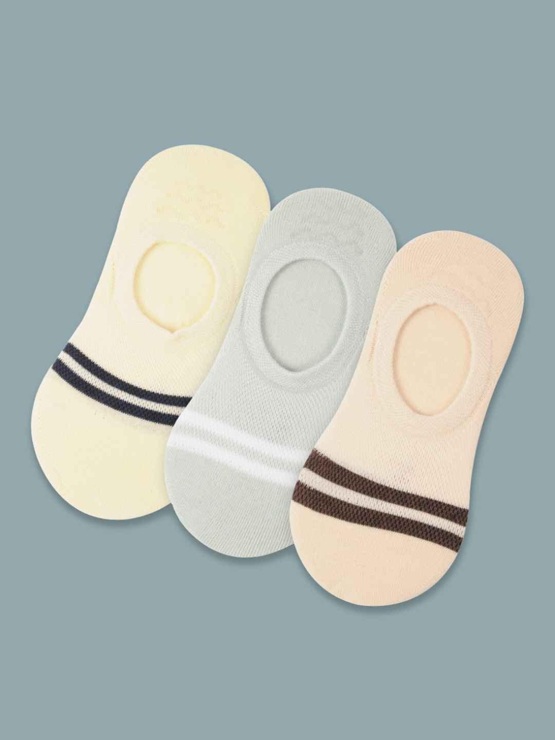 Step into subtle style with this 3-pack of no-show socks featuring delicate pastel tones and classic stripe accents. Designed for those who prefer a minimalist look, these socks provide a snug, lightweight fit that stays hidden under your shoes while adding a touch of flair.