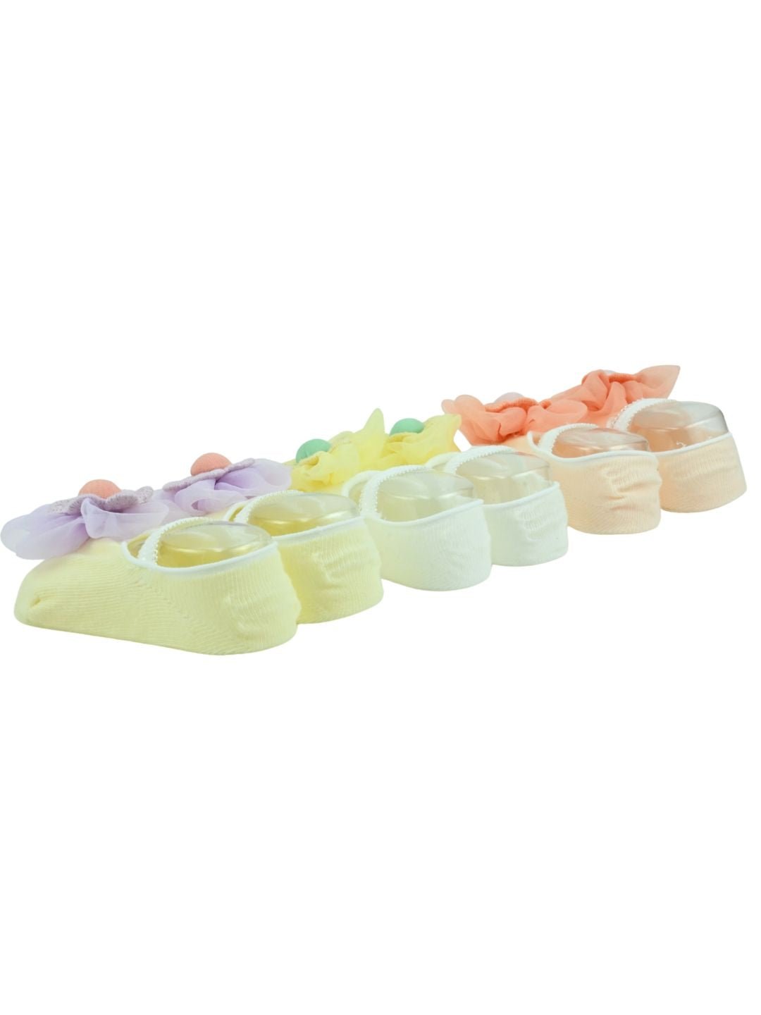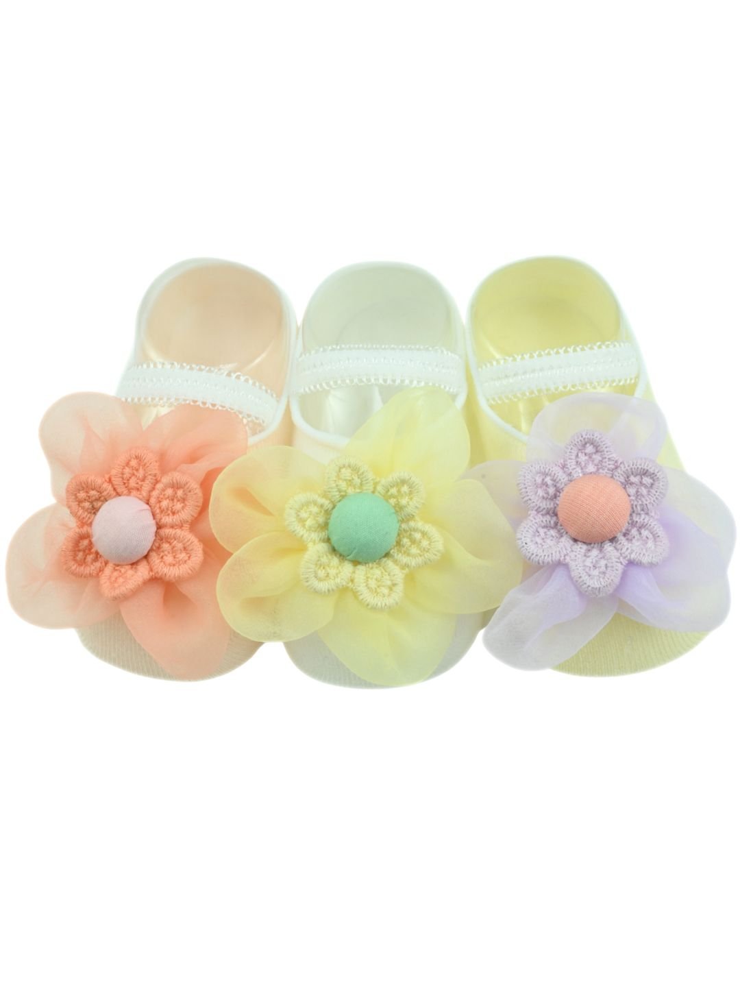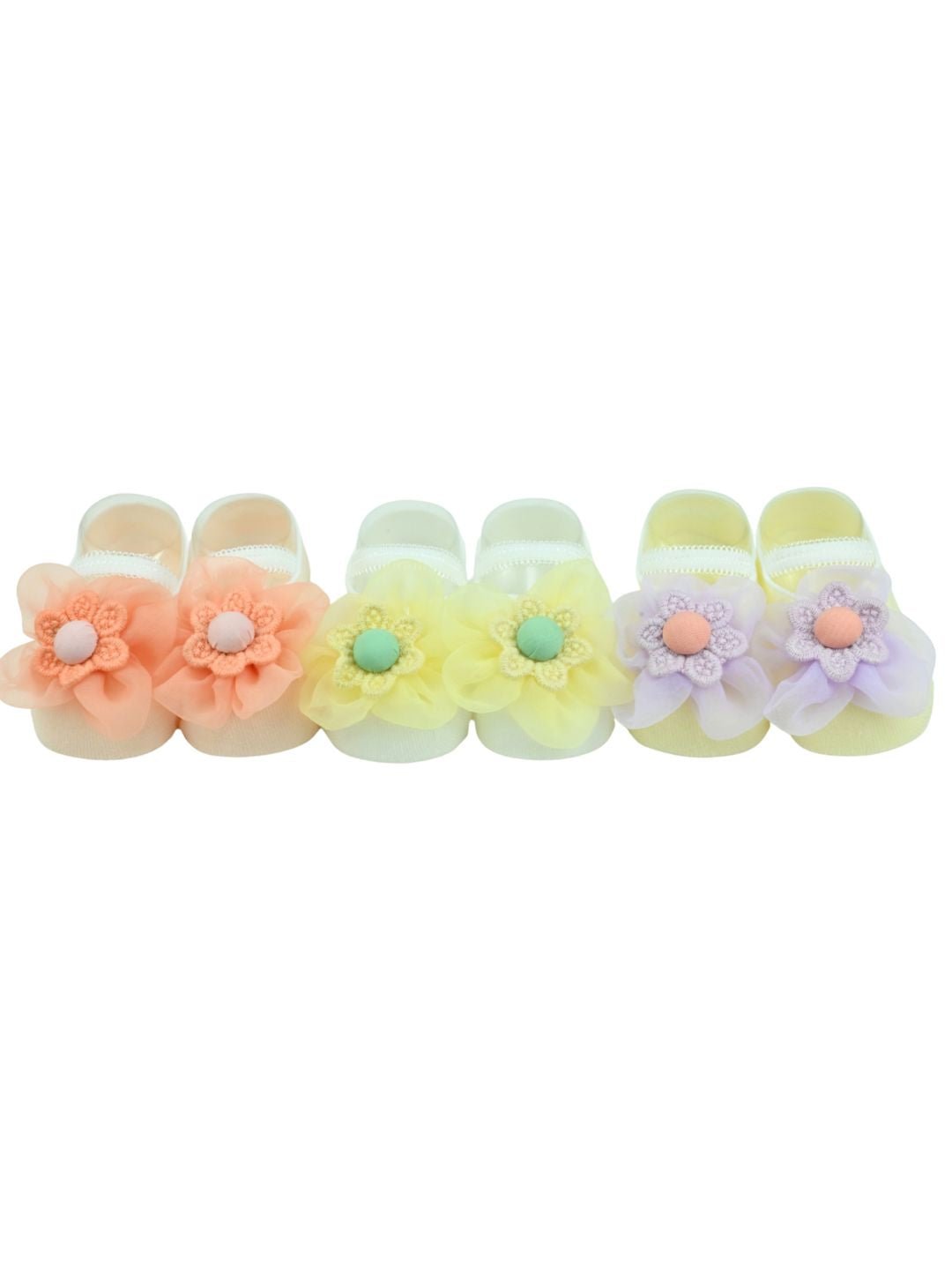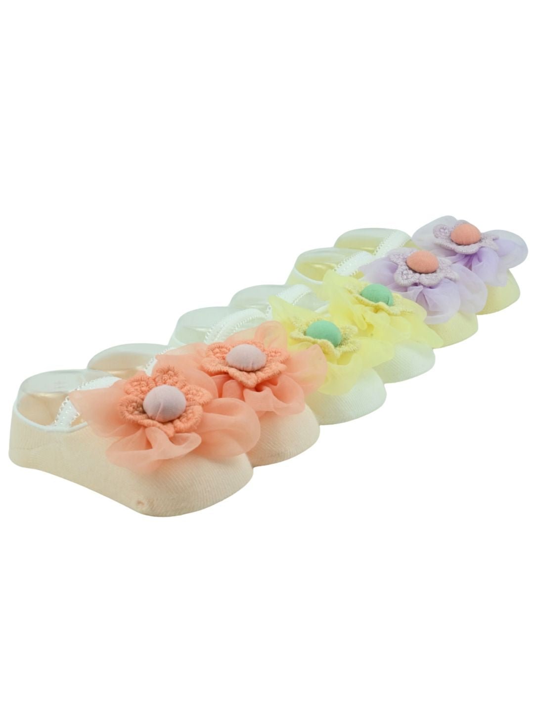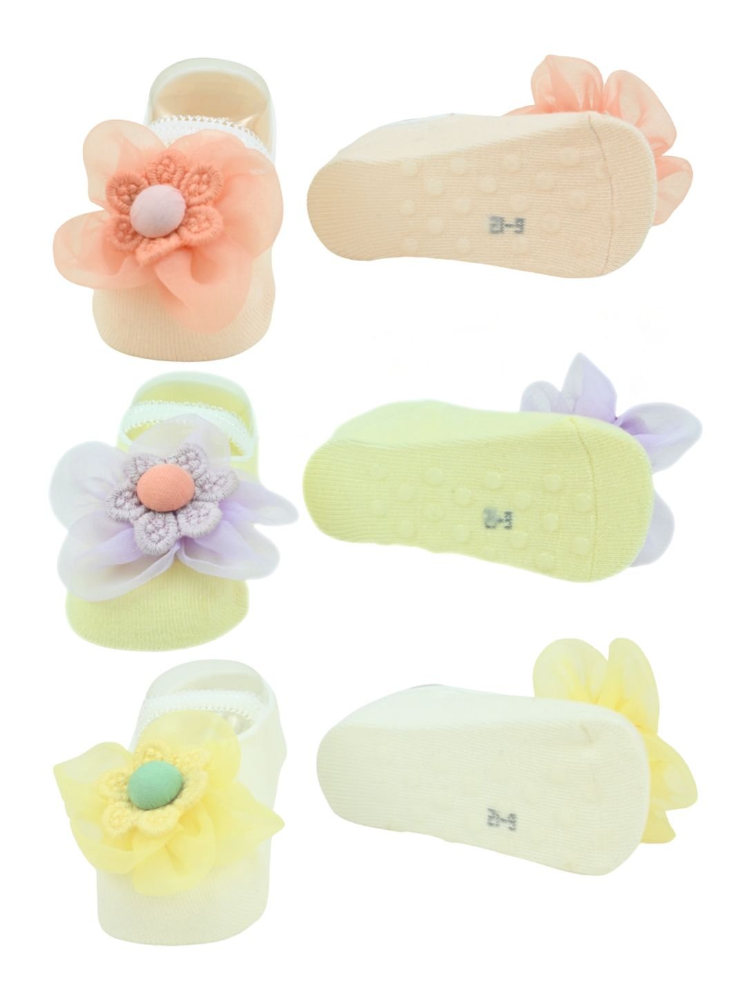 Sweet Cotton Baby Socks with Floral Charm for Girls- Orange, Yellow & Purple