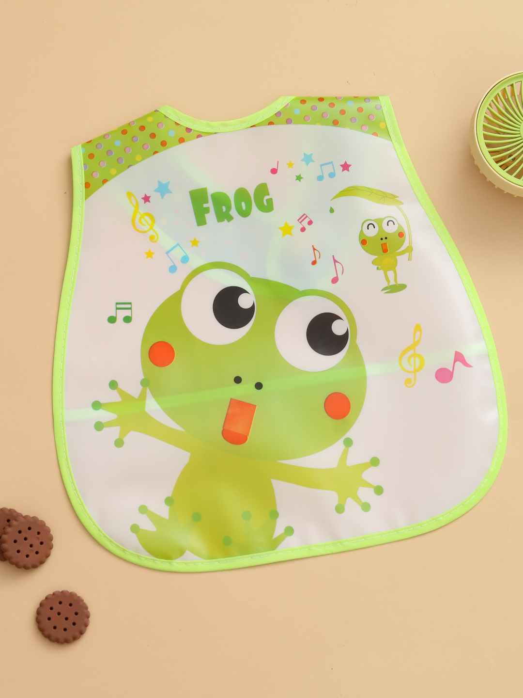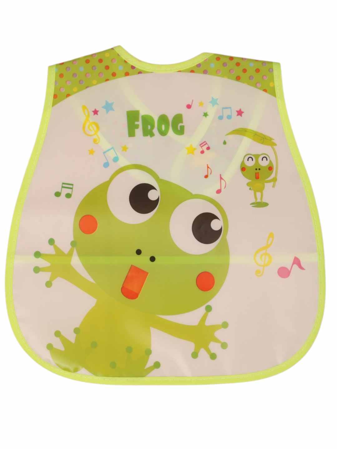 Baby Feeding Bib – Musical Green Frog Print with Spill Catcher