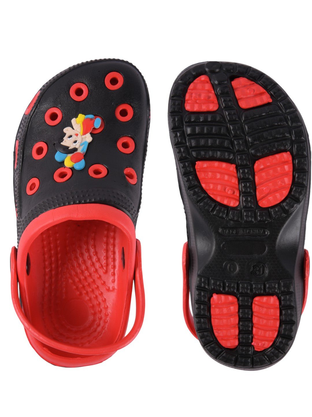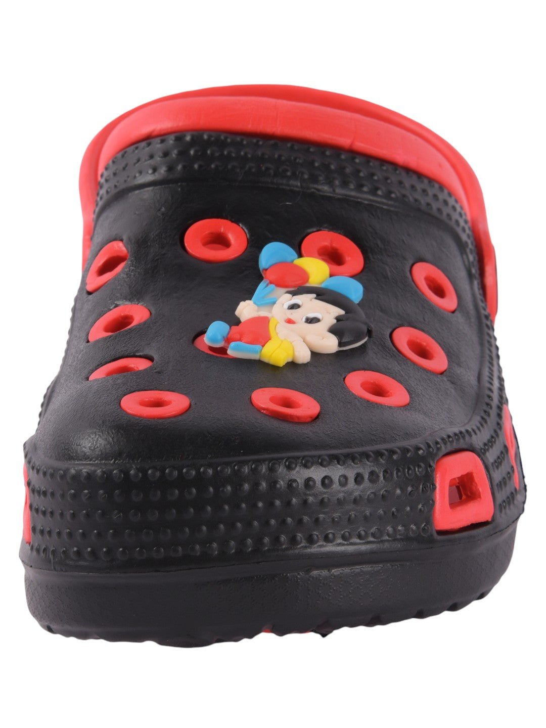 Kids' Black and Red Clogs with Cartoon Character and Adjustable Strap