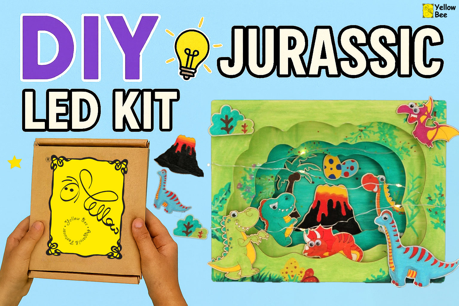The Yellow Bee Prehistoric Dino Themed 3D DIY Light Box Kit is perfect for children aged 6 and older who love dinosaurs and crafting. It makes a fantastic educational tool for parents and educators looking to engage children in a fun and informative activity. To use, simply unpack the kit, assemble according to the included instructions, and turn on the lights to watch the prehistoric world light up!