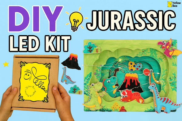 Step back in time and explore the age of dinosaurs with Yellow Bee's Prehistoric Dino Themed 3D DIY Light Box Kit. This kit allows children to create a vibrant prehistoric scene with colorful dinosaurs and lush prehistoric landscapes that light up with an LED backdrop. It’s a perfect blend of fun, learning, and creativity, providing a mesmerizing display that brings the Jurassic world right into your home.