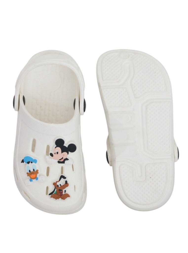 Yellow Bee Boys’ Disney Clogs with Mickey Mouse, Donald Duck & Pluto Charms – White