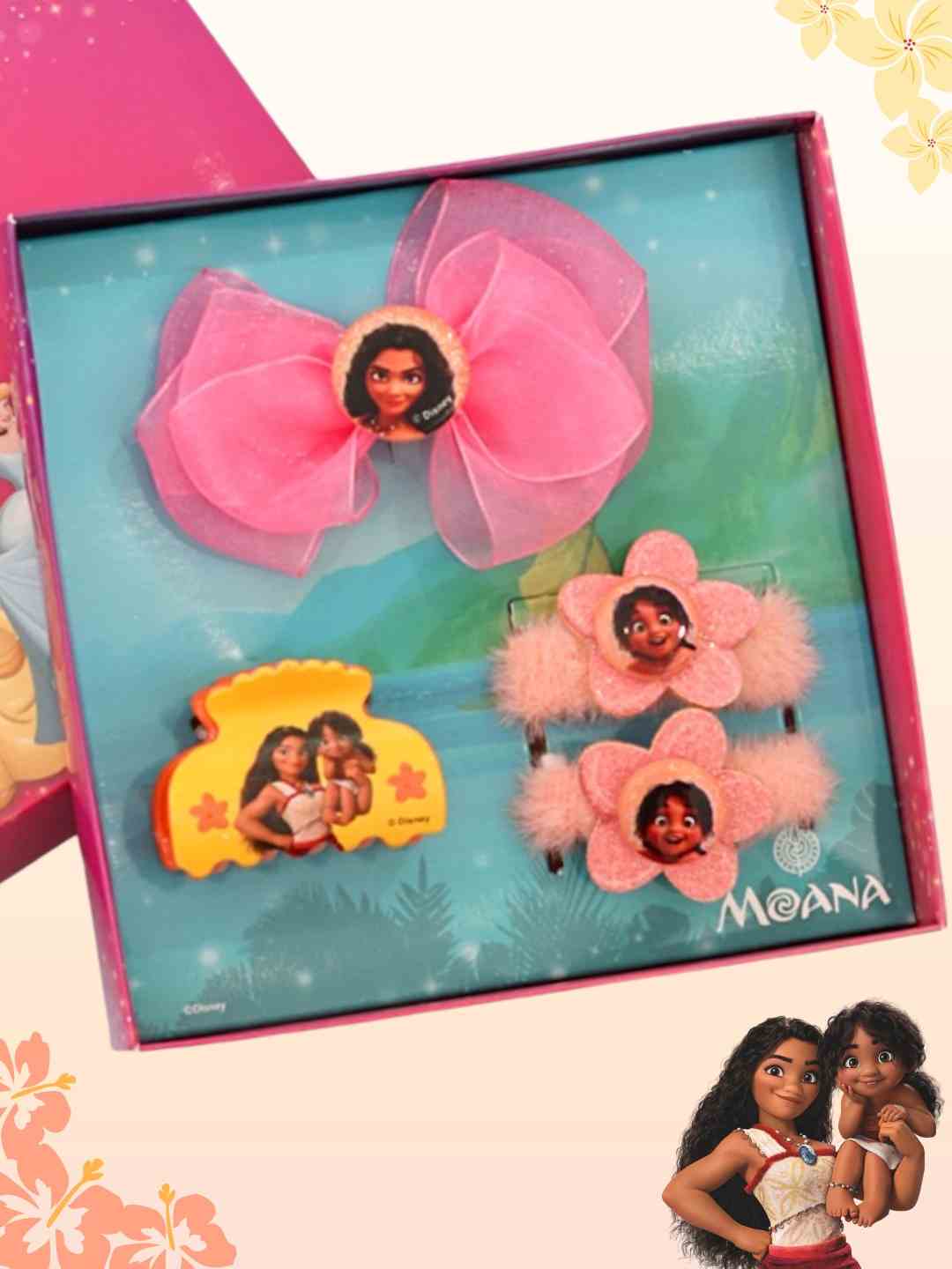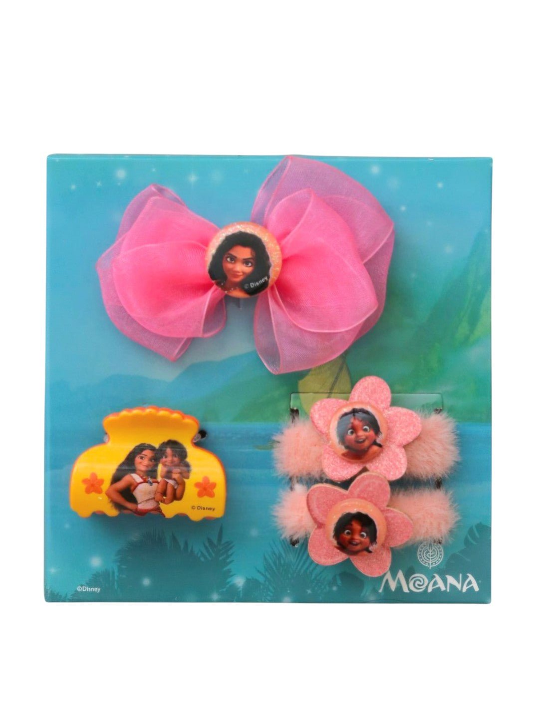 Yellow Bee Disney Moana Hair Accessories Set for Girls – Pink Bow, Claw Clip & Floral Hair Ties