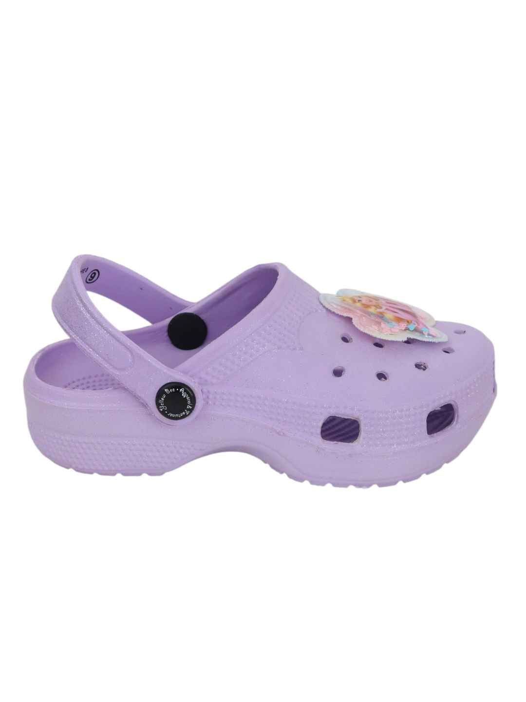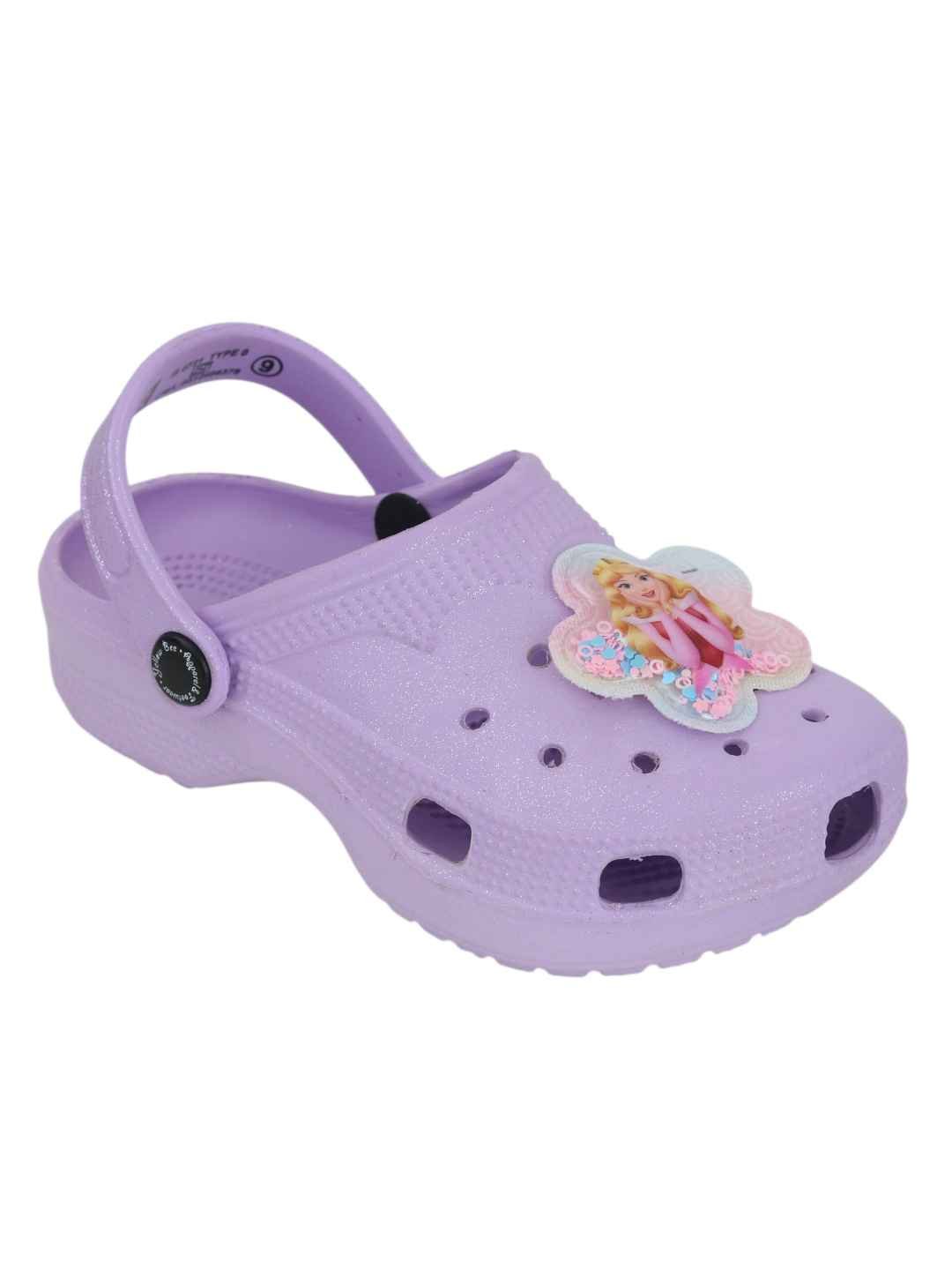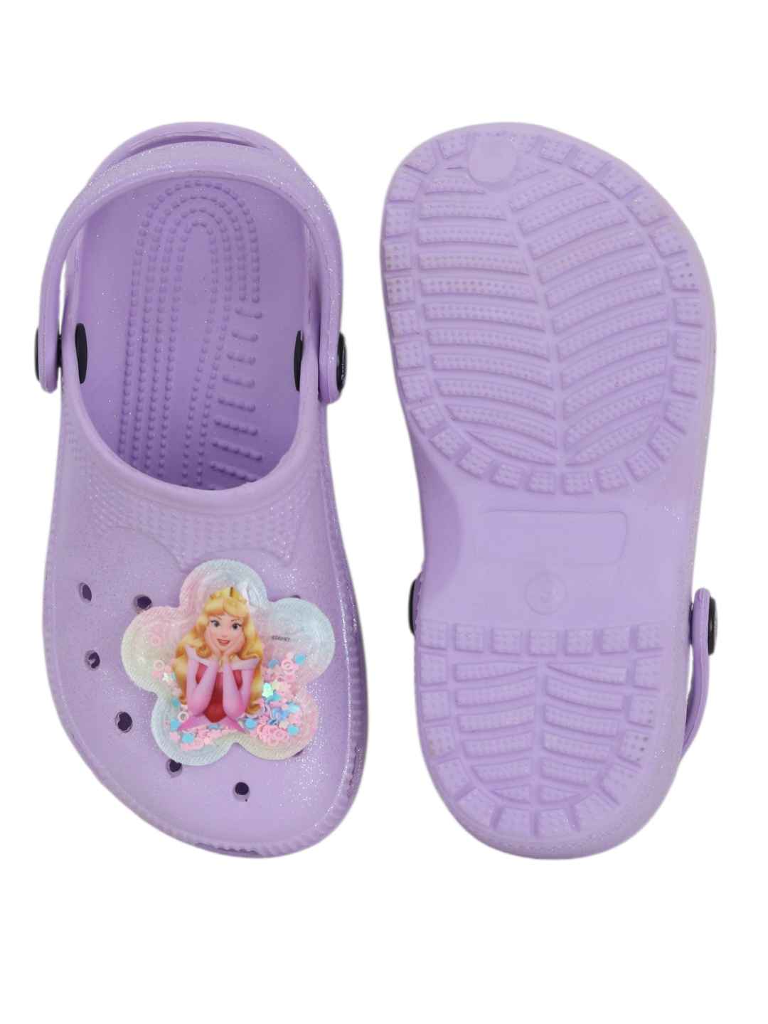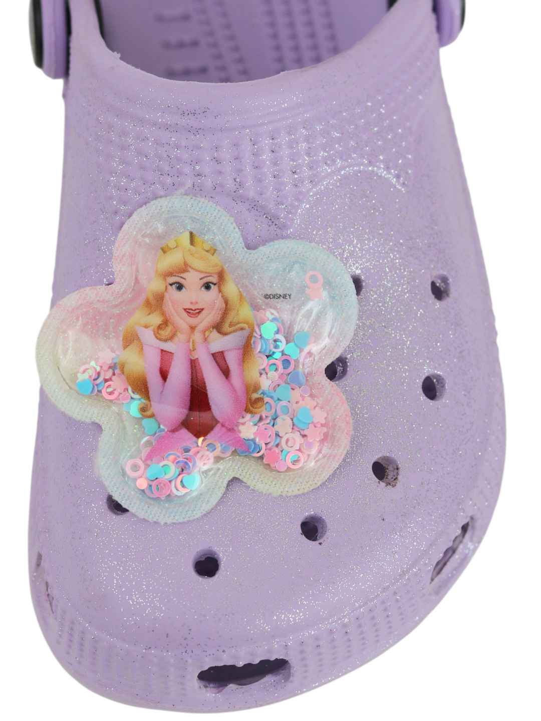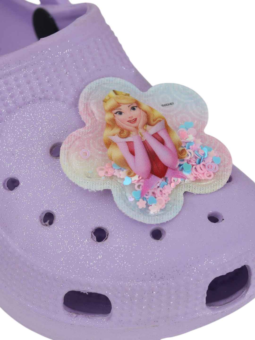 Yellow Bee Girl's Disney Princess Aurora Glitter Clogs with Floral glitter Charms - Purple