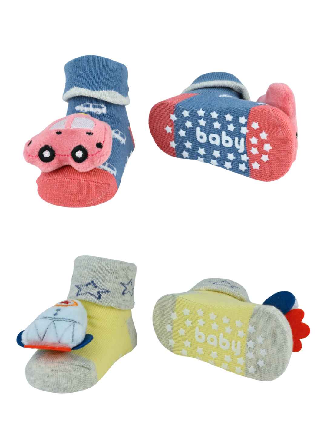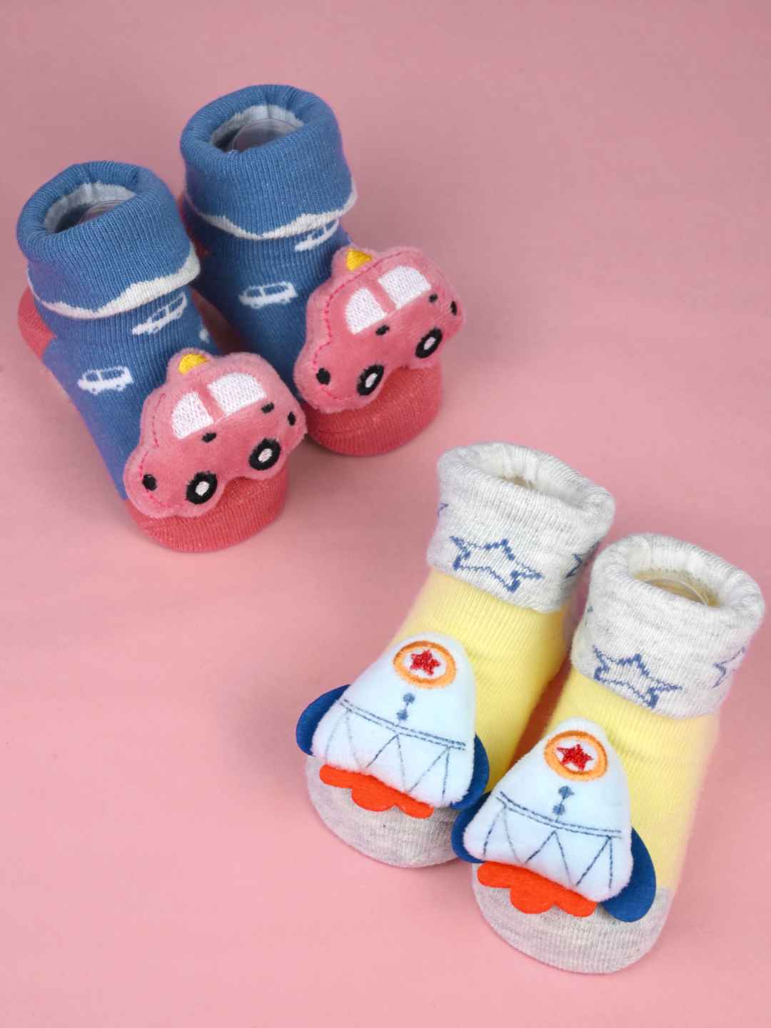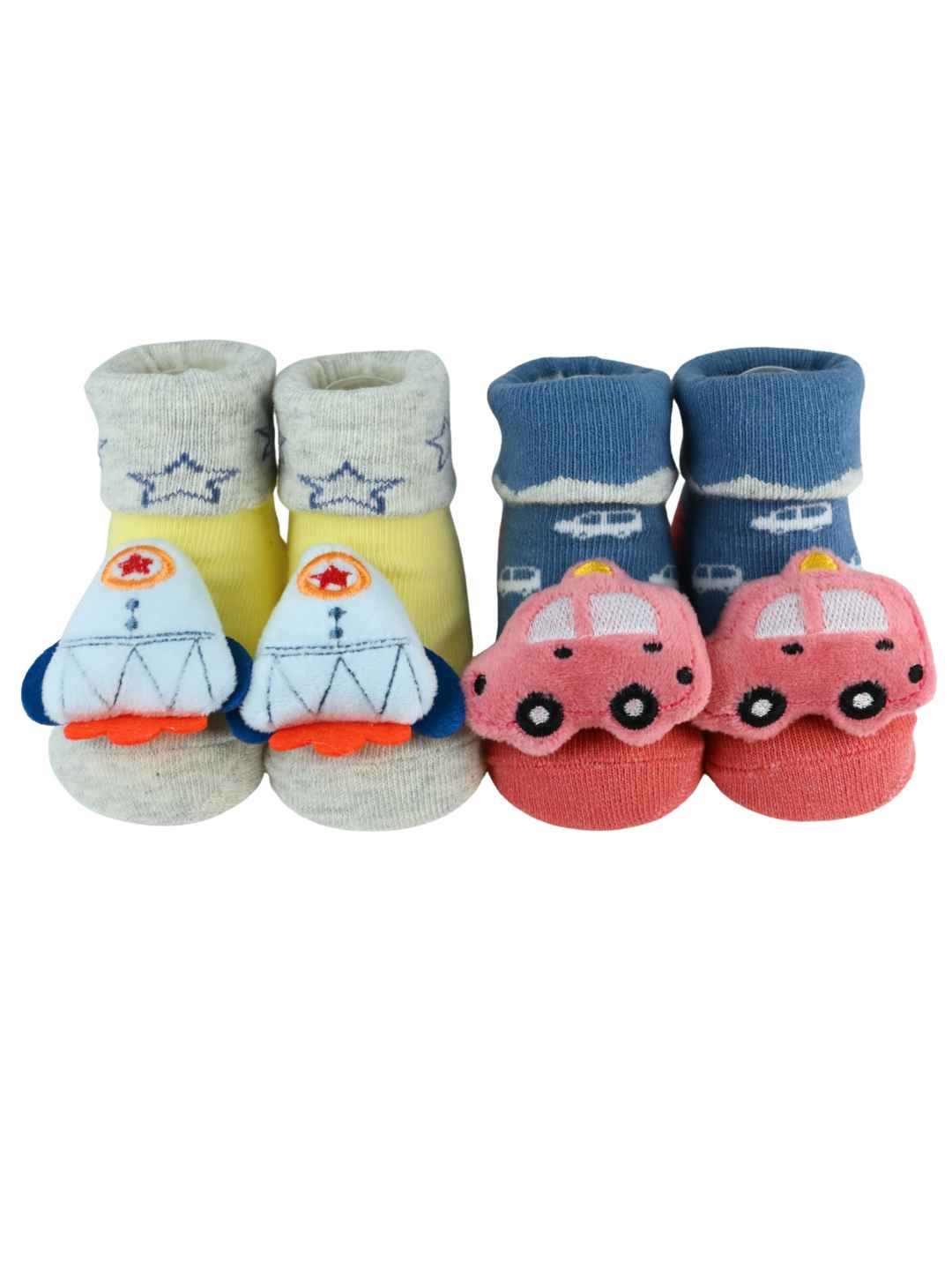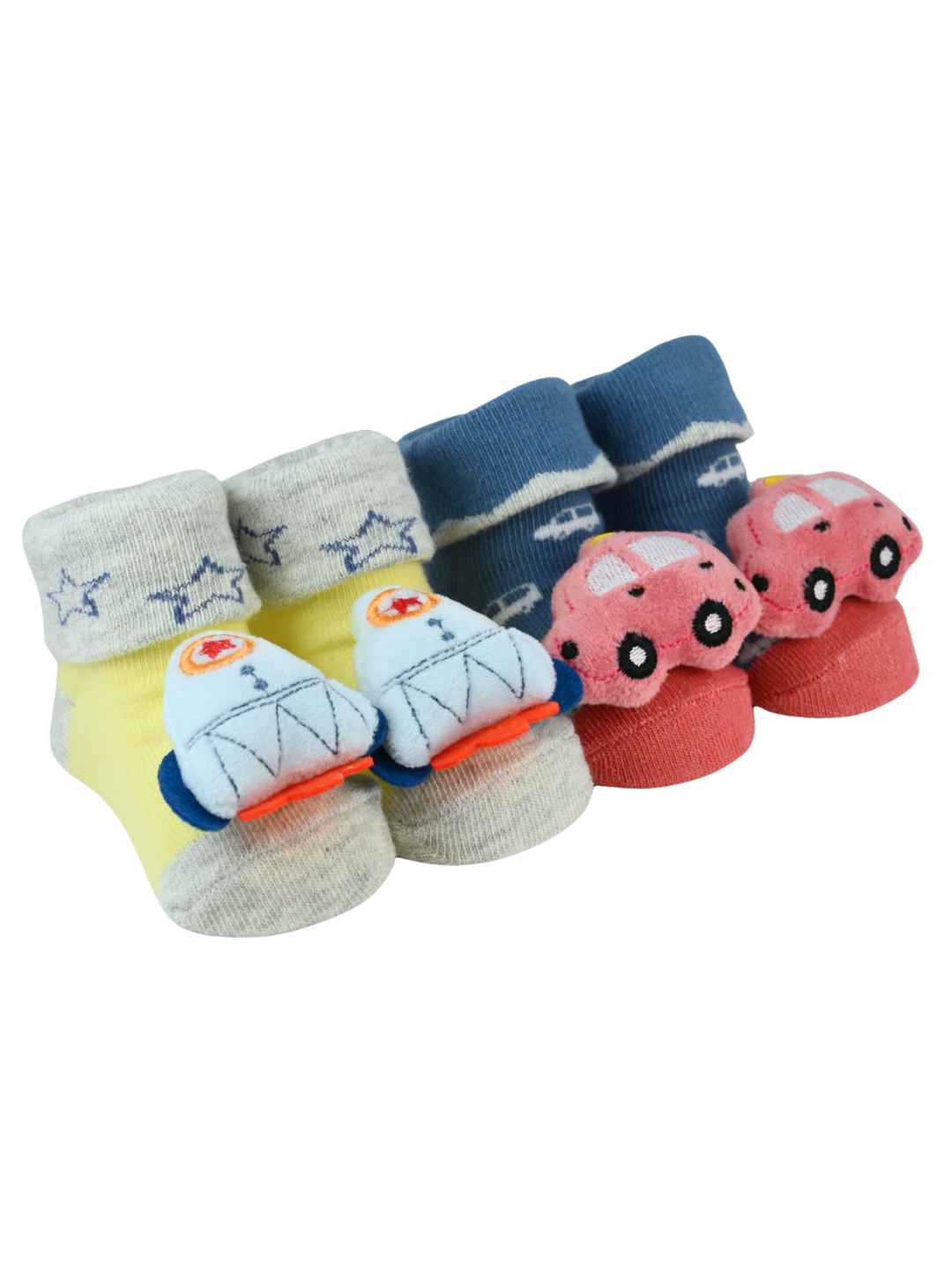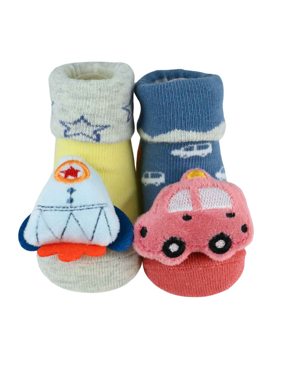 Playful 3D Rocket & Car Design Socks For Boys - Grey & Blue