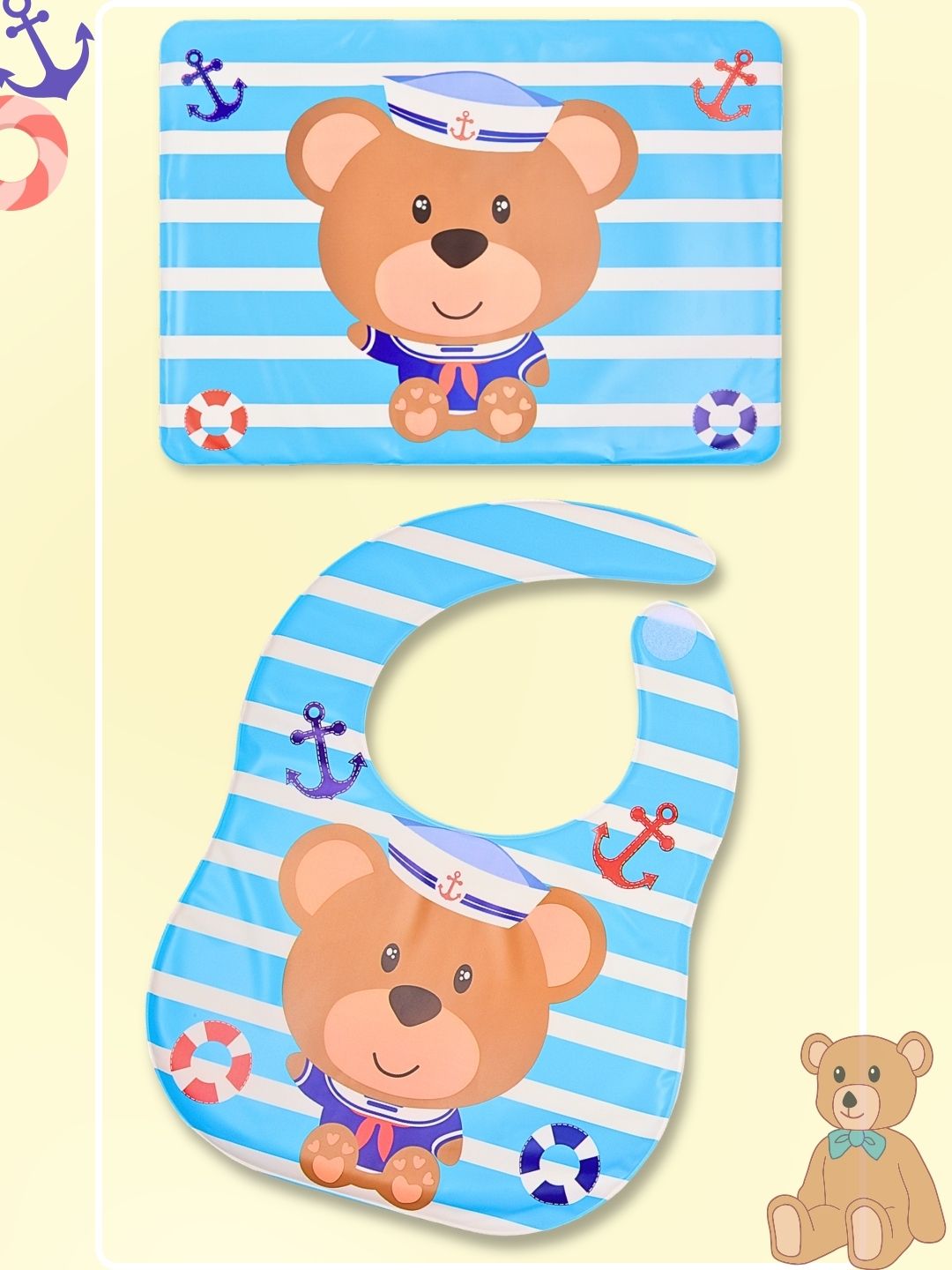 Introducing the Yellow Bee Feeding Bib With Mat Bear Print, the ultimate solution for a clean and enjoyable feeding experience for your little one. This adorable feeding bib and mat set features a charming bear print that will make mealtime fun and mess-free. Designed for ages 1-6 years, it provides full coverage and protection during mealtime, ensuring your child's clothes remain spotless.