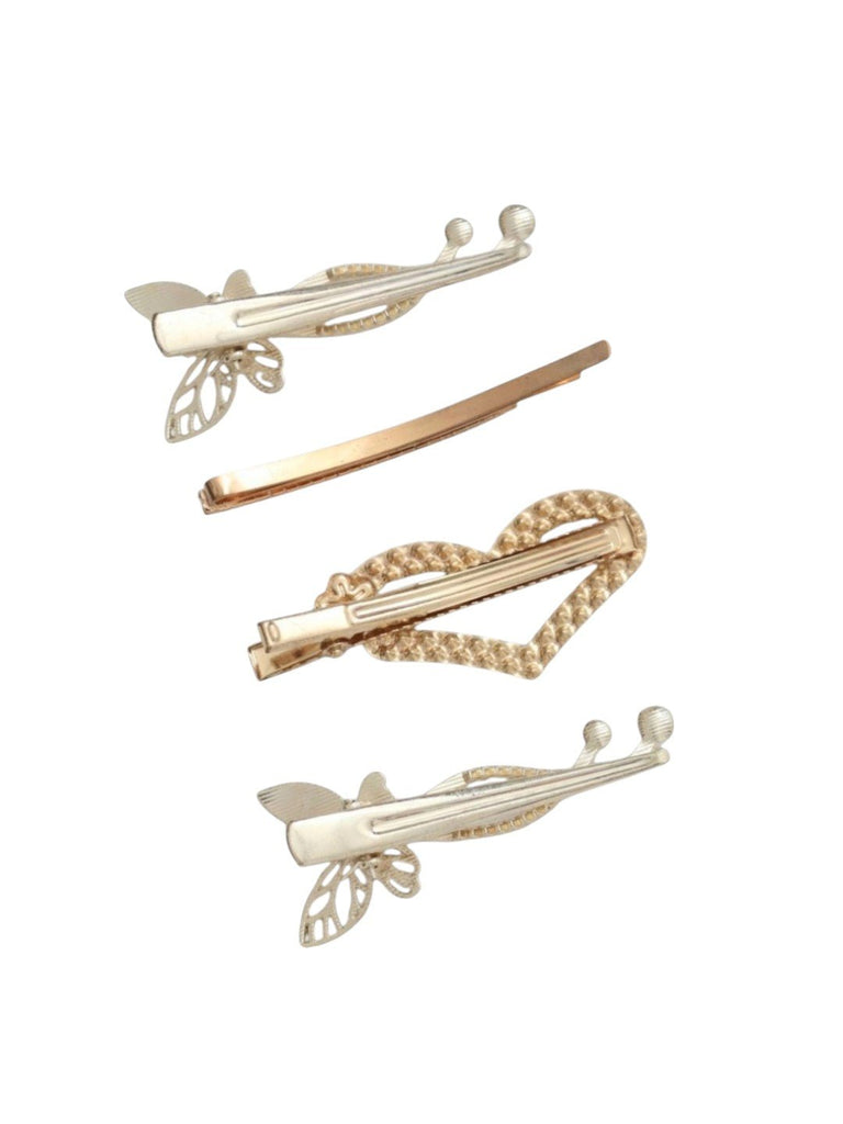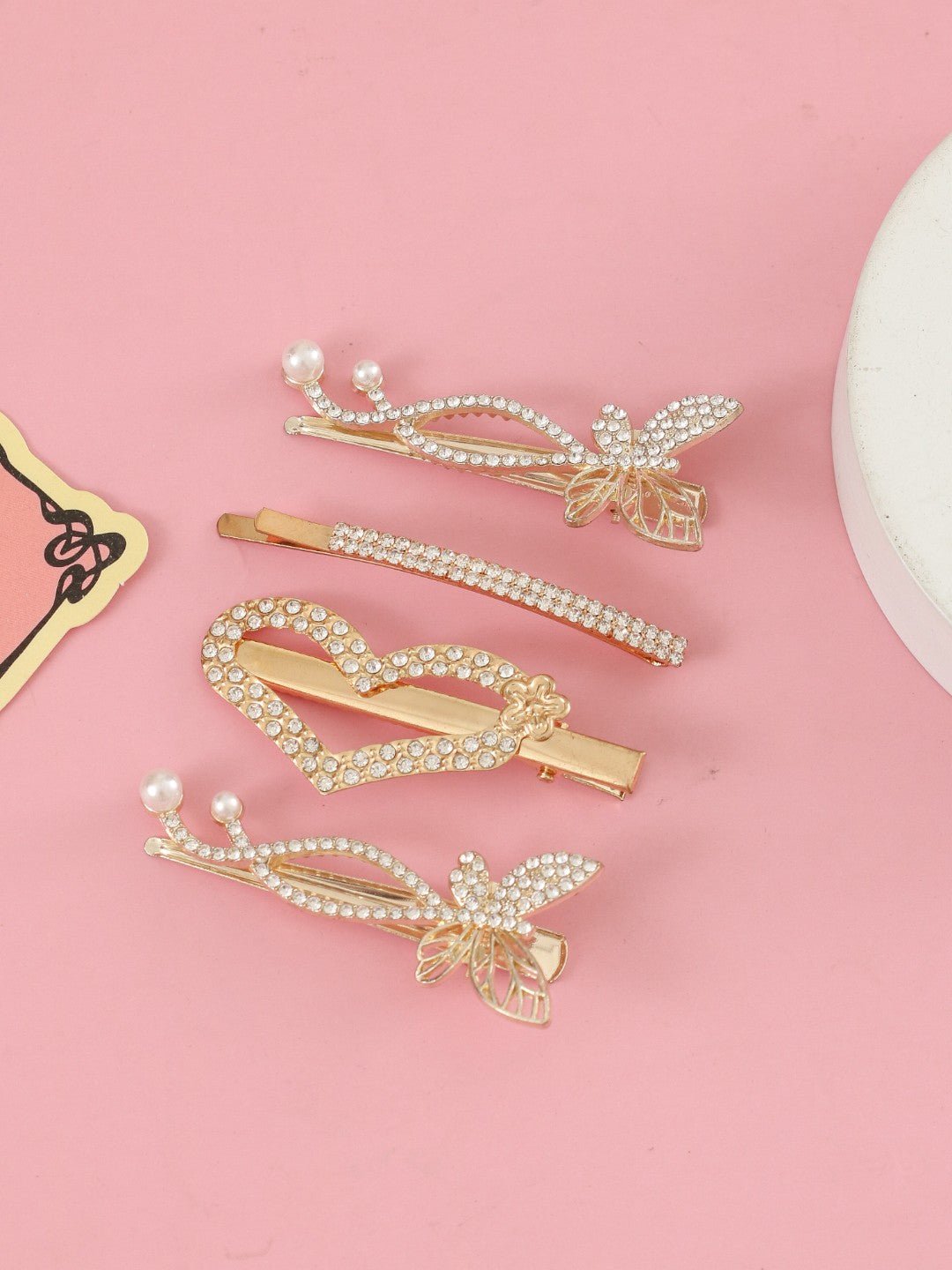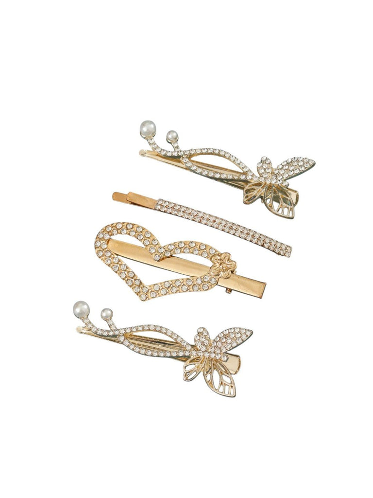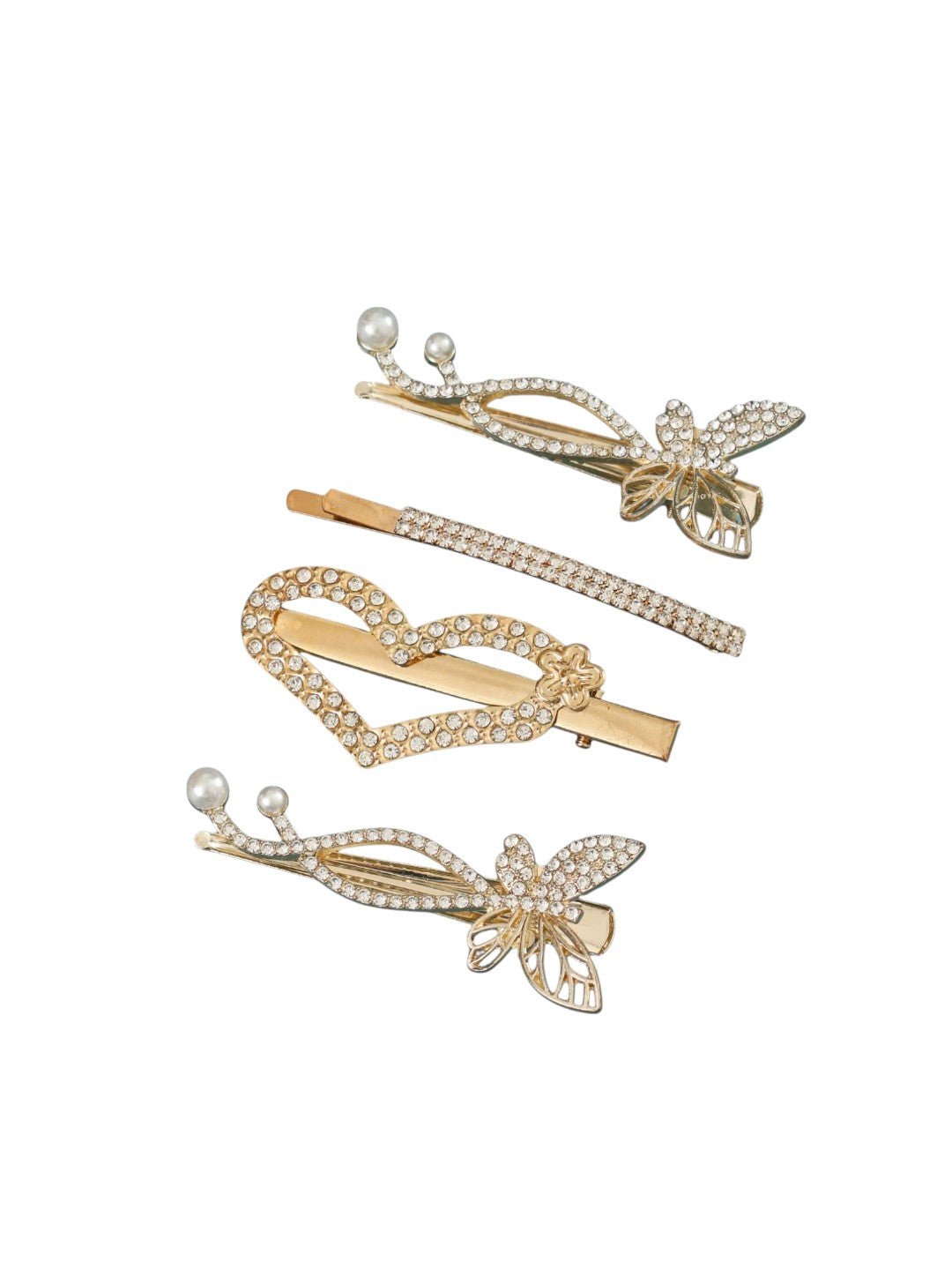 Yellow Bee Girls' Elegant Hair Clips – Set of 4 with Butterfly, Heart & Pearl Accents