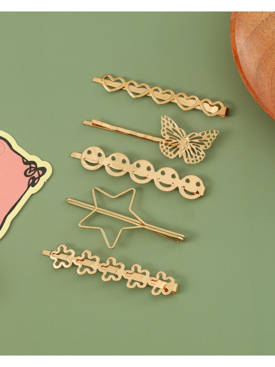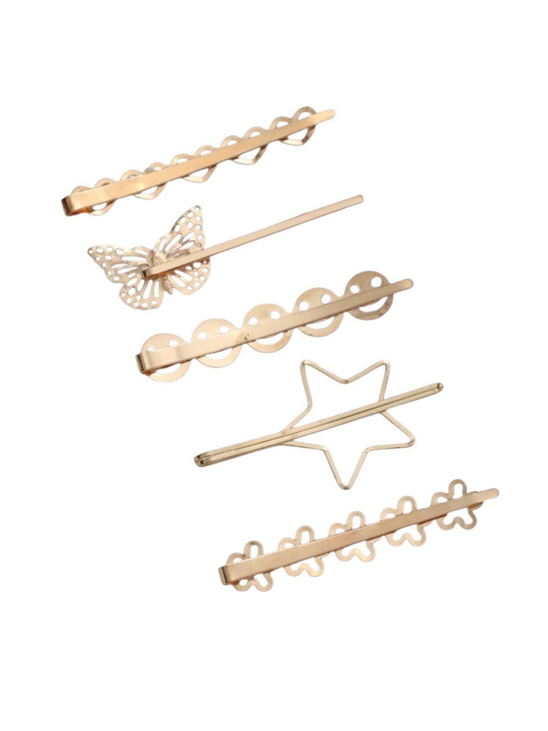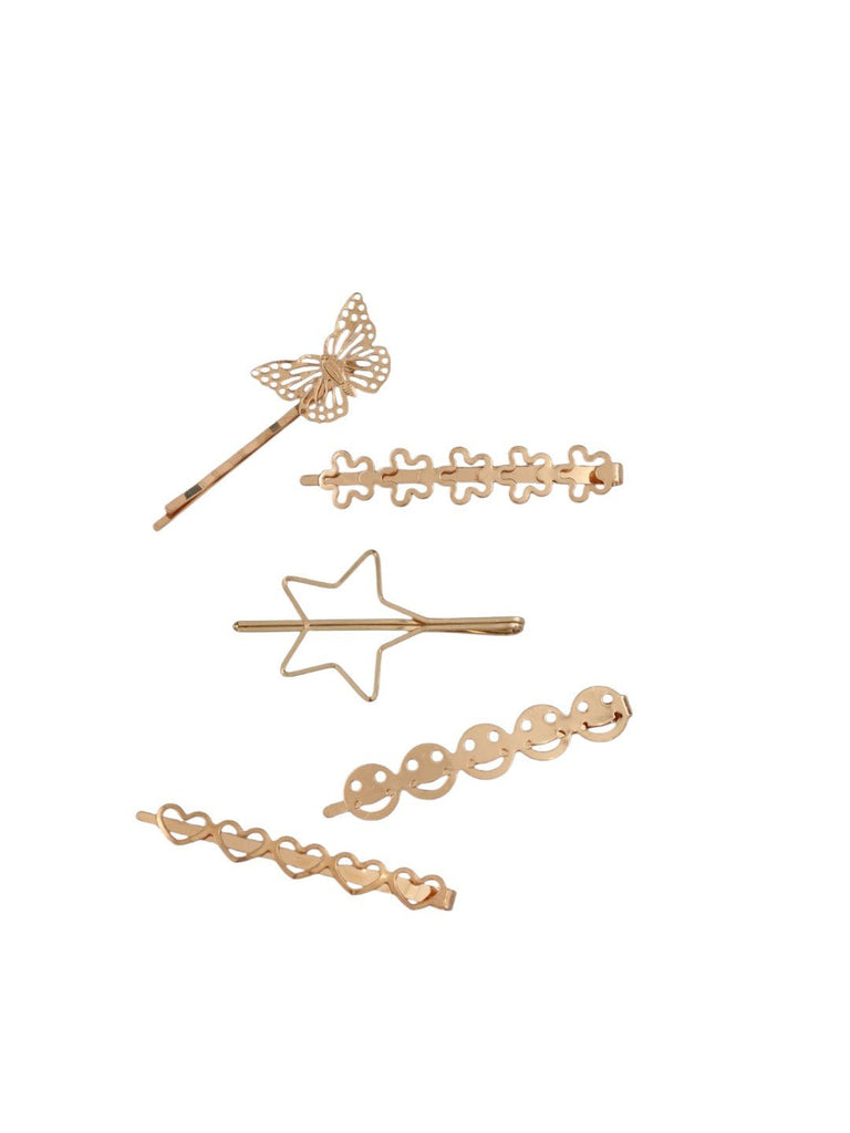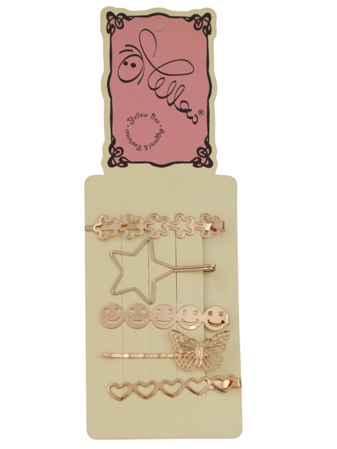 Yellow Bee Girls’ Gold Hair Clips – Set of 6 with Fun Shapes & Designs | Butterfly, Star, Smiley, Heart & More