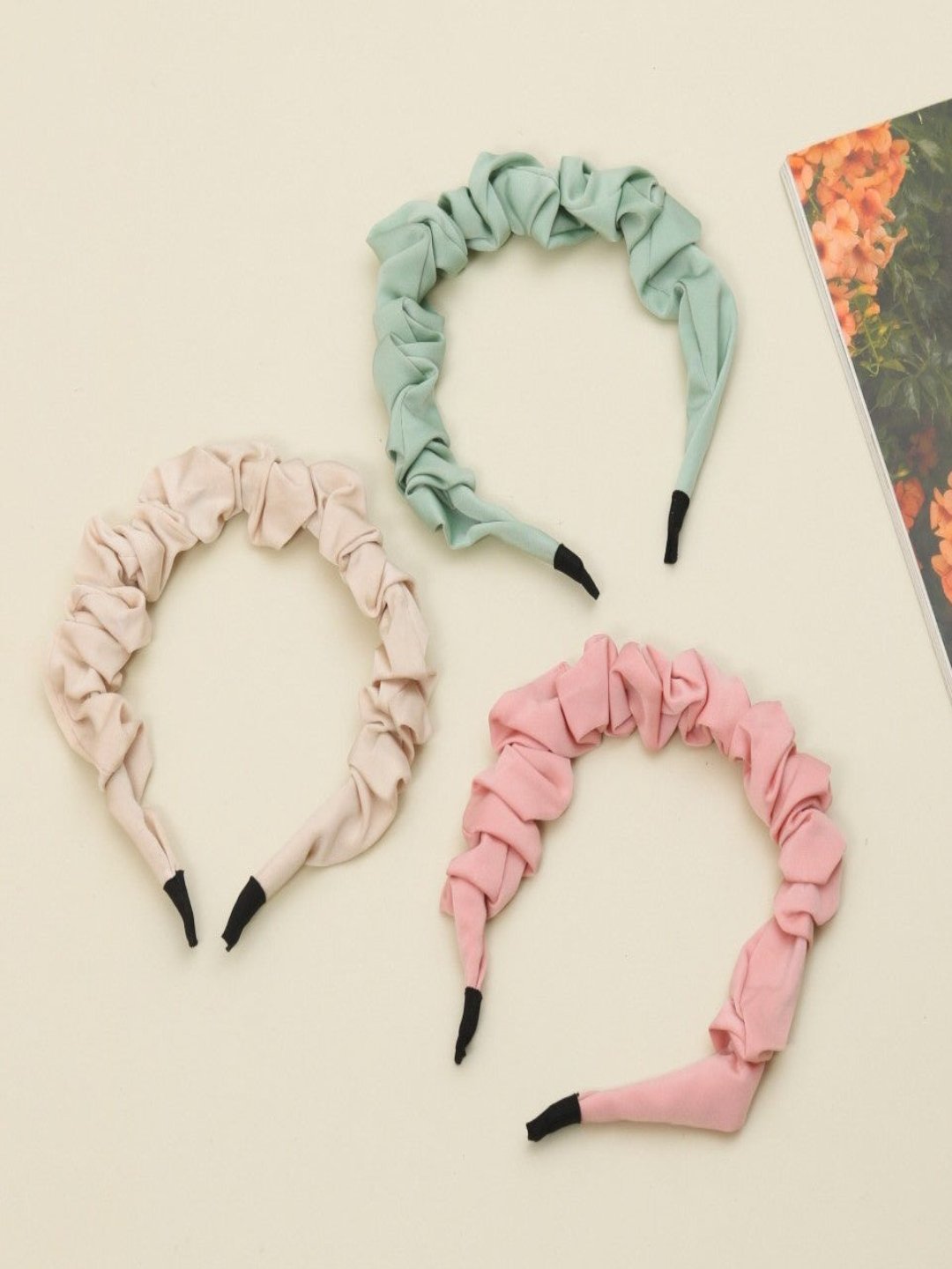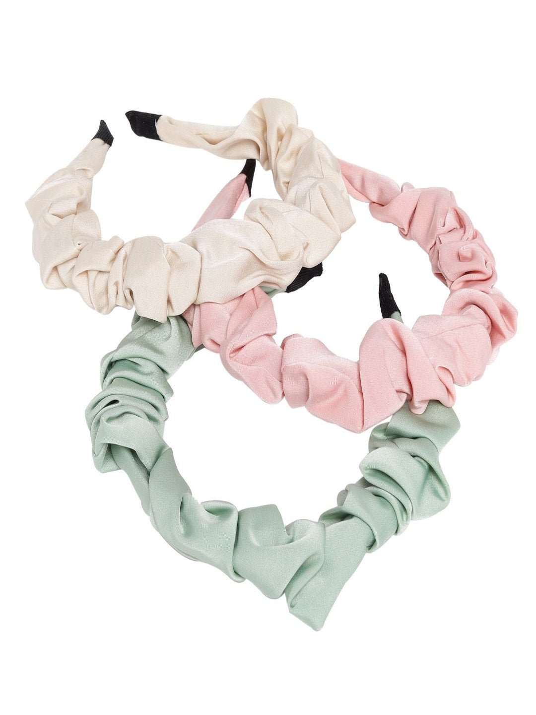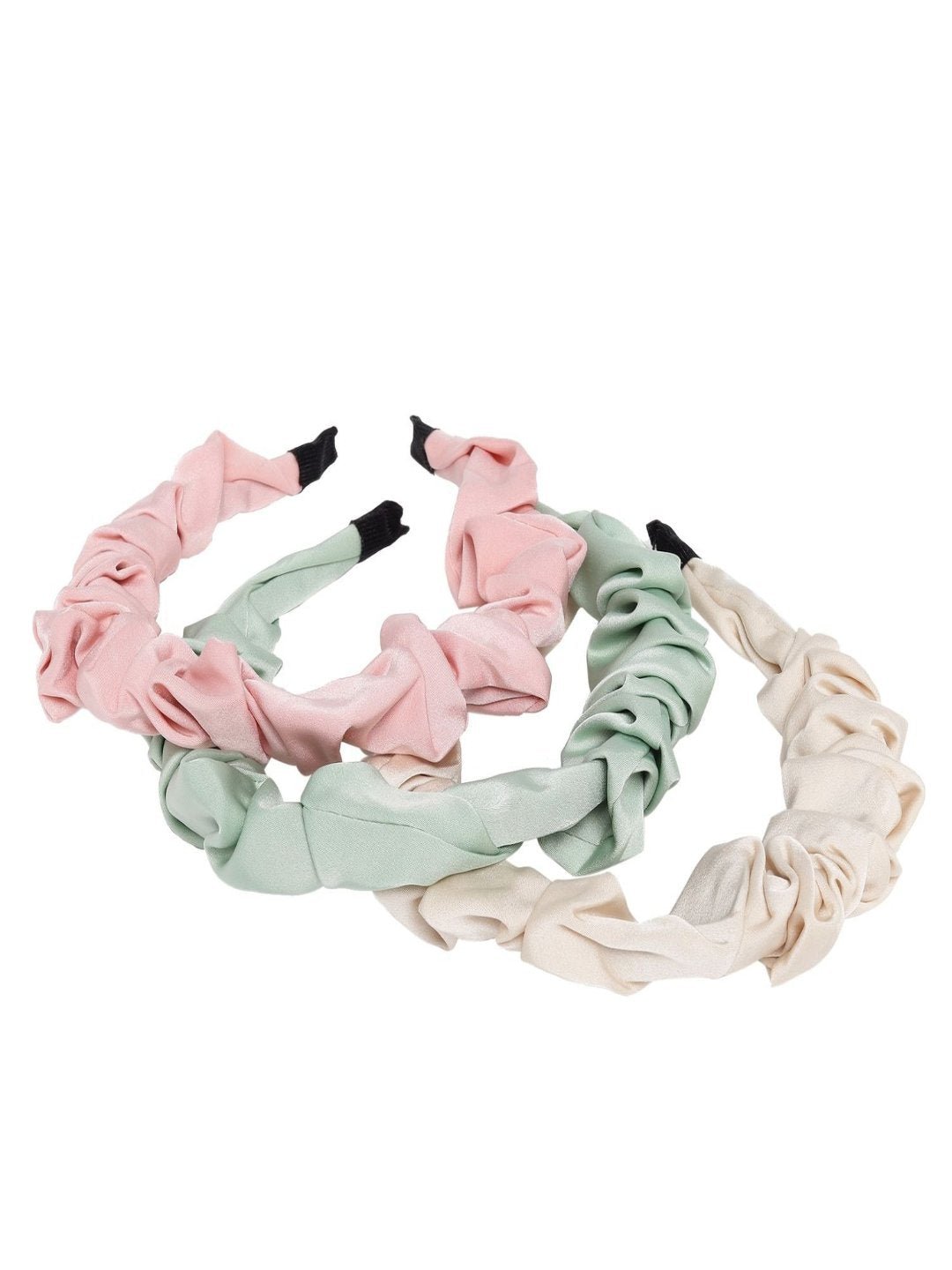 Fashionable Hairbands Trio for Girls - Elegant Beige Vibrant Pink and Soft Green, Pack of 3