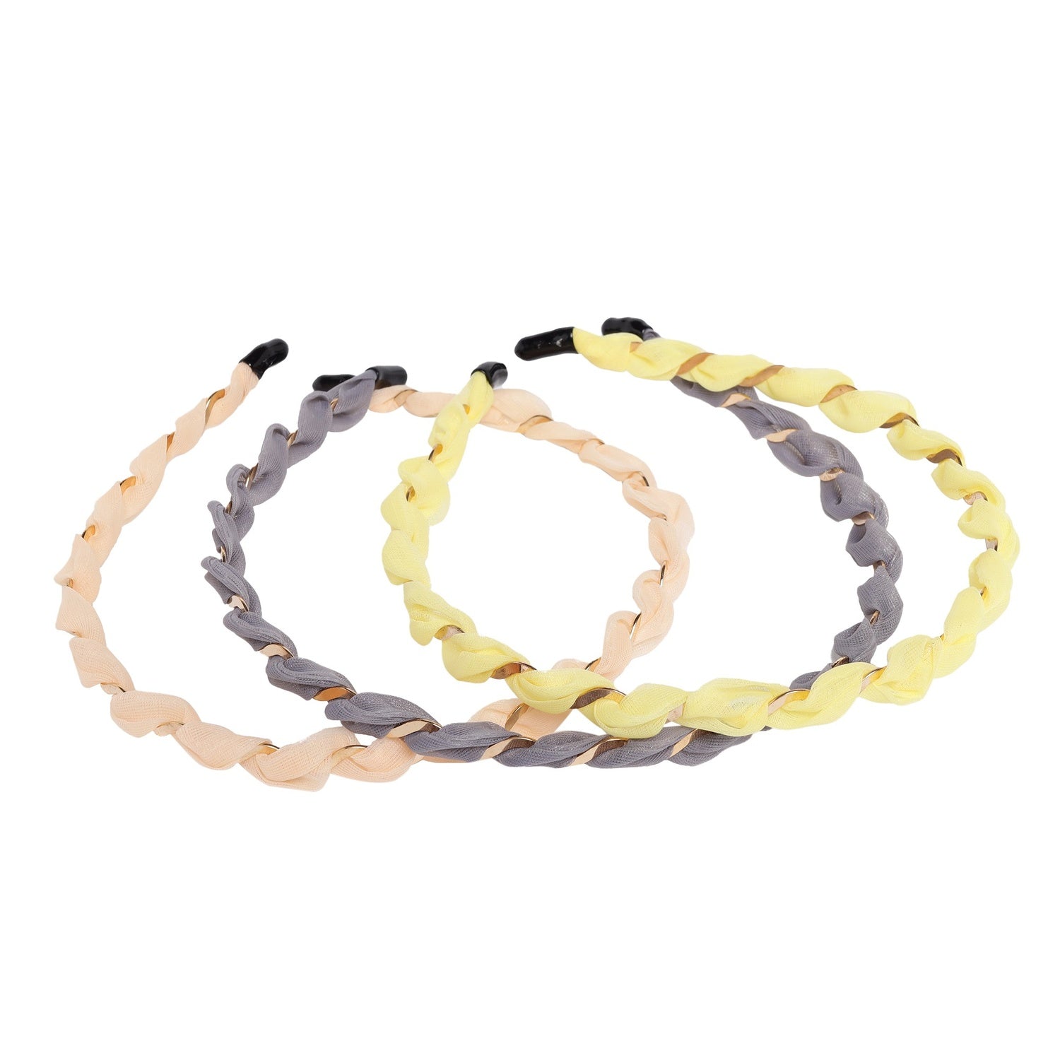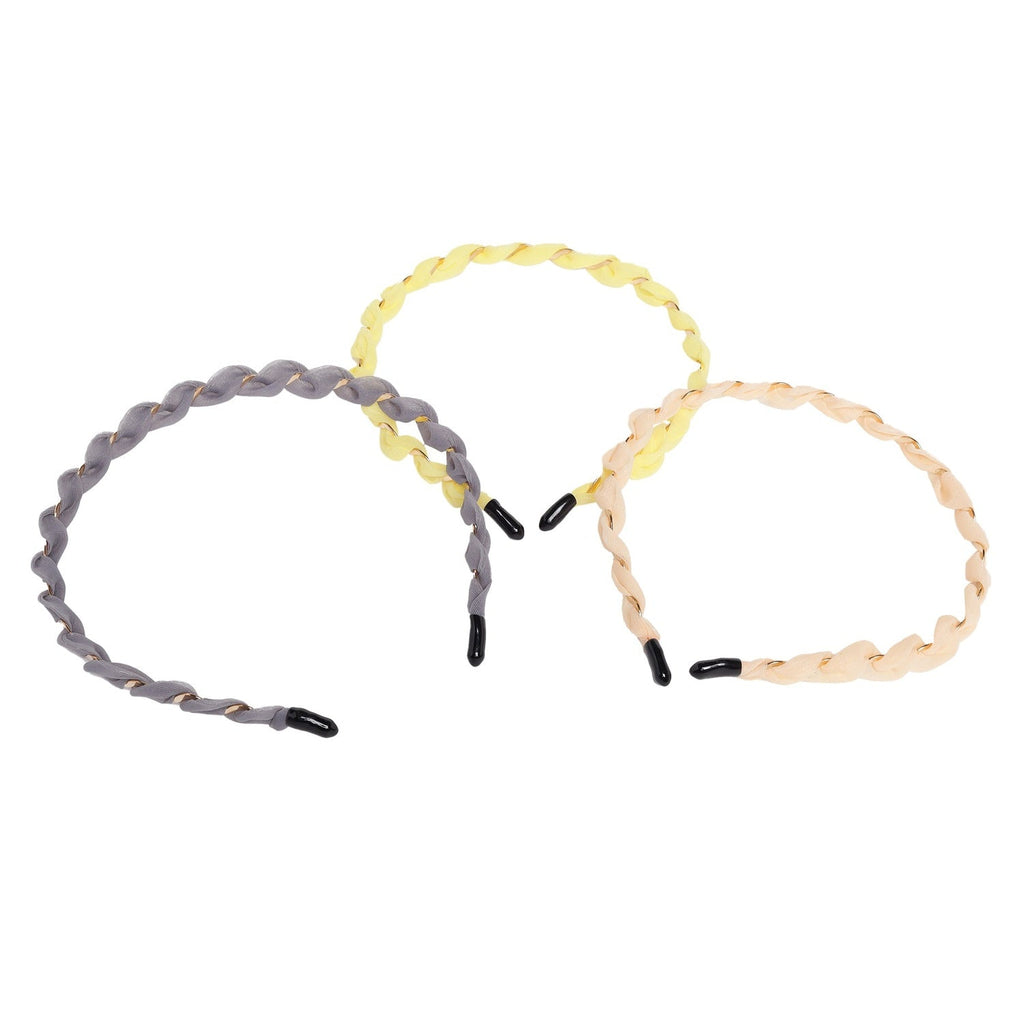 Multicolor Set of 3 Braided Hair Bands - Yellow, Grey & Peach