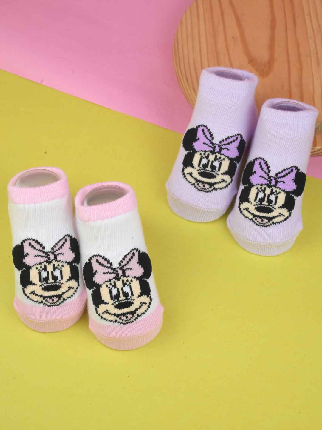 Yellow Bee Girl's Disney Minnie Mouse Design Cotton Socks Combo - Pink & Purple