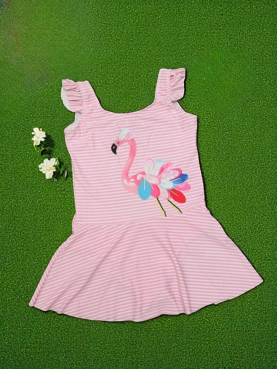 Dive into a world of tropical elegance with the Chic Flamingo Fantasy Pink One-Piece Swimsuit! Designed for women who love a playful yet stylish beach look, this swimsuit features charming pink and white stripes adorned with a vibrant flamingo print that instantly lifts your summer spirit. The soft ruffle straps add a flirty, feminine touch, while the flared skirt silhouette offers extra coverage and a flattering fit, making it perfect for pool parties, beach vacations, or lounging by the water. Crafted with premium-quality, stretchable fabric, this one-piece ensures all-day comfort and ease of movement. Whether you're catching waves or soaking up the sun, you'll feel confident, comfortable, and irresistibly chic.