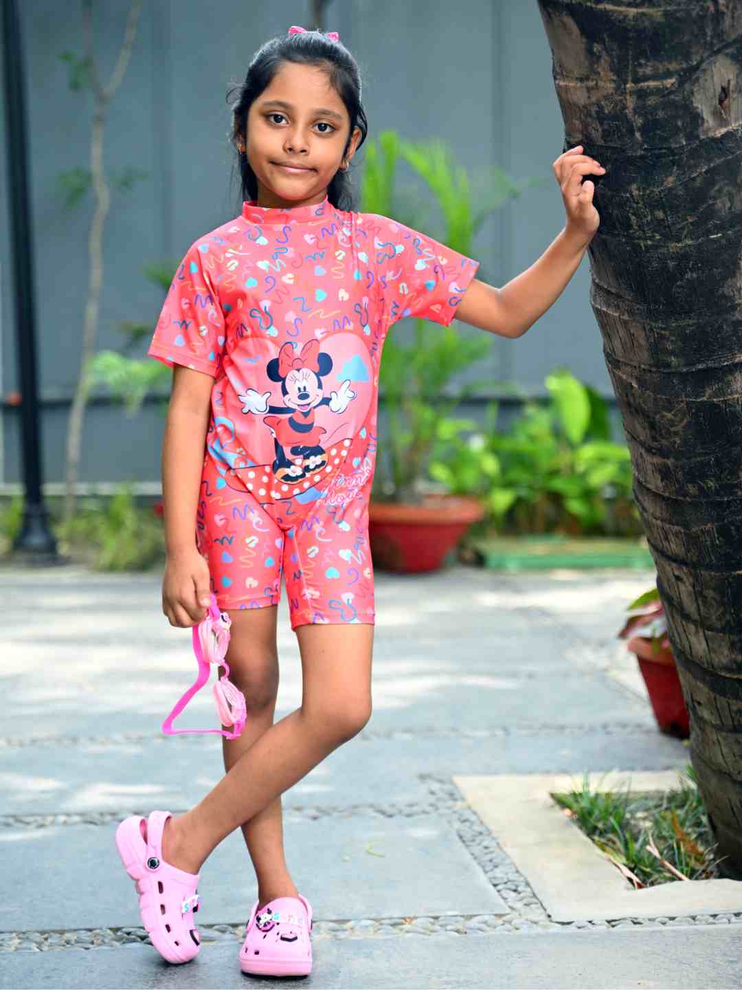 Yellow Bee Girls’ Disney Minnie Mouse Swimsuit with Heart & Polka Dot Print– Pink