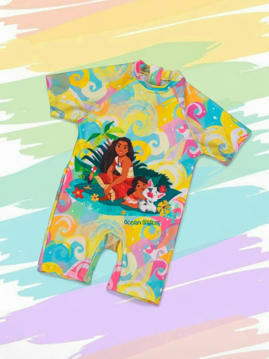 Yellow Bee Girls’ Disney Moana Swimsuit – Colorful One-Piece with Ocean Design
