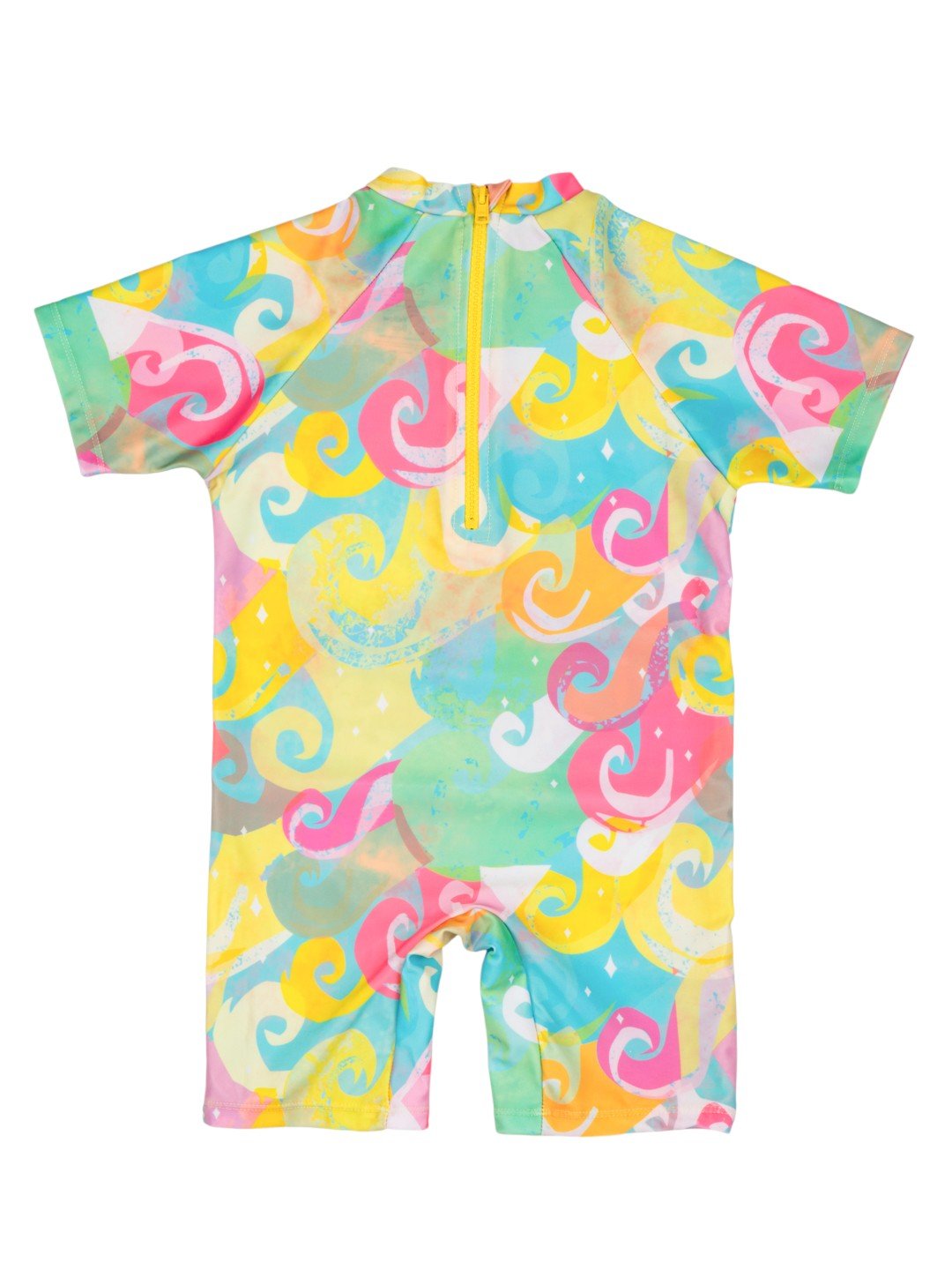 Vibrant Ocean Wave Print:- Inspired by swirling waves, the all-over pastel print brings a splash of tropical joy to poolside play.