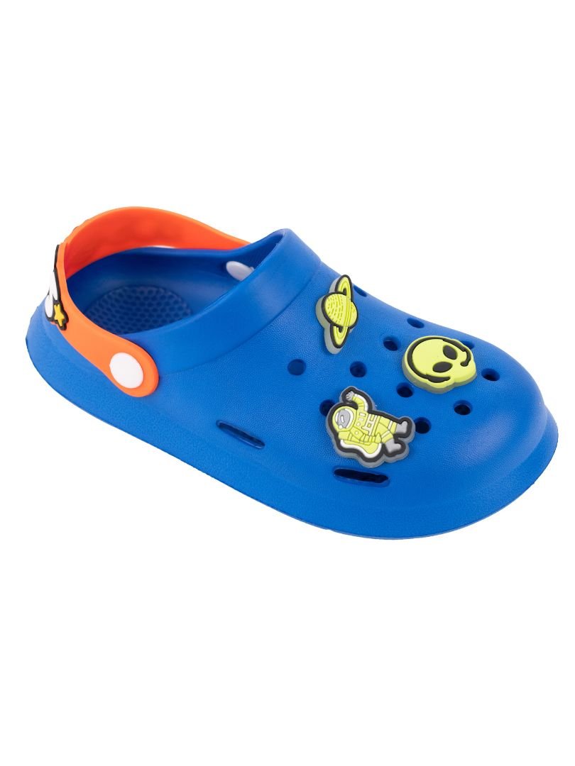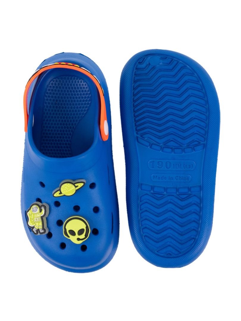 Adorable Blue Glow-in-the-Dark Clogs with 3D Galactic Theme Charms for Boys