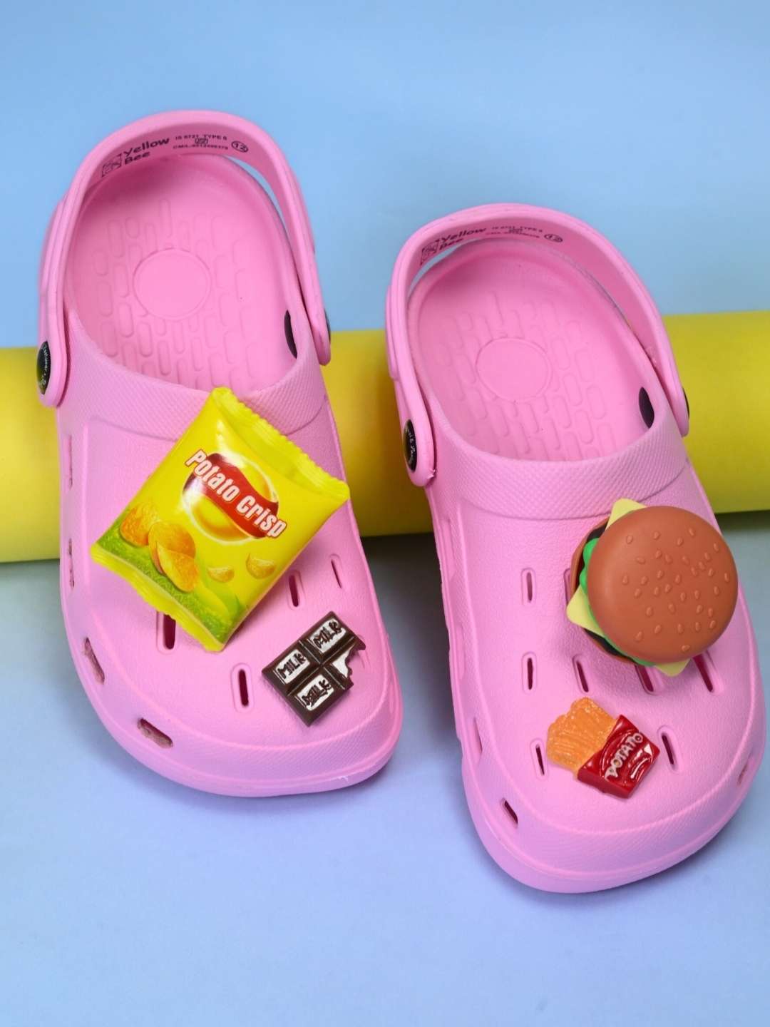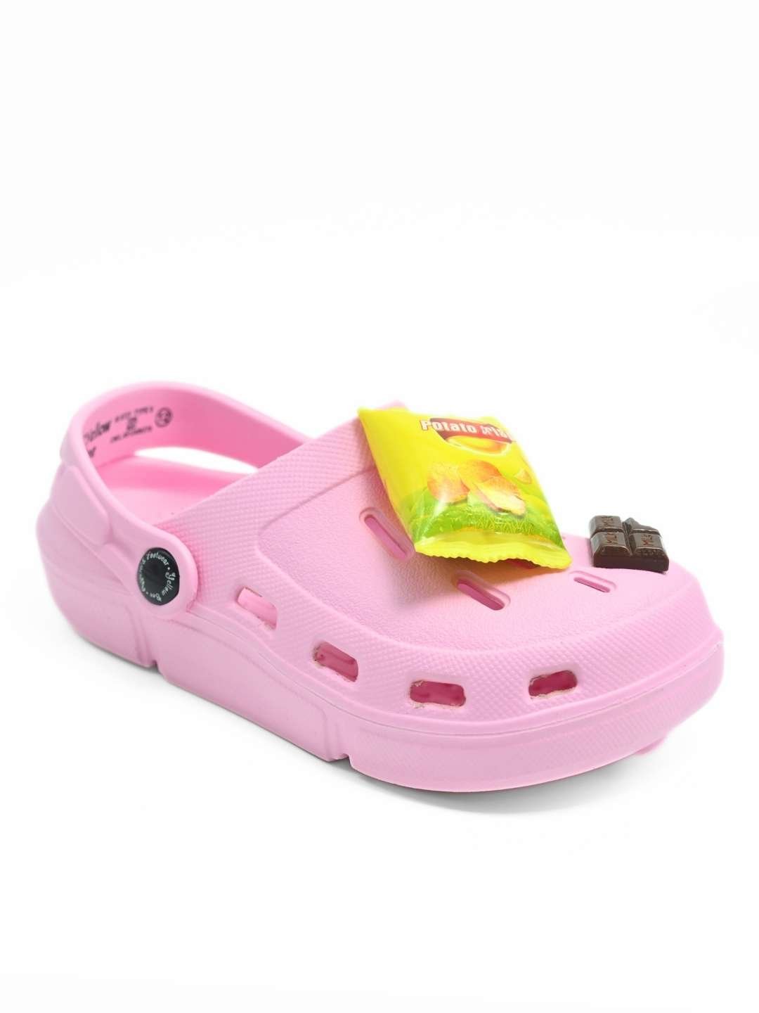 Step into fun and comfort with Yellow Bee’s Charming Pink Snack-Themed Clogs for girls. Bursting with personality, these bright pink clogs feature adorable burger, fries, and chocolate charms that make every step feel like a treat. Made from soft, lightweight EVA, they’re perfect for all-day play while adding a dash of playful style to any outfit.
