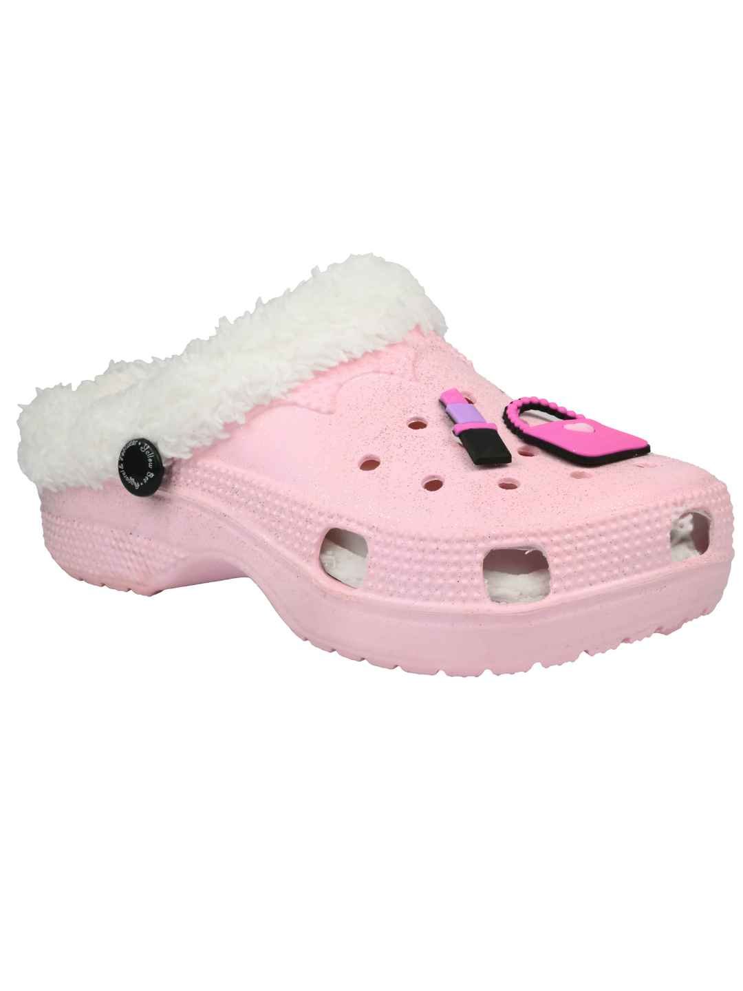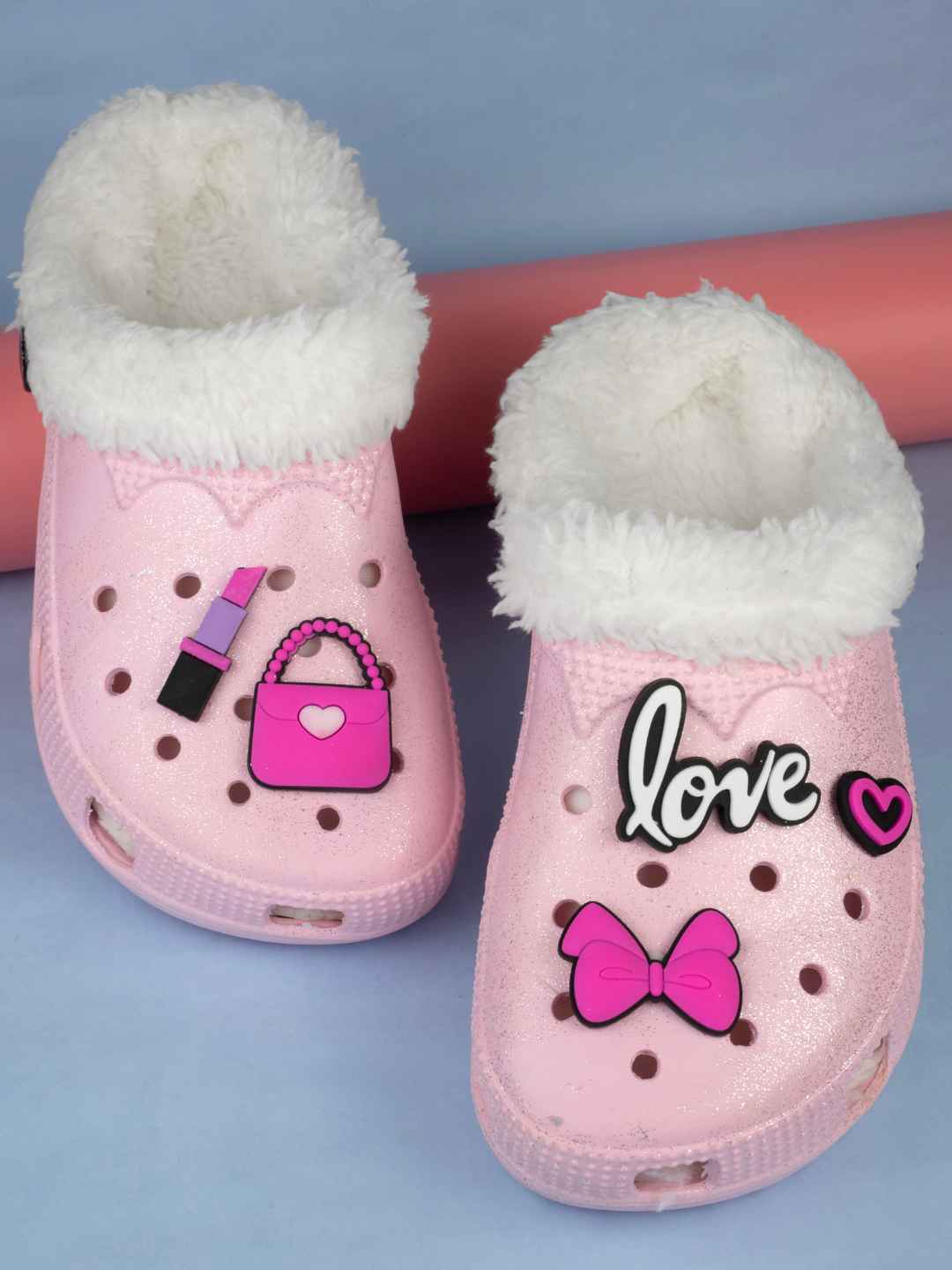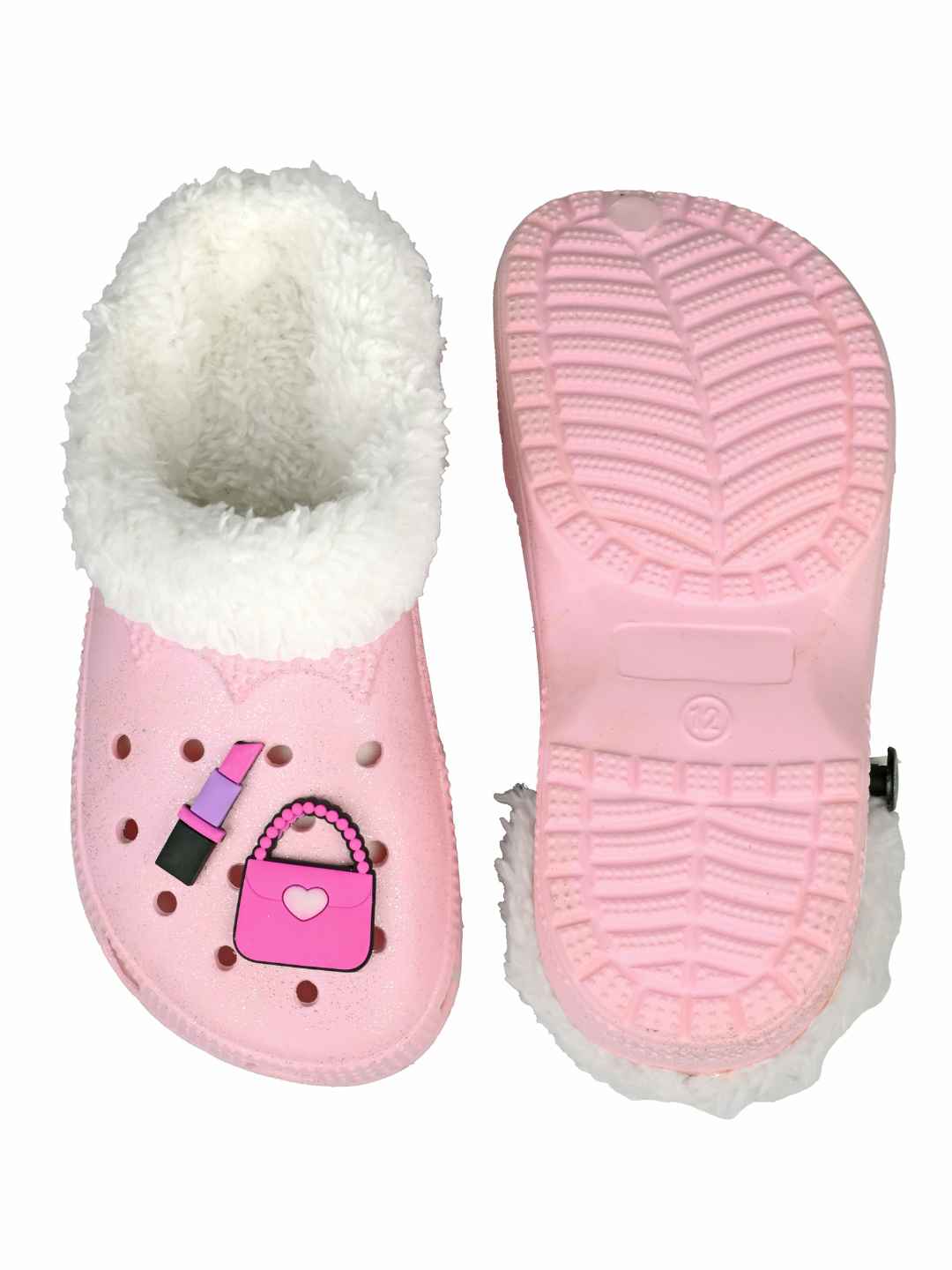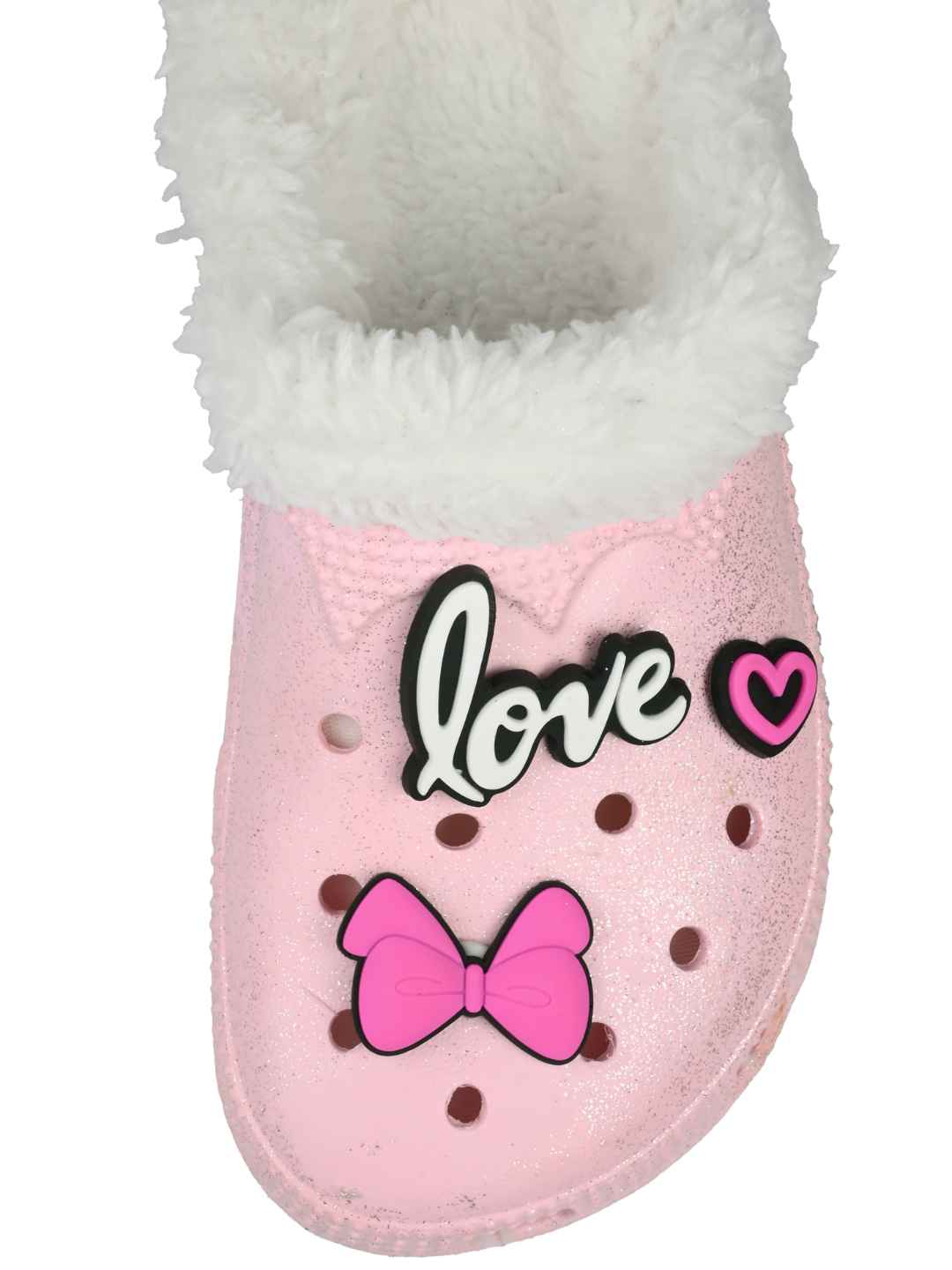 Charming Glitter Fur-Lined Winter Clogs with Love Glam Charms for Girls - Pink
