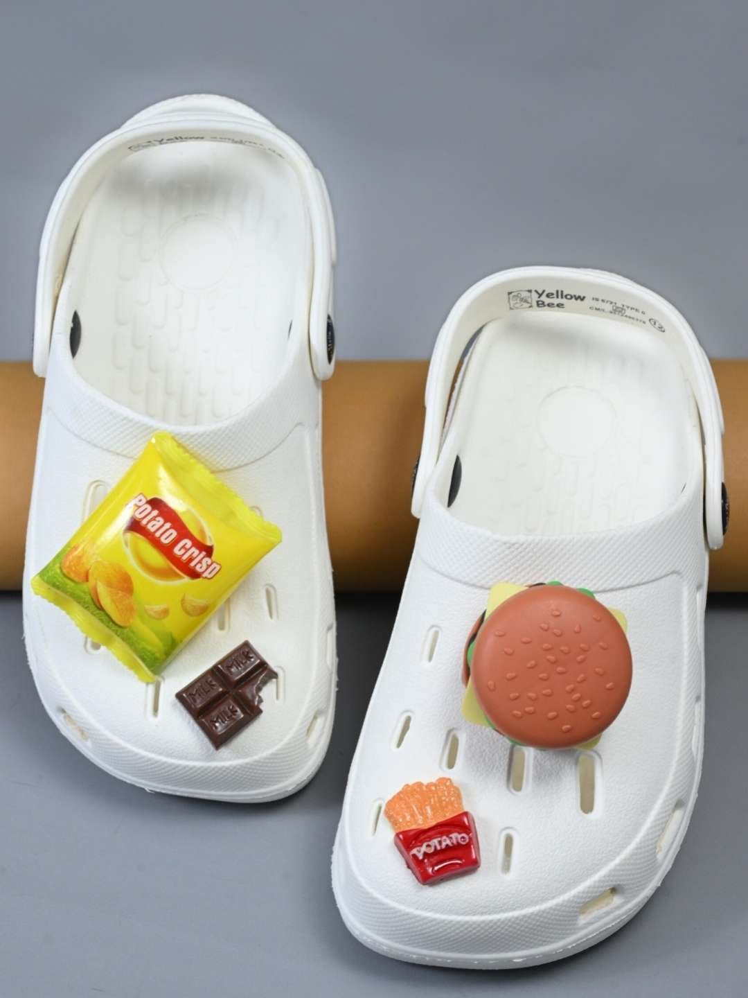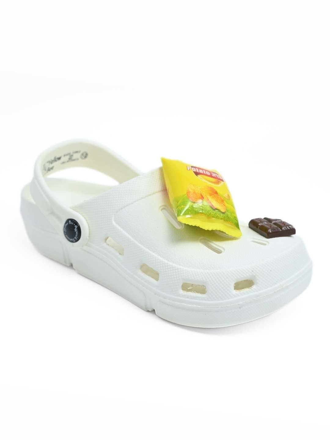 Delightful Clogs with Burger, Fries & Chocolate Charm for Boys- White