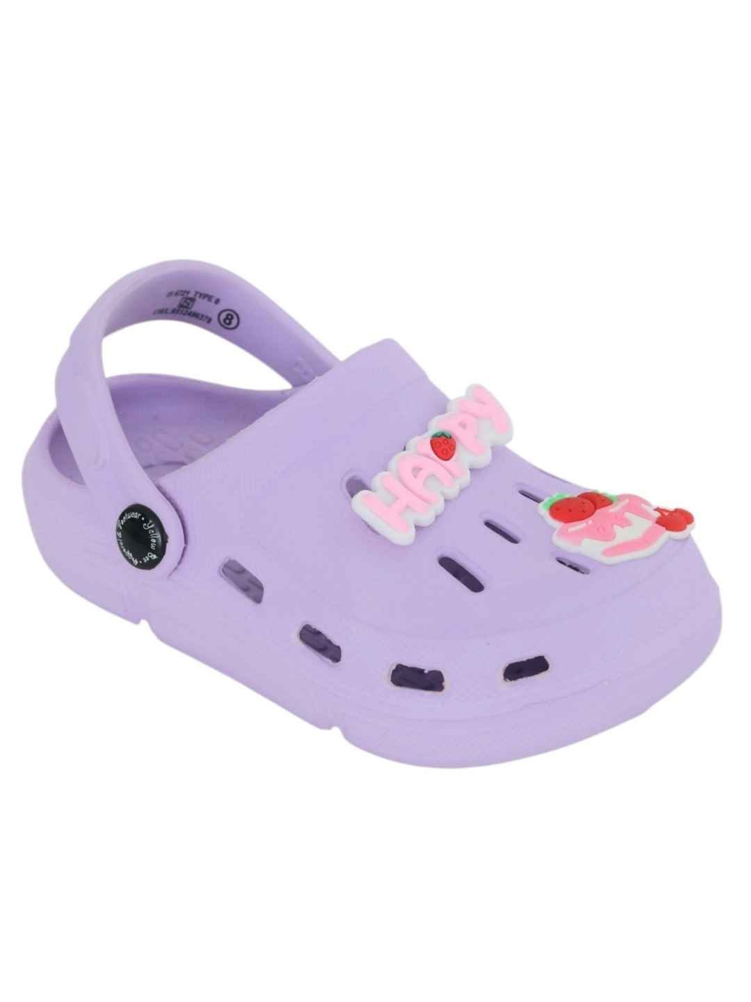 Delightful Purple Clogs with “Happy” & Cherry Cake Charms for Girls