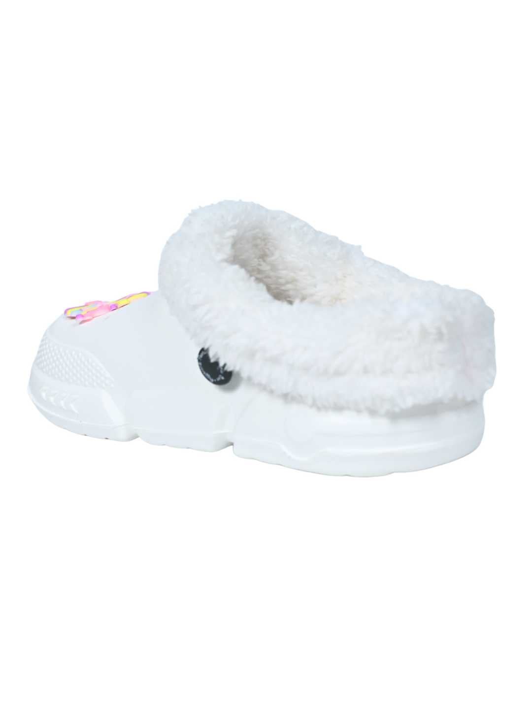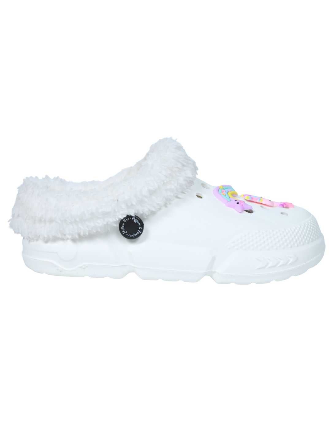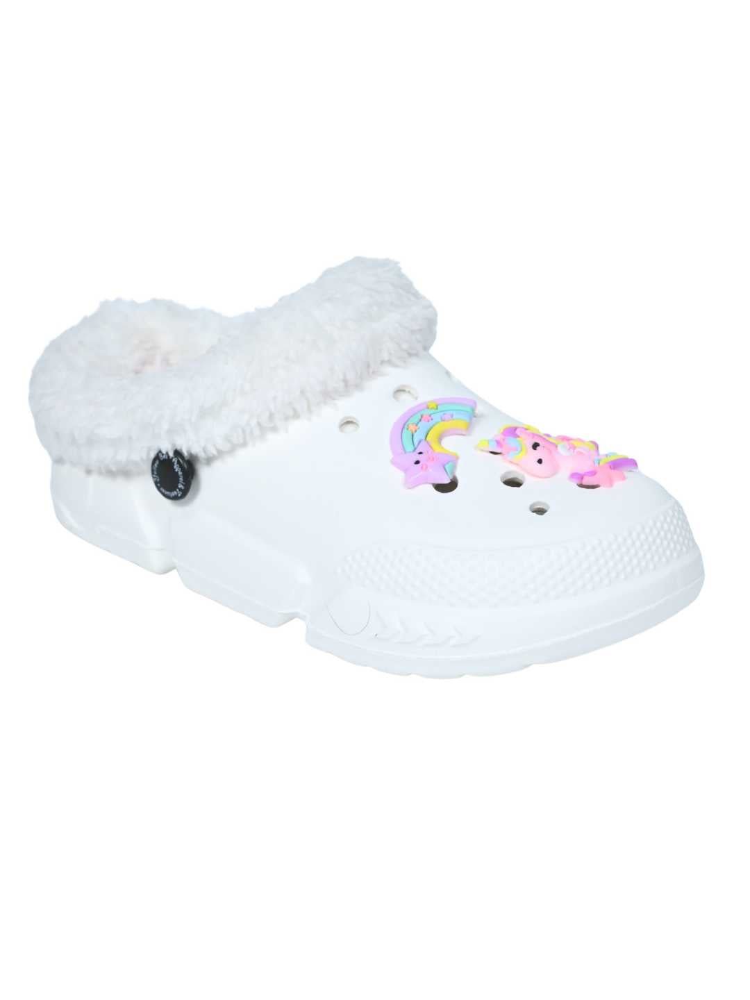 Dreamy Winter Plush Lined Clogs with Cute Unicorn & Rainbow Charms for Girls - White