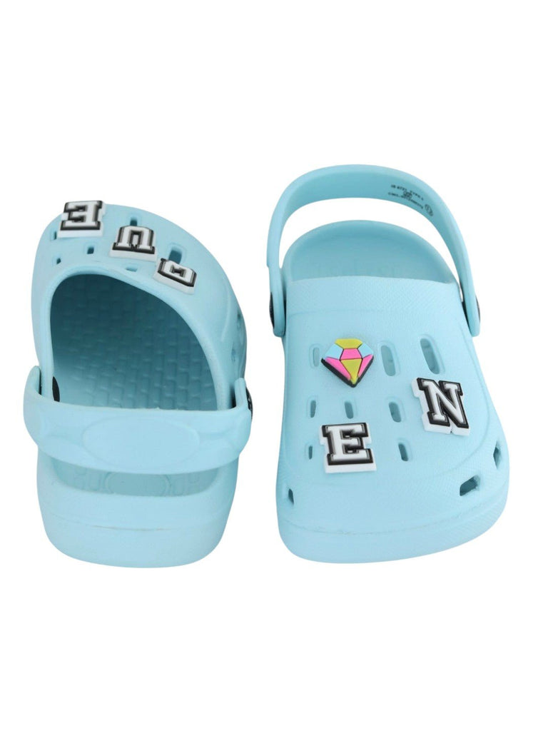 Elegant Blue Clogs with “QUEEN” Letter & Gem Charms for Girls