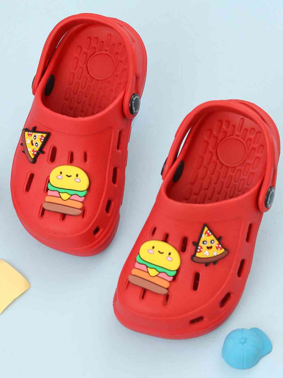 Fun-Loving Red Clogs with Cheese burger & Pizza Slice Charms for Boys