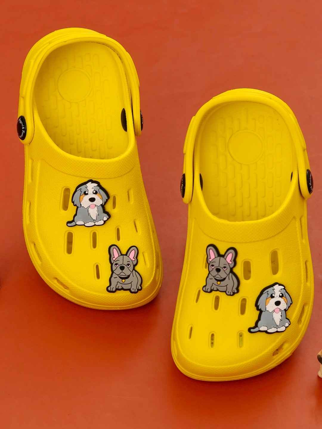 Fun-loving Yellow Clogs with Cute Puppy Charms for Boys