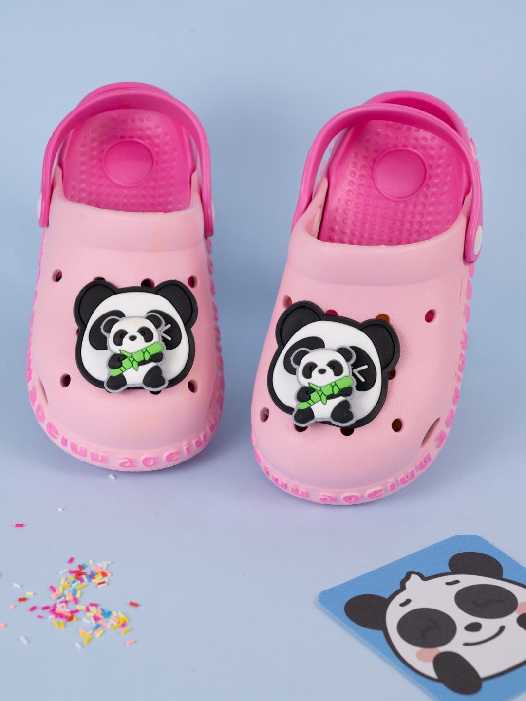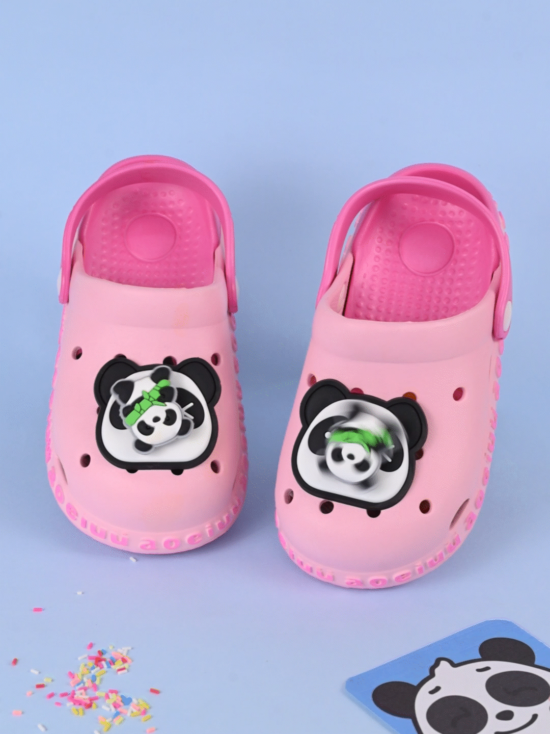 Fun Pink Clogs with Rotating Panda & Bamboo Charms for Girls