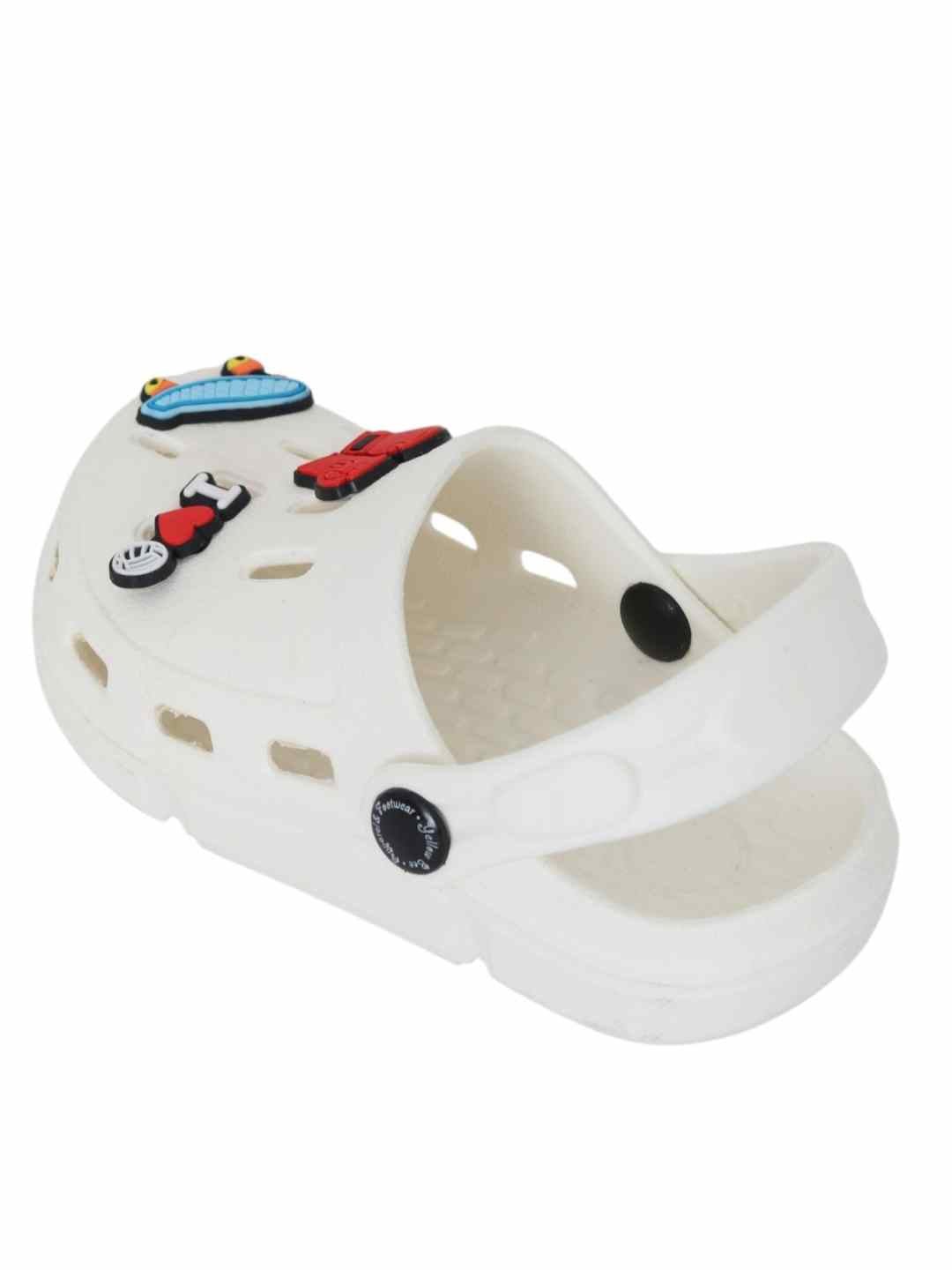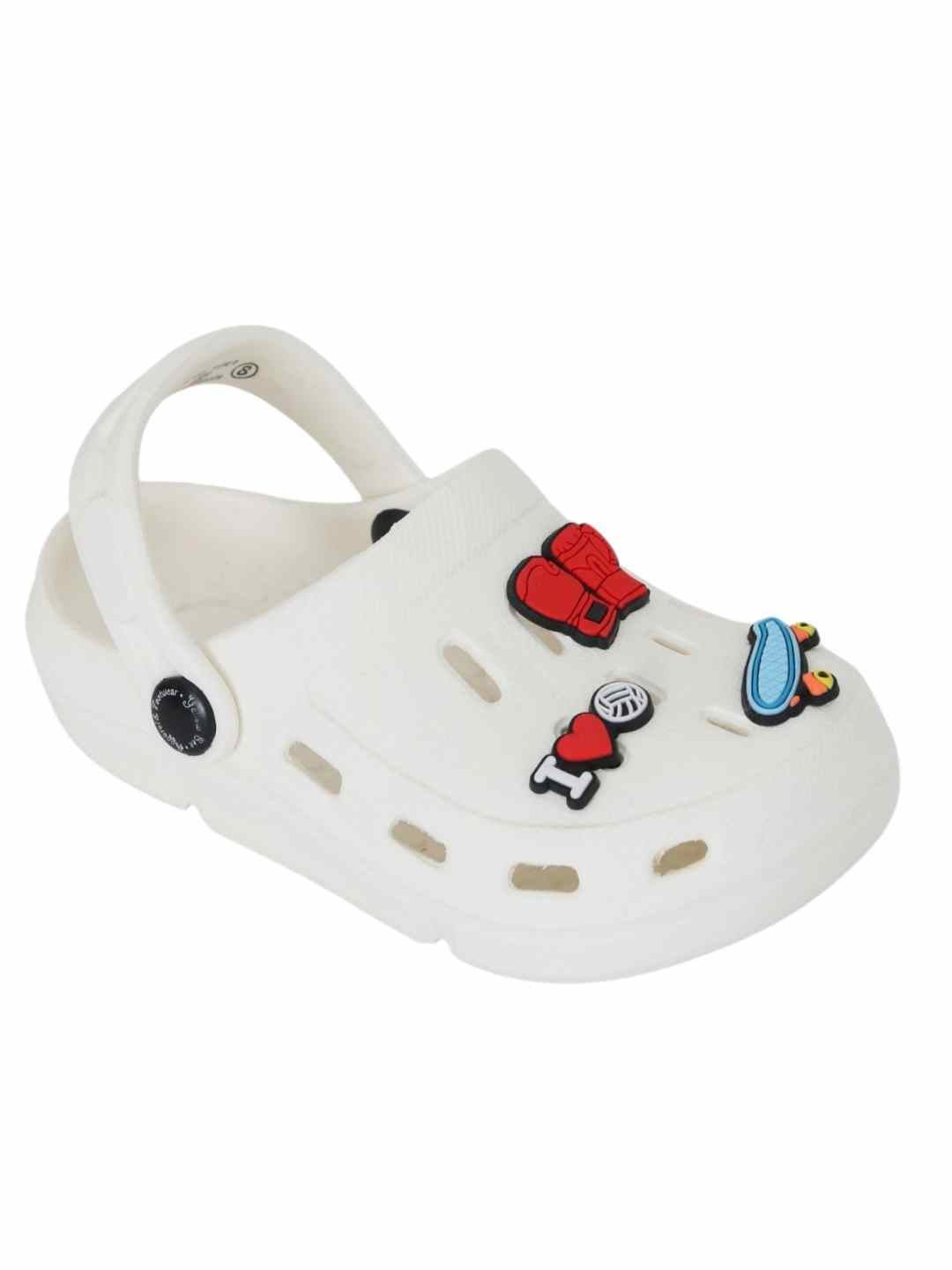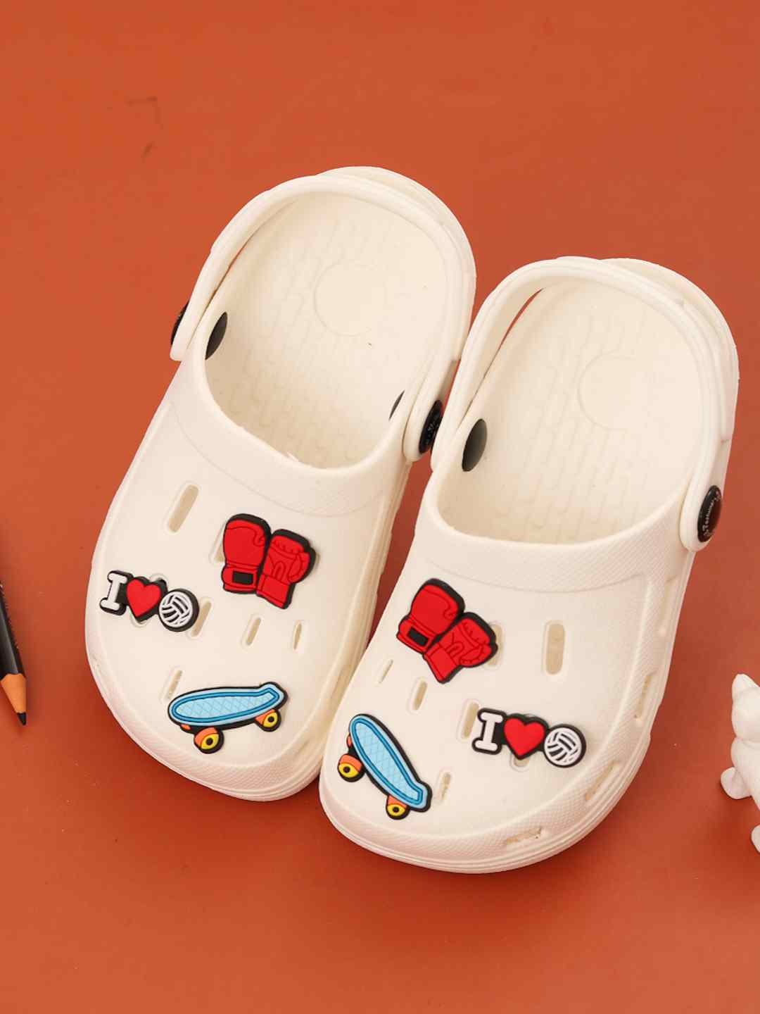 Fun-Themed White Clogs with Boxing, Skateboard & Love Charm for Boys