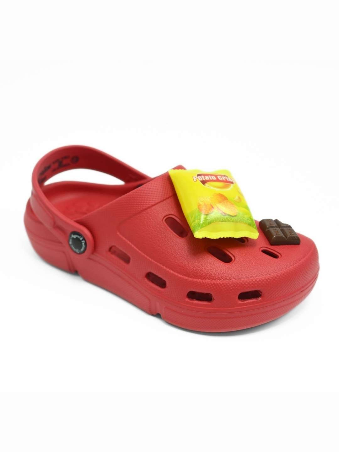 Playful Clogs with Burger, Fries & Chocolate Charms for Boys- Red