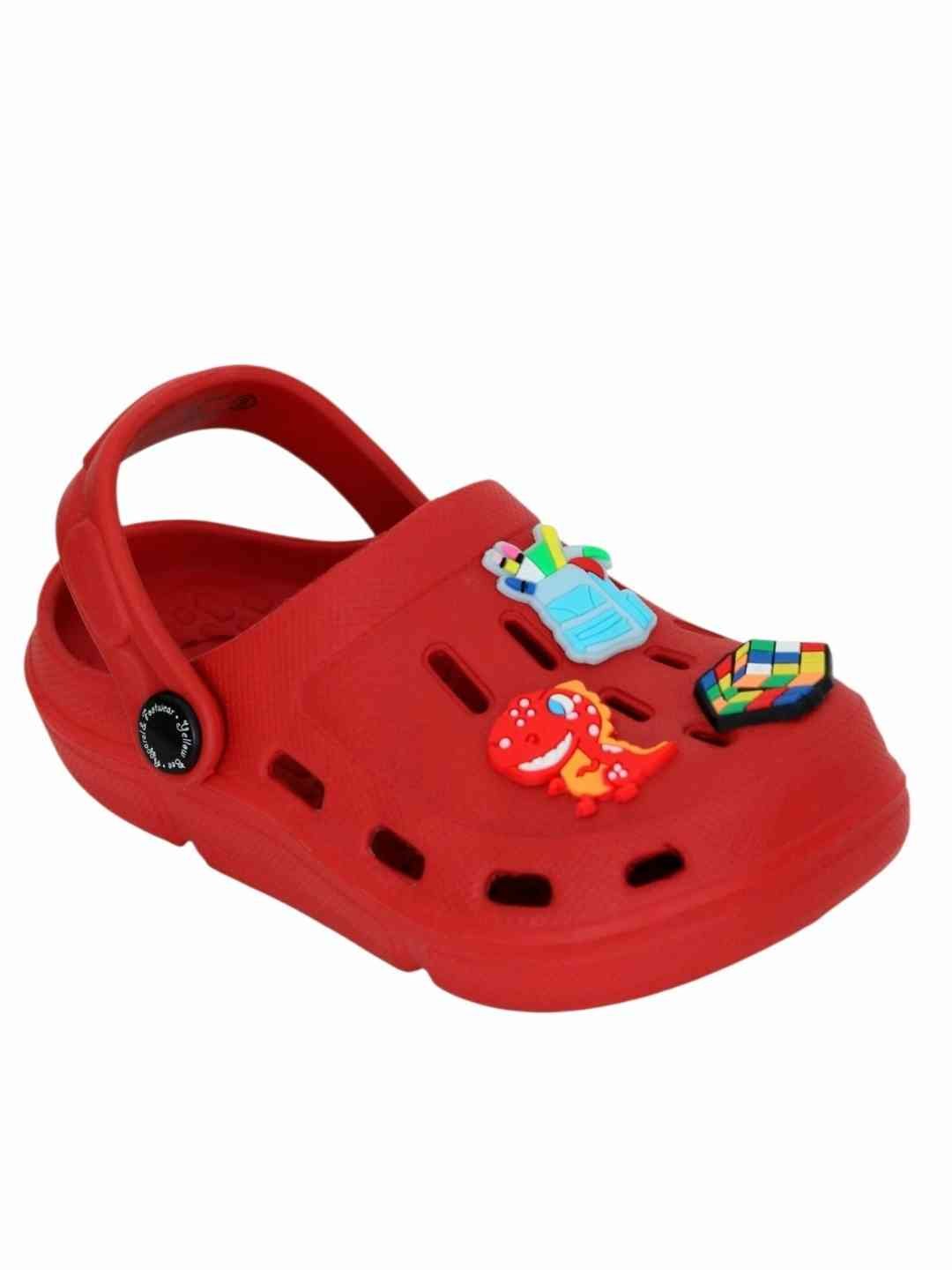 Make playtime brighter and bolder with the Yellow Bee Boys’ Playful Red Clogs, where charm meets comfort. These fun-filled clogs are loaded with adventurous spirit, featuring backpack-themed charms, adorable red dinosaurs, and multicolor puzzle cube designs that encourage imagination with every step. Built with lightweight EVA and a secure sling back, these clogs offer the perfect blend of fun and function for active little feet.