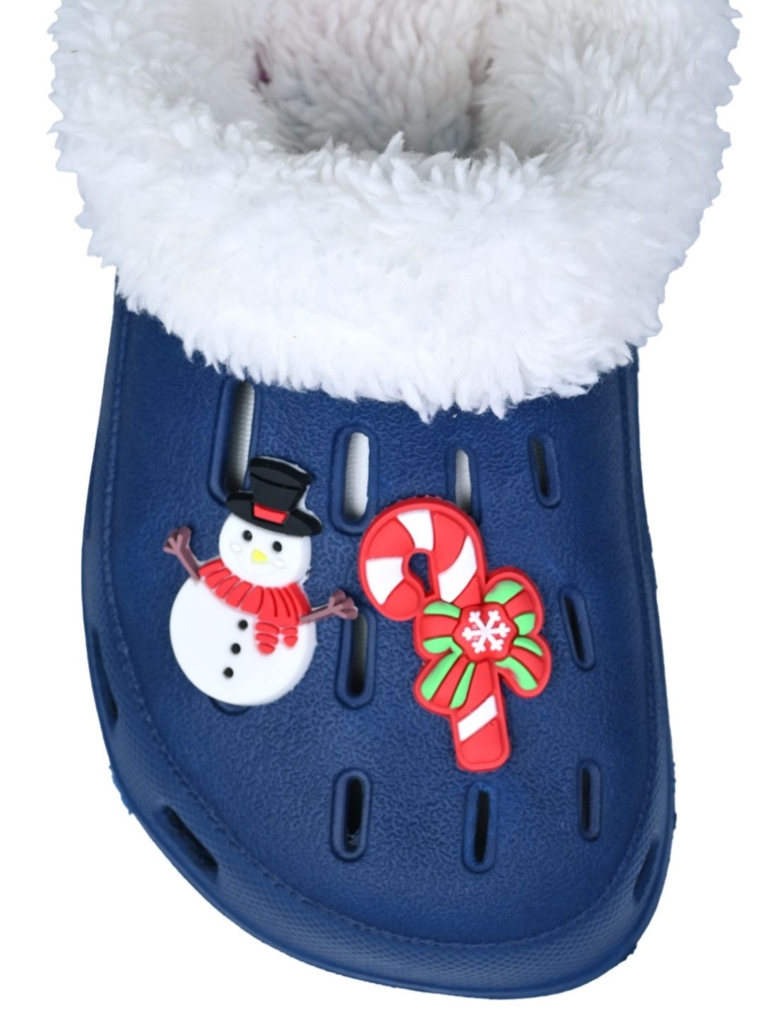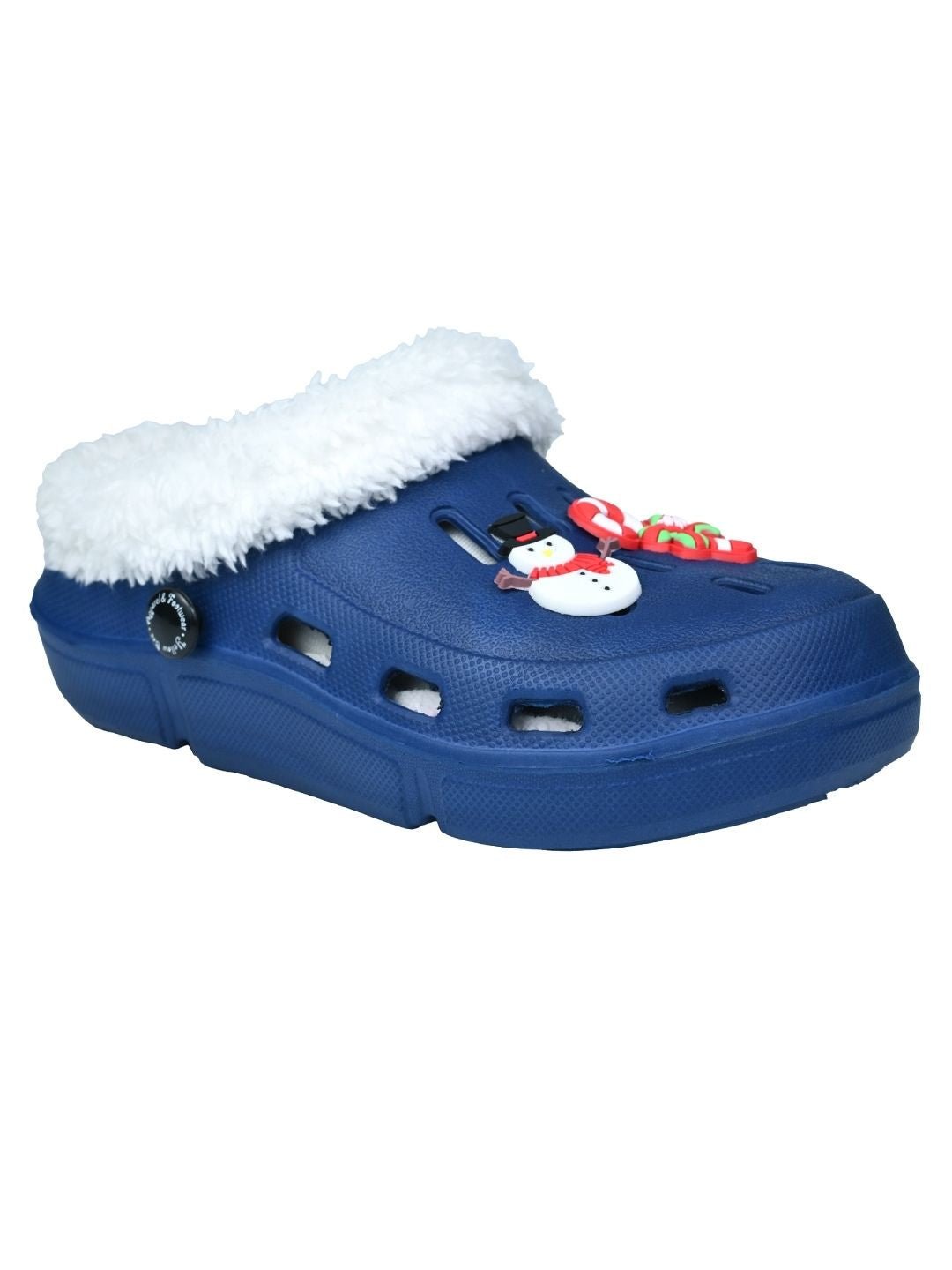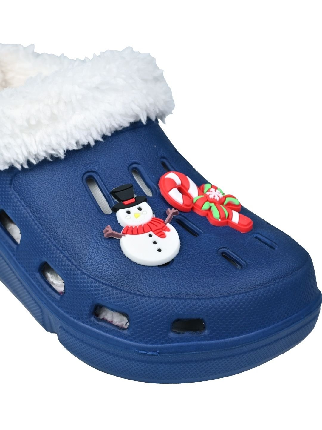 Soft Winter Fur Lined Clogs with Santa, Snowman & Candy Charms for Boys- Navy Blue