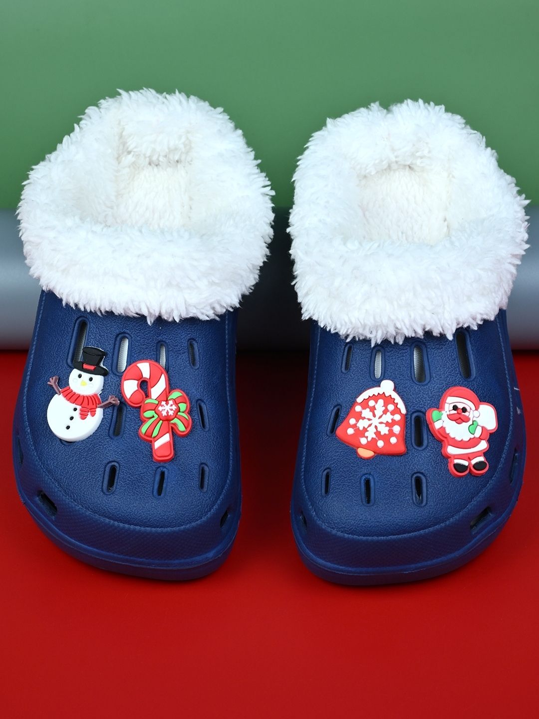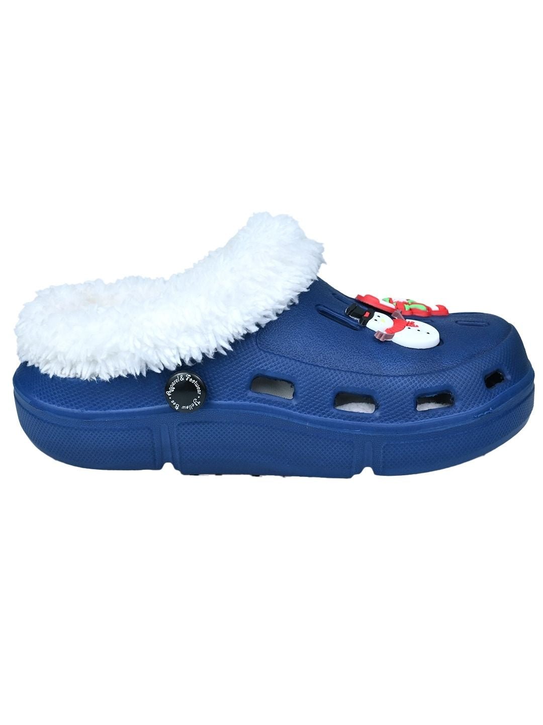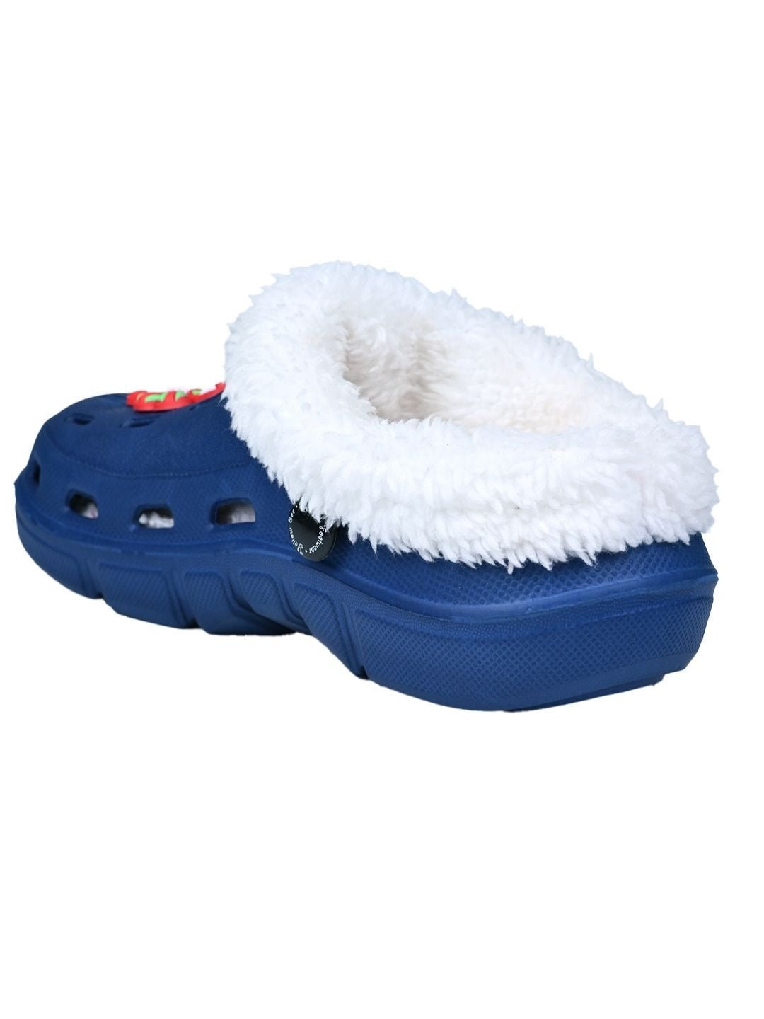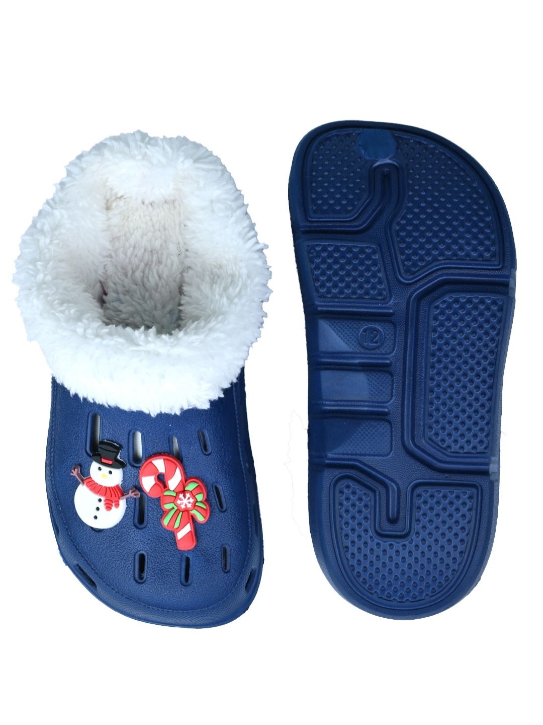Soft Winter Fur Lined Clogs with Santa, Snowman & Candy Charms for Boys- Navy Blue