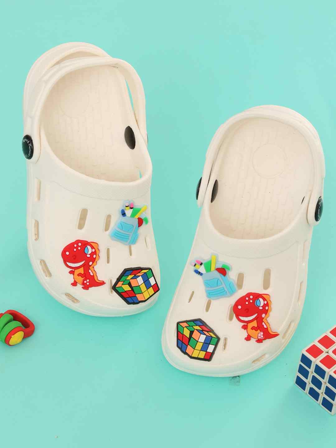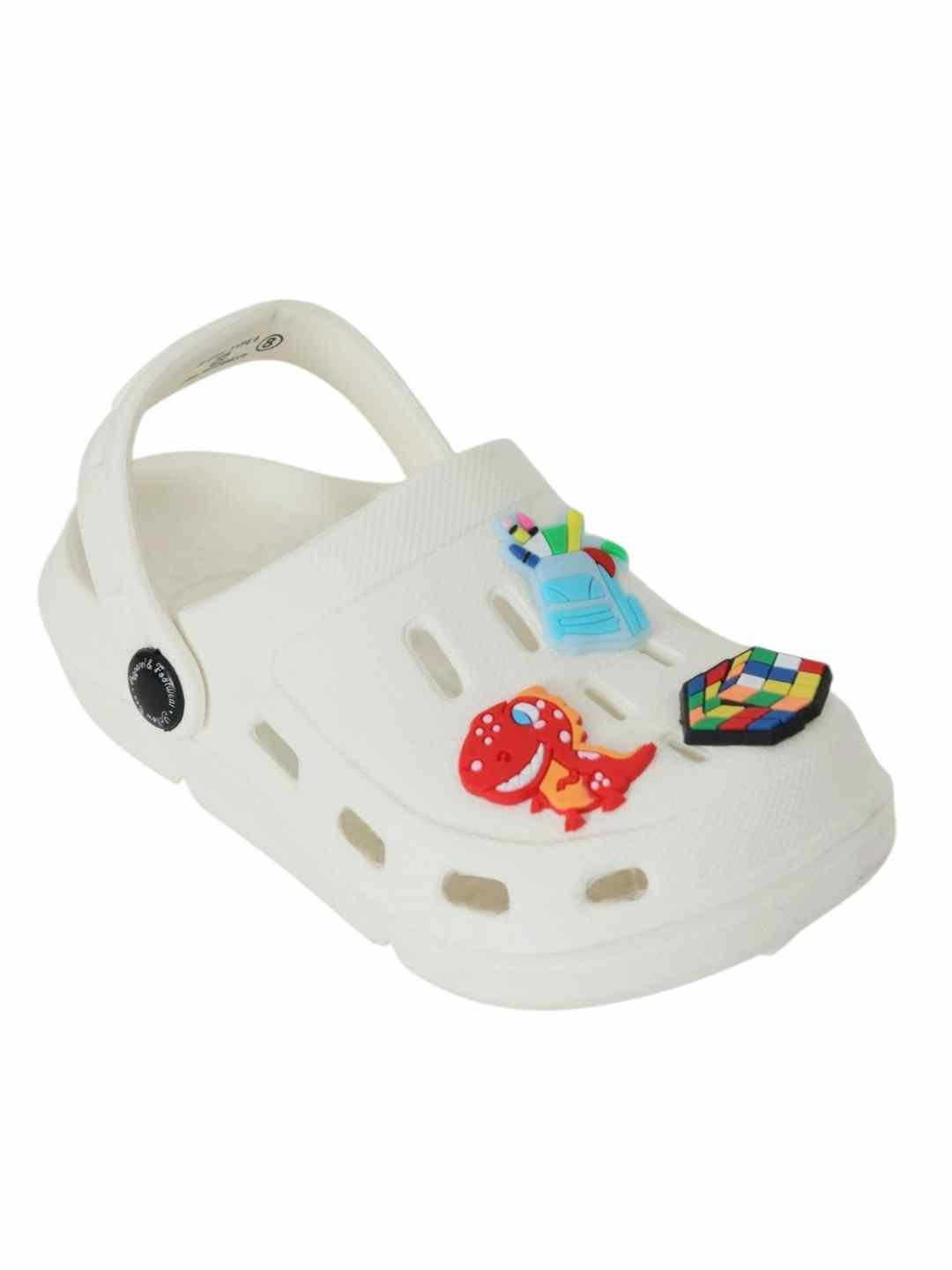 Stylish White Clogs with Backpack, Dino & Cube Charms for Boys