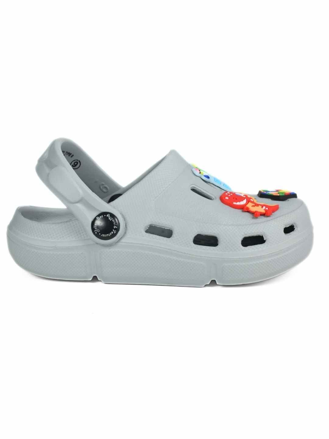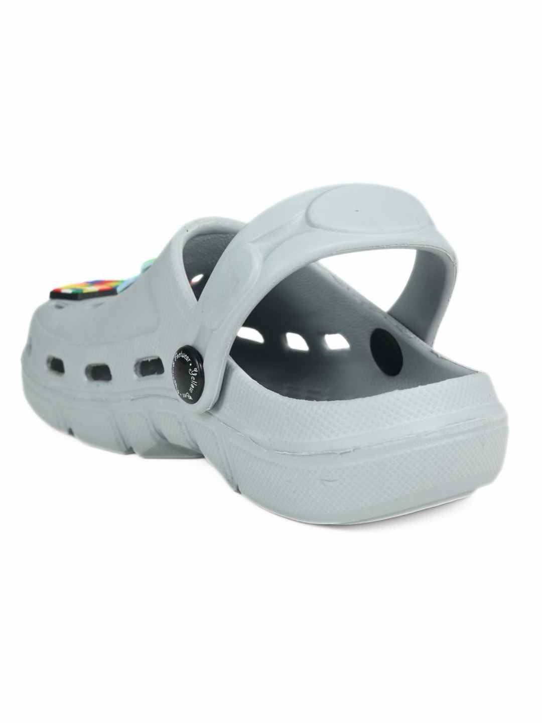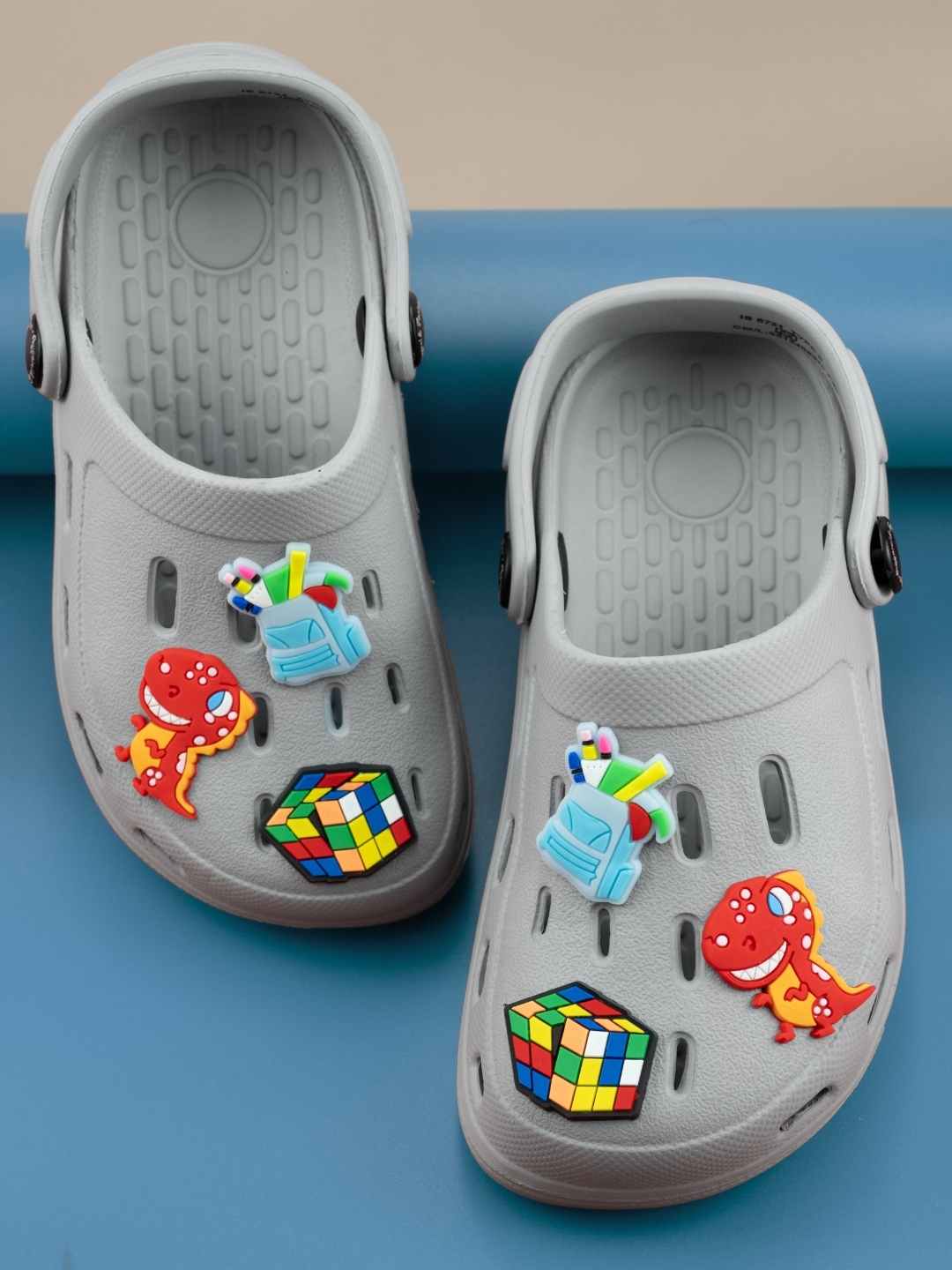 Trendy Grey Clogs with Backpack, Dino & Cube Charms for Boys