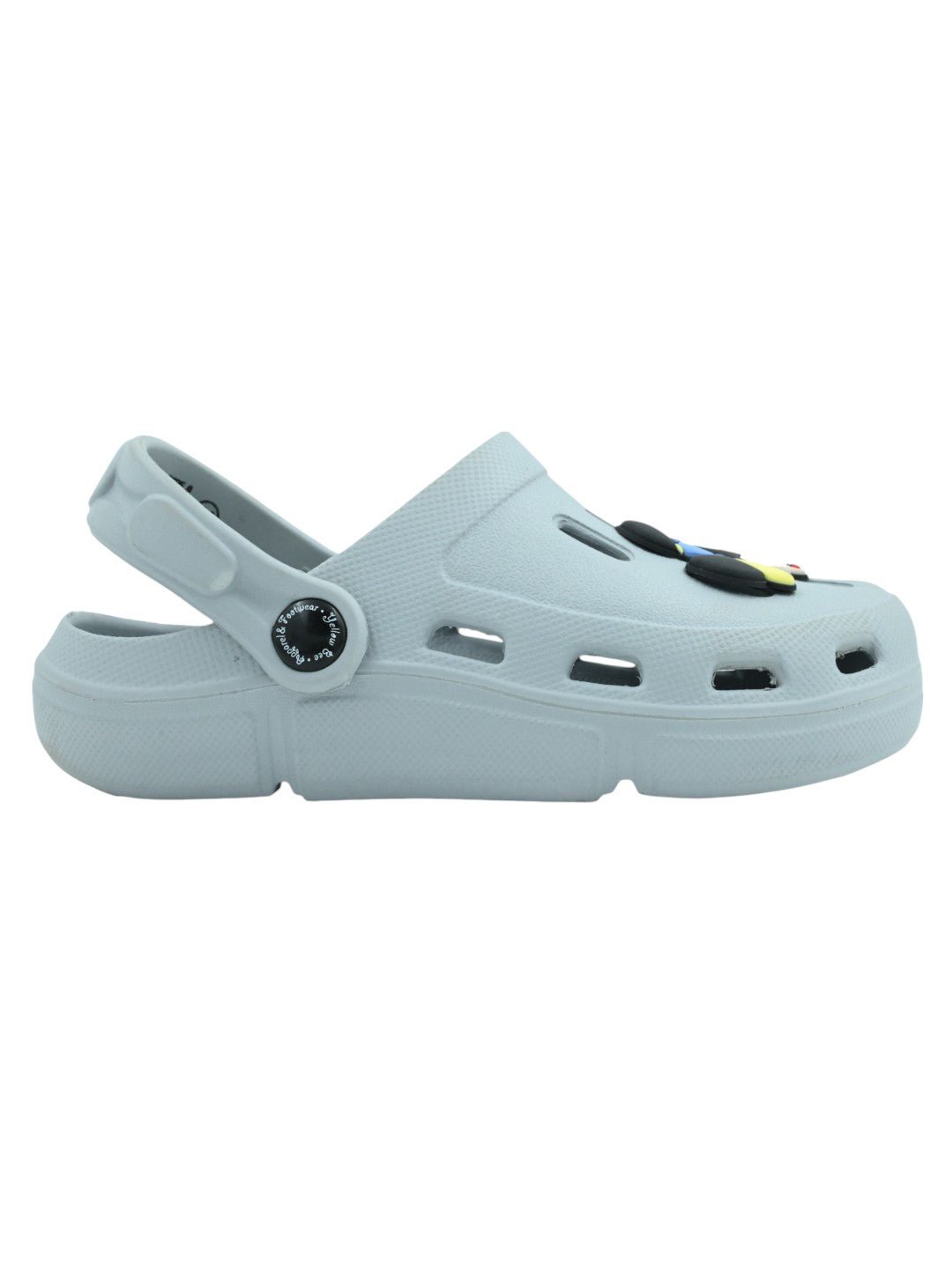 Add a pop of playful Disney charm to your little one’s outfit with the Yellow Bee Boys' Mickey Mouse Clogs in Grey. These slip-on clogs feature a bold 3D Mickey charm that adds fun to every step. Designed for all-day comfort, they’re made from lightweight EVA material and built to support active little feet—whether it’s playtime at home, a stroll outdoors, or even water-friendly fun!