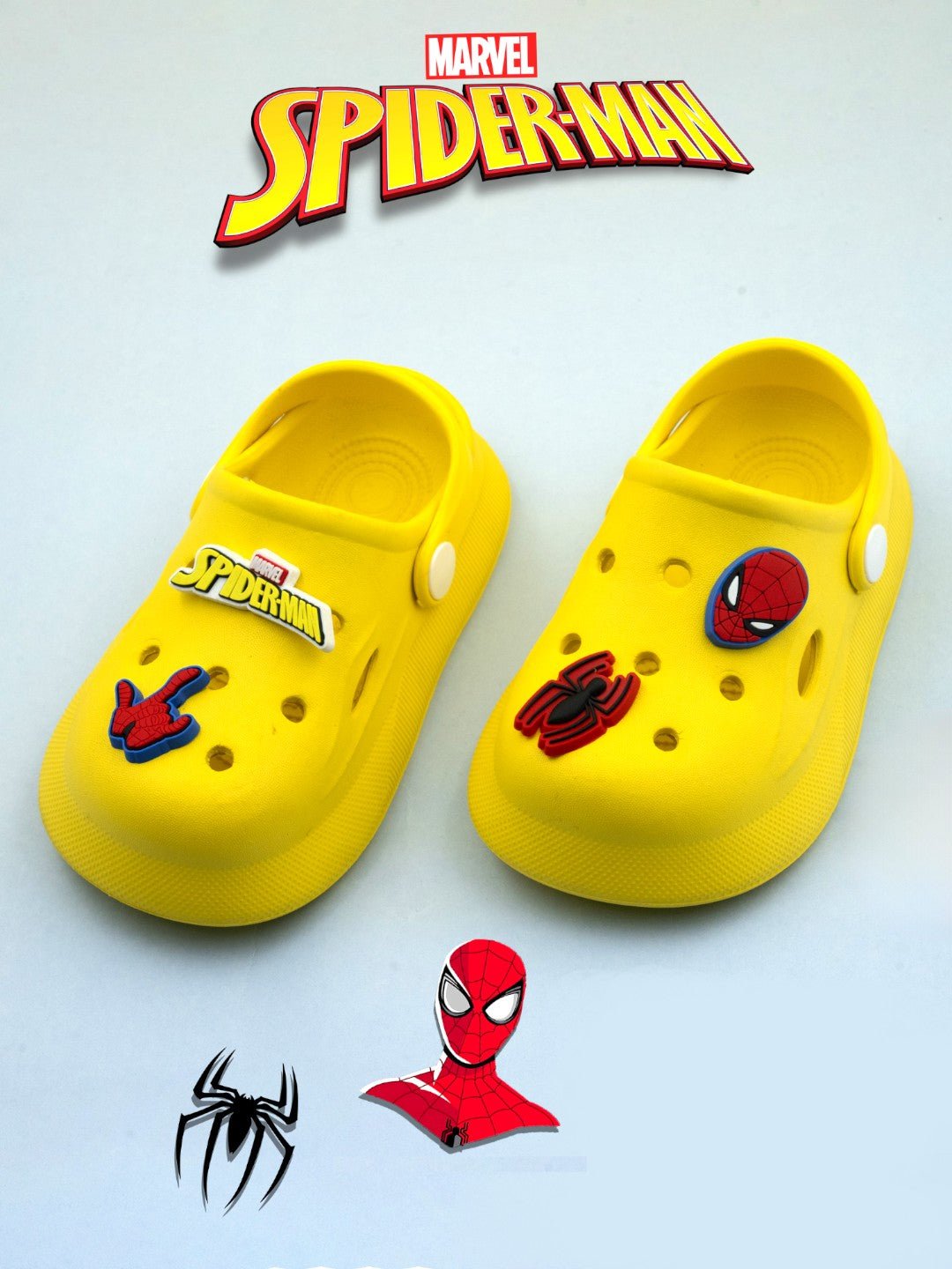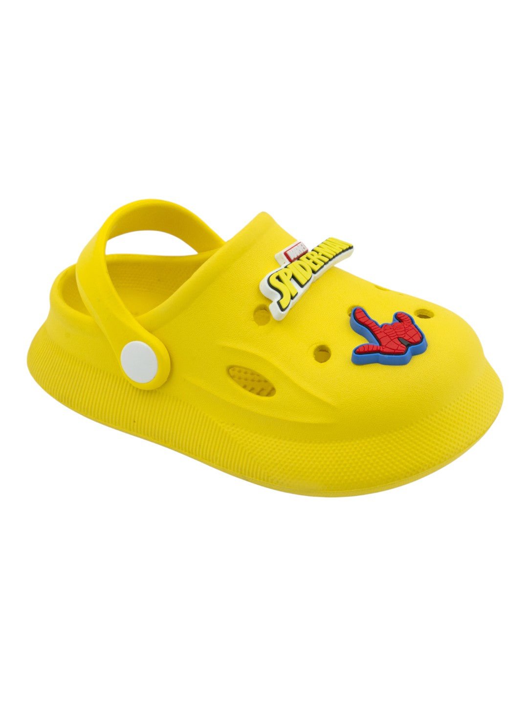 Yellow Bee Boys’ Marvel Spider-Man Clogs with 3D Face, Web Gesture & Logo Charms – Yellow