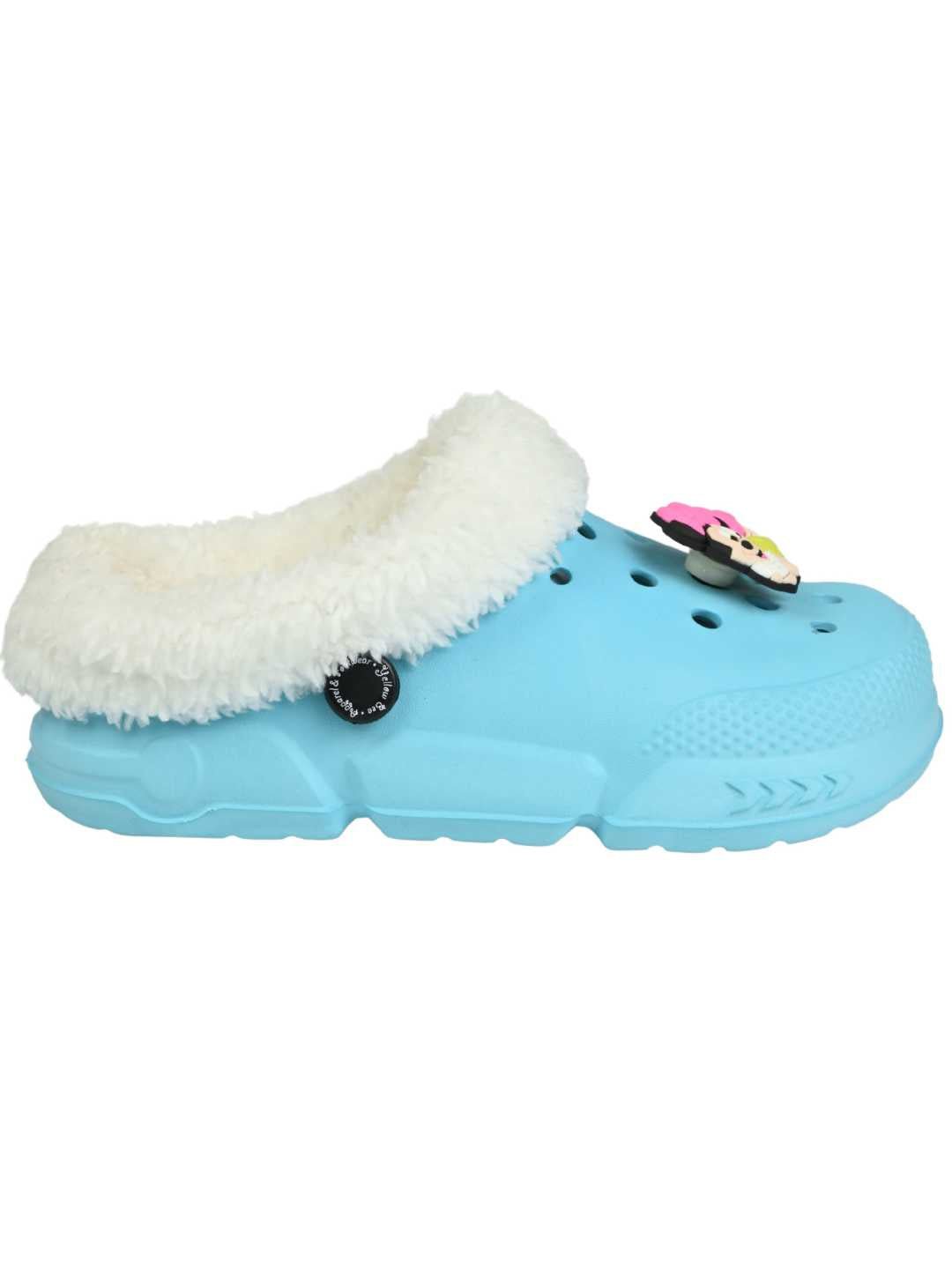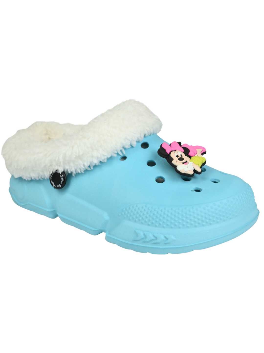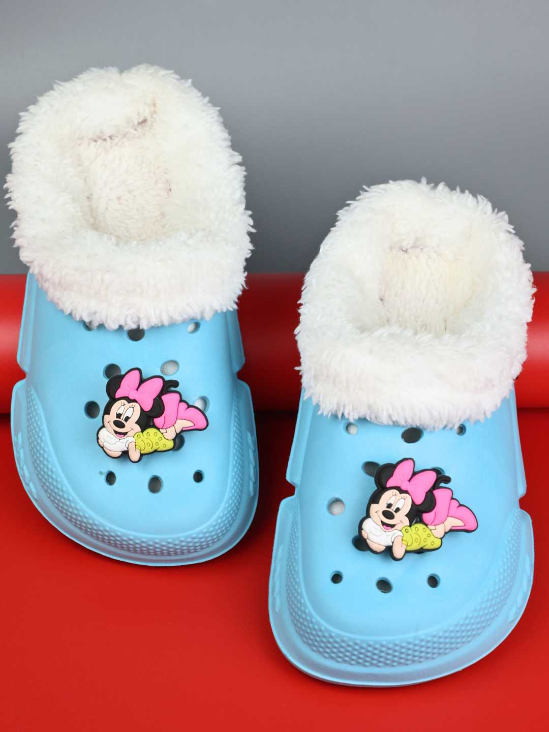 Yellow Bee Girls’ Disney Minnie Mouse Fur Lined Design Winter Clogs With Rotating Charm - Blue