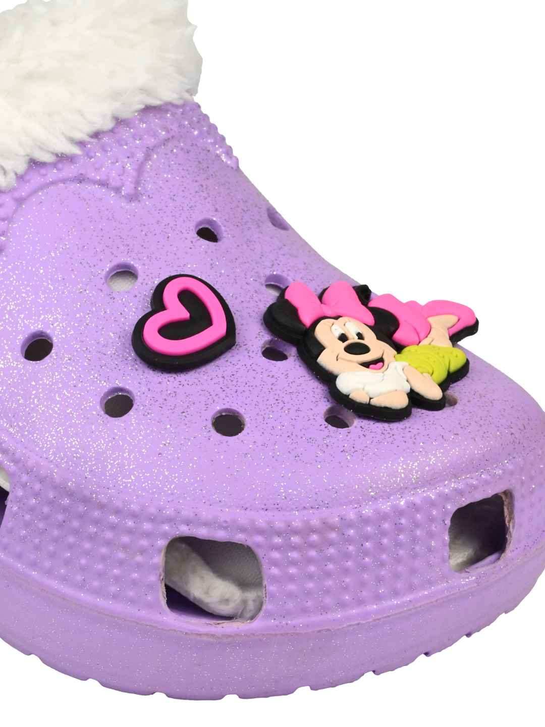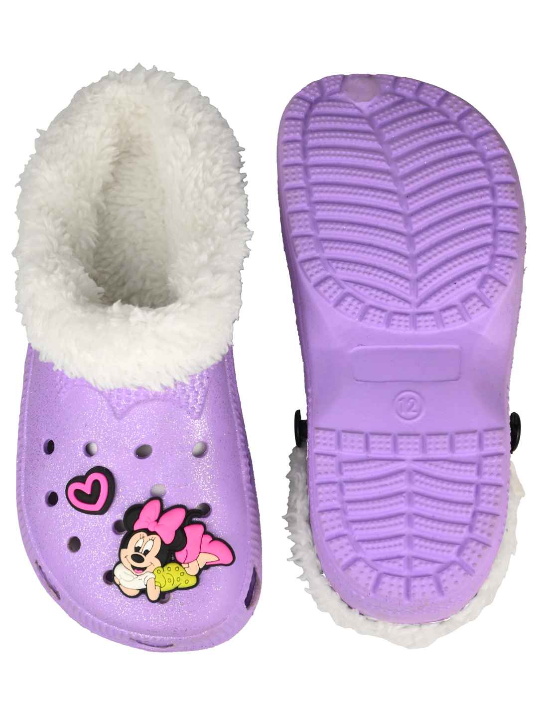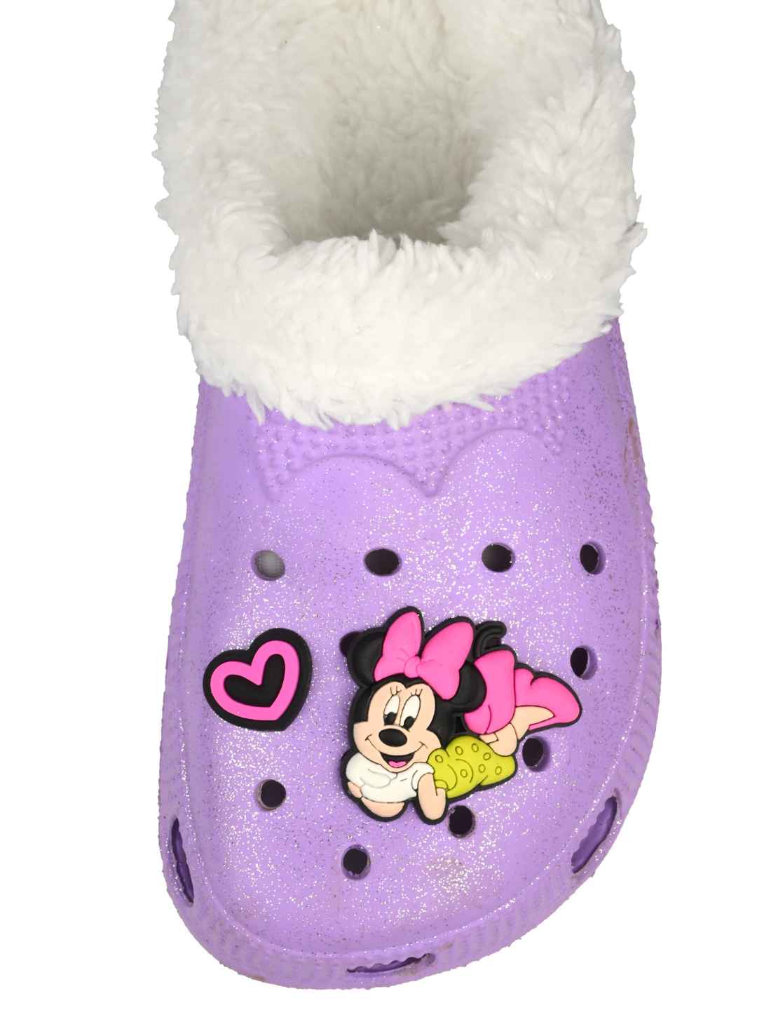 Yellow Bee Girls Disney Minnie Mouse Glitter Fur-Lined Winter Clogs - Purple