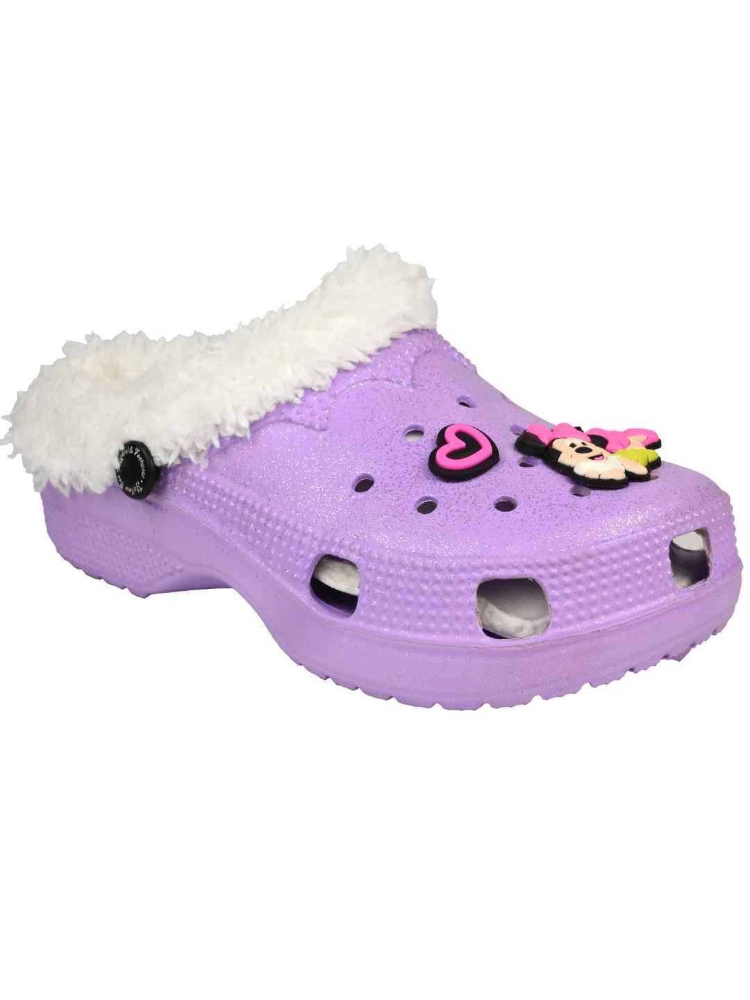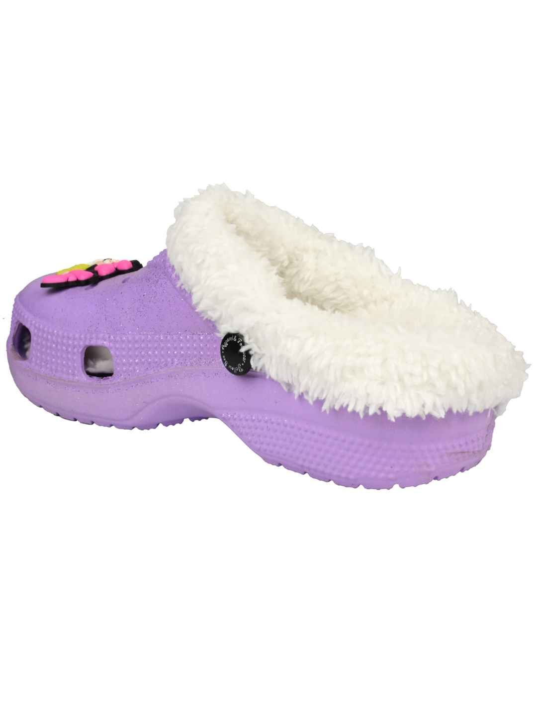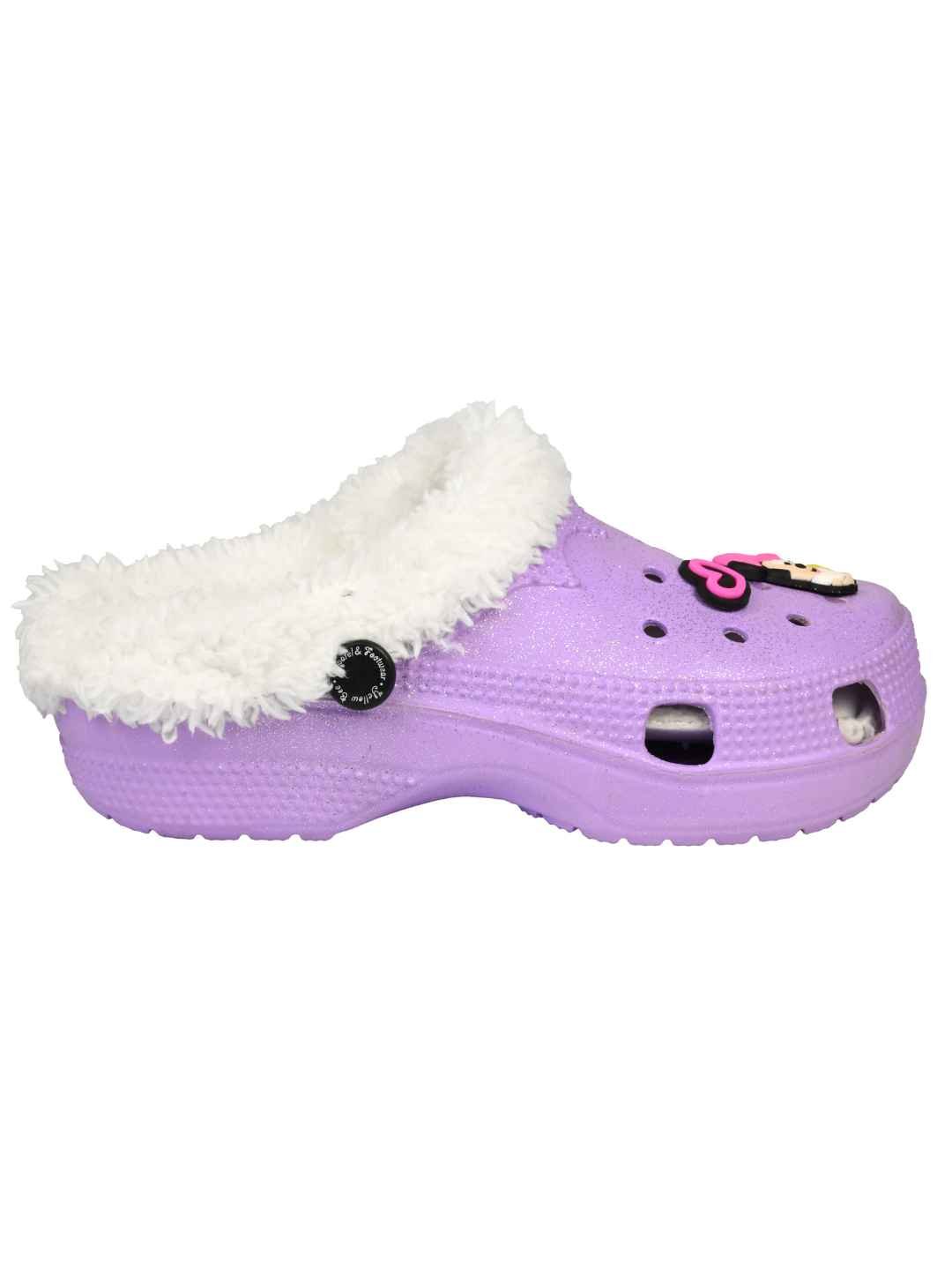 Yellow Bee Girls Disney Minnie Mouse Glitter Fur-Lined Winter Clogs - Purple