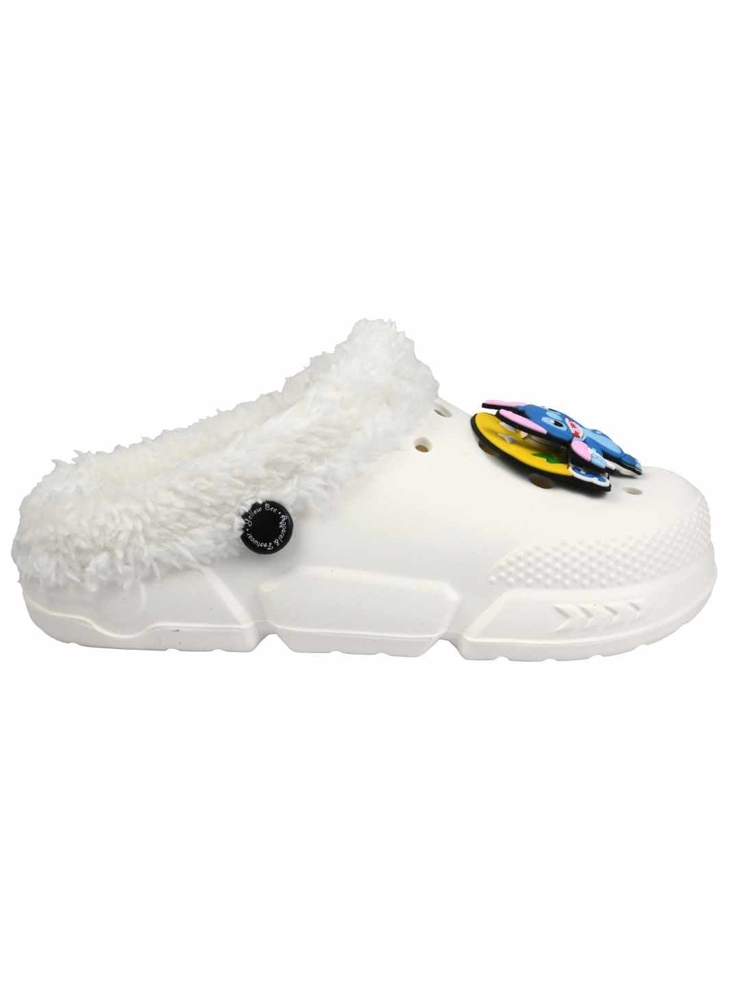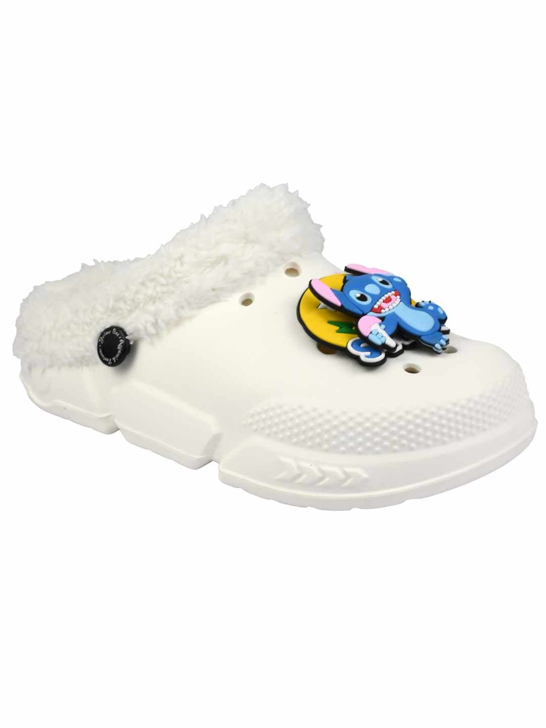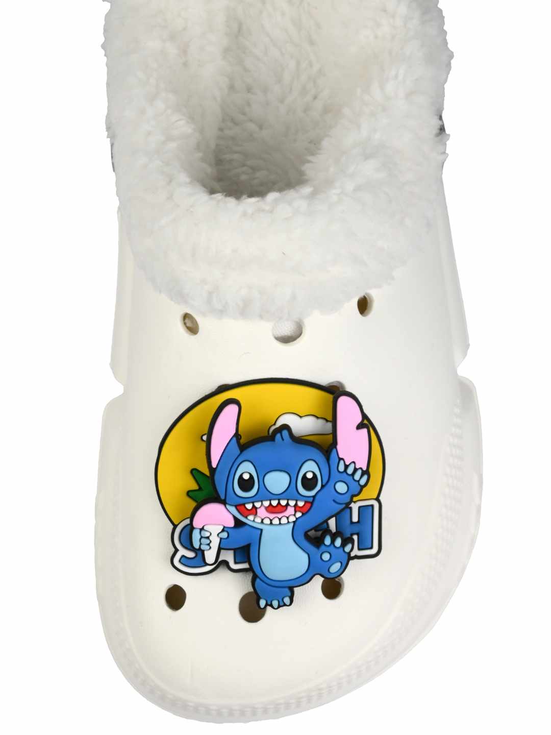 Yellow Bee Girl's Disney Stitch Fur Lined Winter Clogs Rotating Charm - White