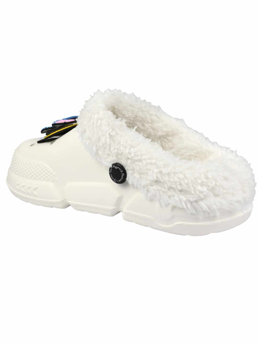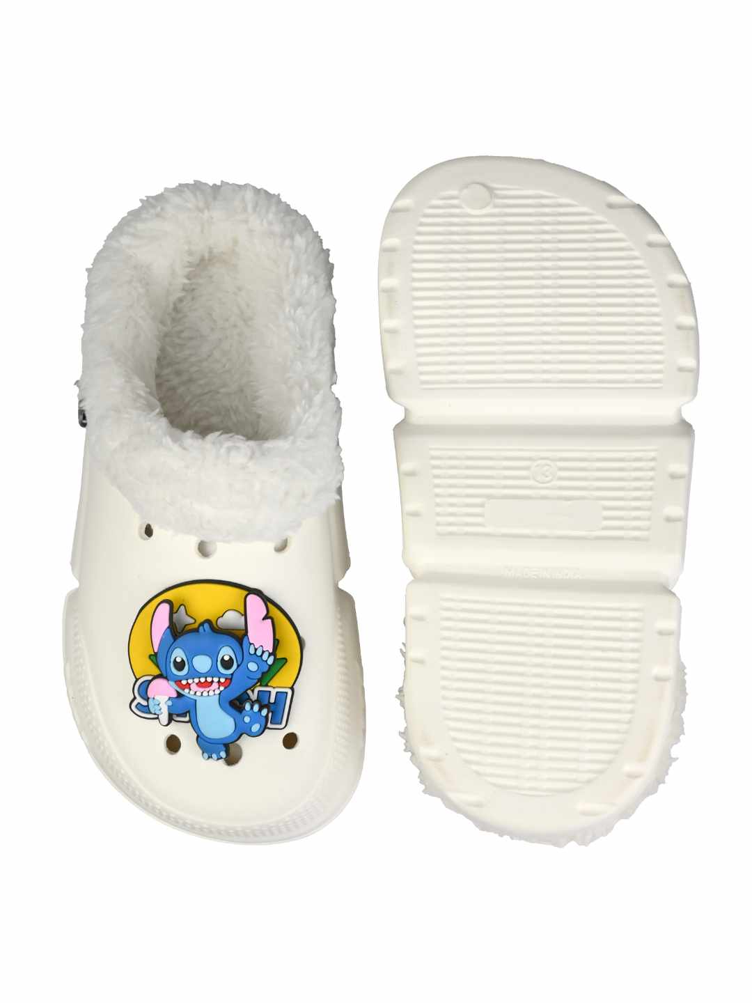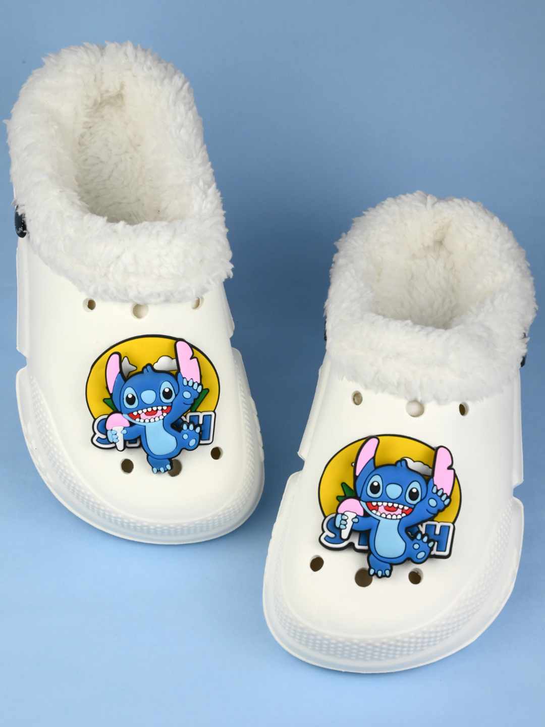 Yellow Bee Girl's Disney Stitch Fur Lined Winter Clogs Rotating Charm - White